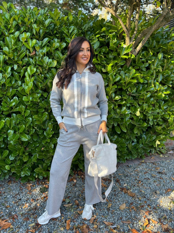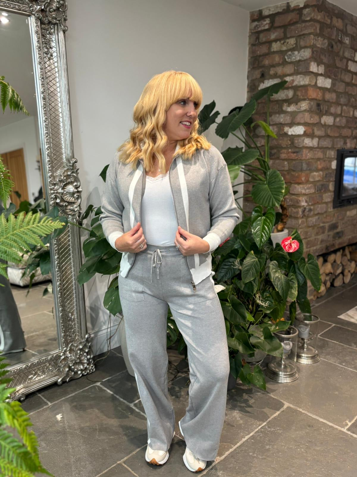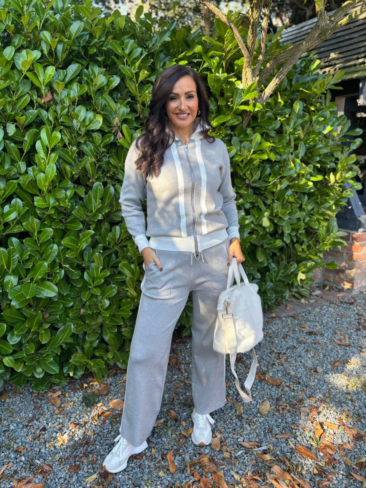 Elevate casual wear with the Striped Tracksuit Macie, featuring a zip-up knitted jacket for easy layering and elasticated drawstring trousers that ensure a tailored fit. This set combines comfort with refined style, perfect for relaxed yet polished everyday looks.