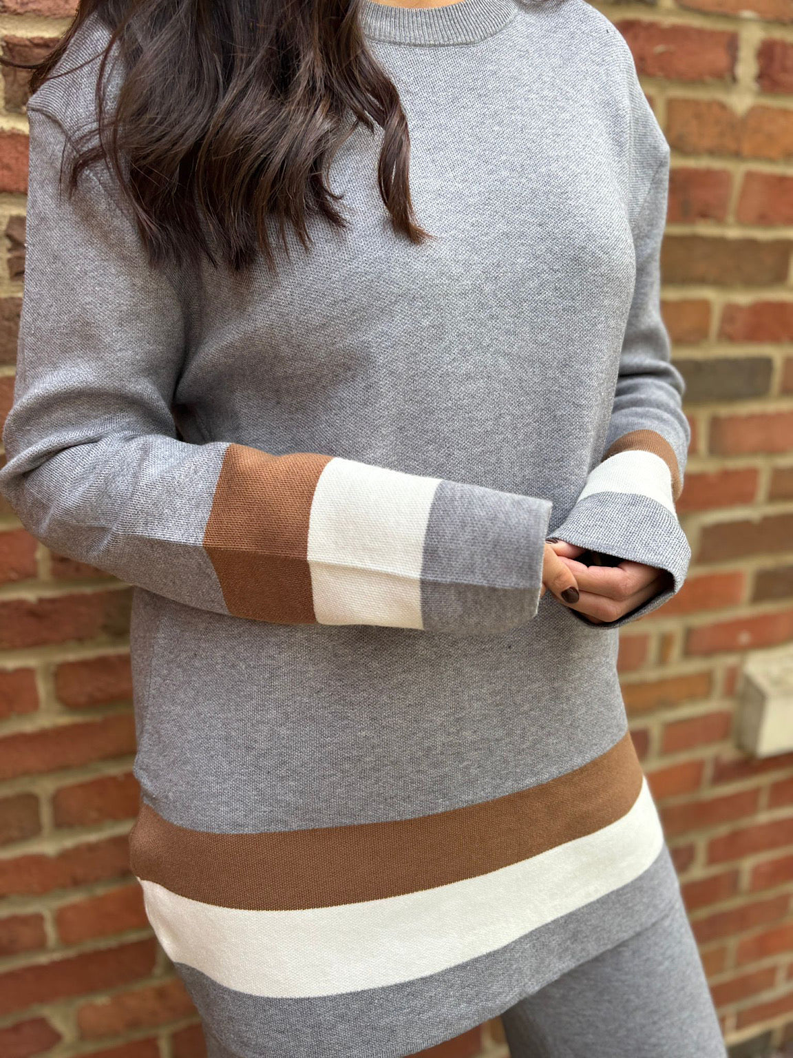 Made from high-quality warm fabric, the Striped Trim Knit Ophelia provides cosy comfort while looking effortlessly stylish. Its striped patterned trim adds a charming touch that complements any outfit. Pair it with the Ophelia trousers for a complete, coordinated look you'll feel confident and comfortable wearing throughout your day.