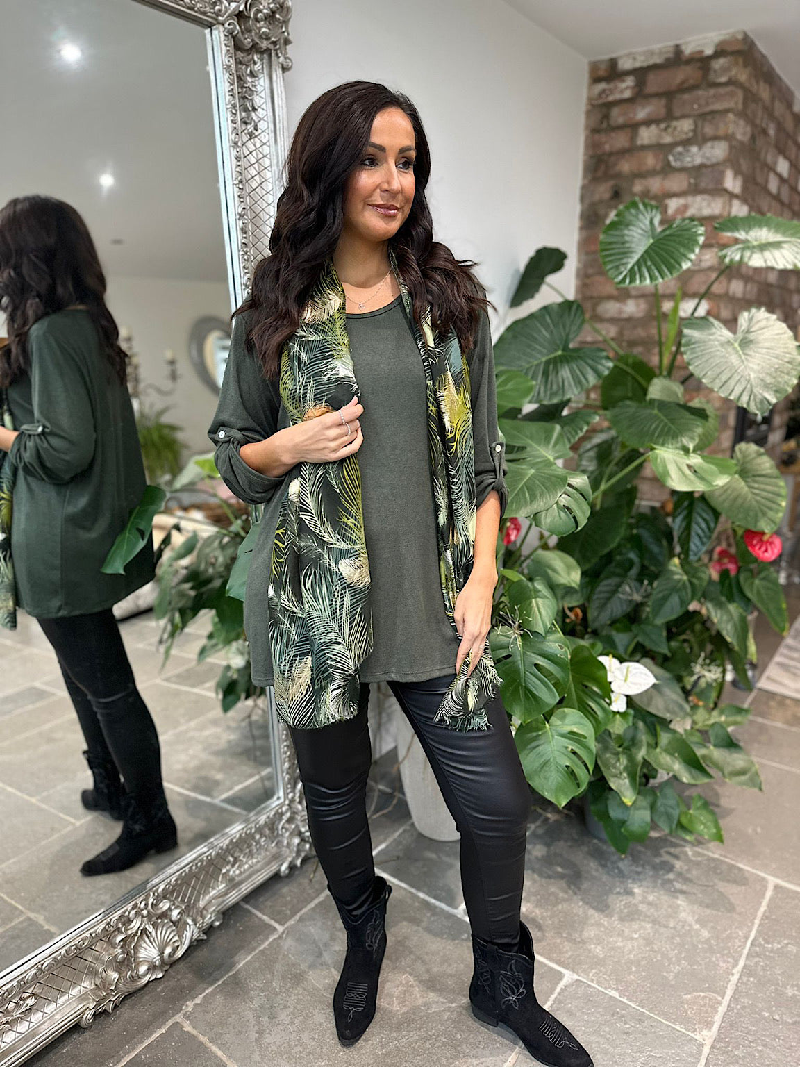 Styled with.....>Black Floral Detail Western Boots/ Black Coated Trousers