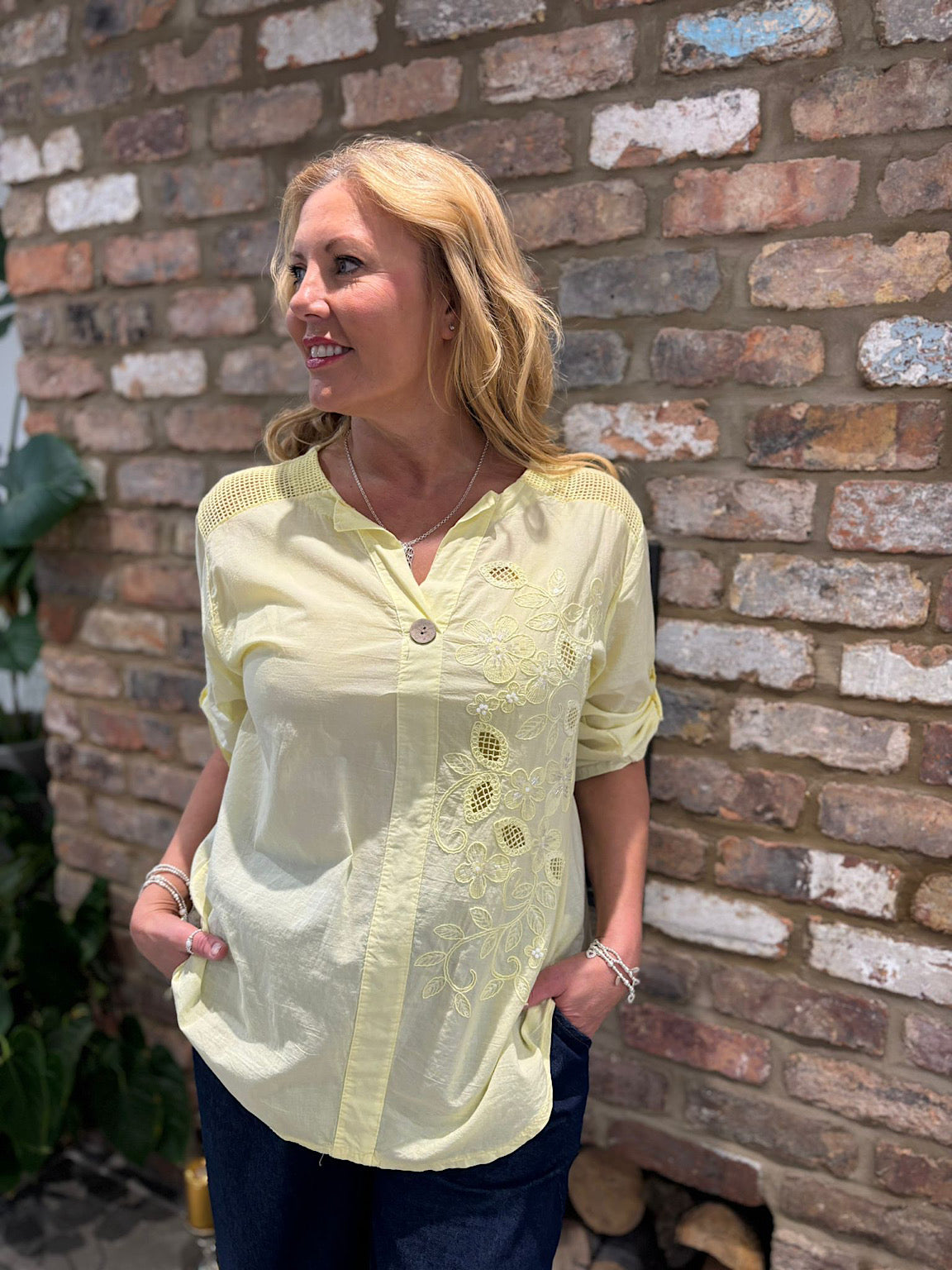 Lemon Embroidered Floral Top Jasmine