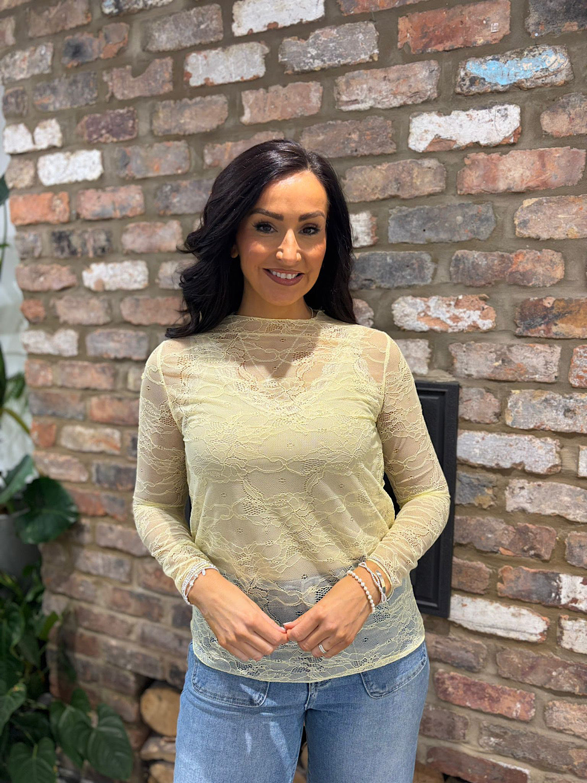 Introducing the Lace Mesh Top Tiffany – a beautifully crafted piece that brings effortless elegance to your wardrobe. Featuring delicate lace detailing over a mesh base, this top showcases a refined design that feels both sophisticated and wearable. Layer it over a coordinating vest top for a chic, modern look that works beautifully for any occasion. The intricate lace adds a touch of femininity and grace, making this a versatile addition to your everyday styling.