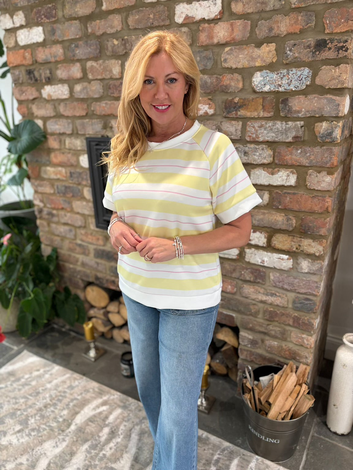 The Striped Top Addison brings effortless style to your daily rotation. Its round neckline and multi-stripe design creates a fresh, approachable look that works with almost anything in your wardrobe. Clean plain sleeves and hem give it a refined edge, making it equally at home with jeans or dressed up for something special. A reliable piece you'll reach for again and again, offering the perfect balance of comfort and understated elegance.