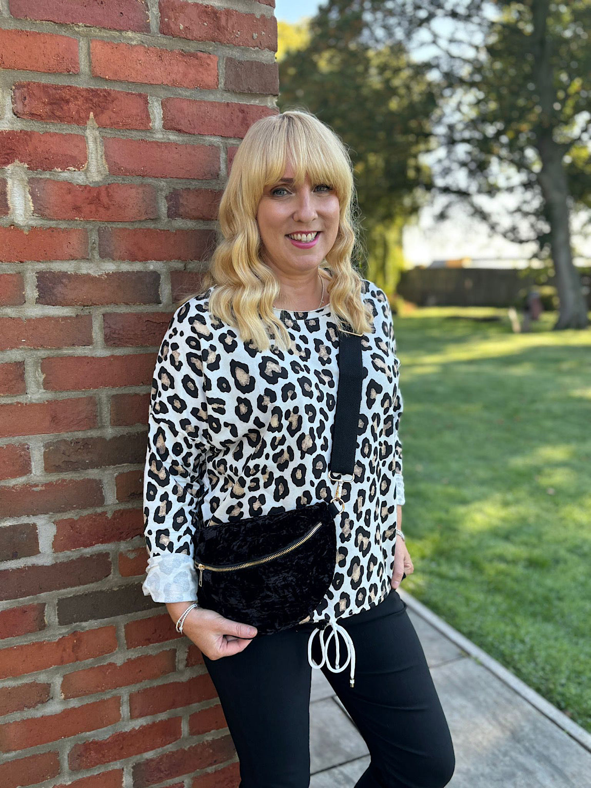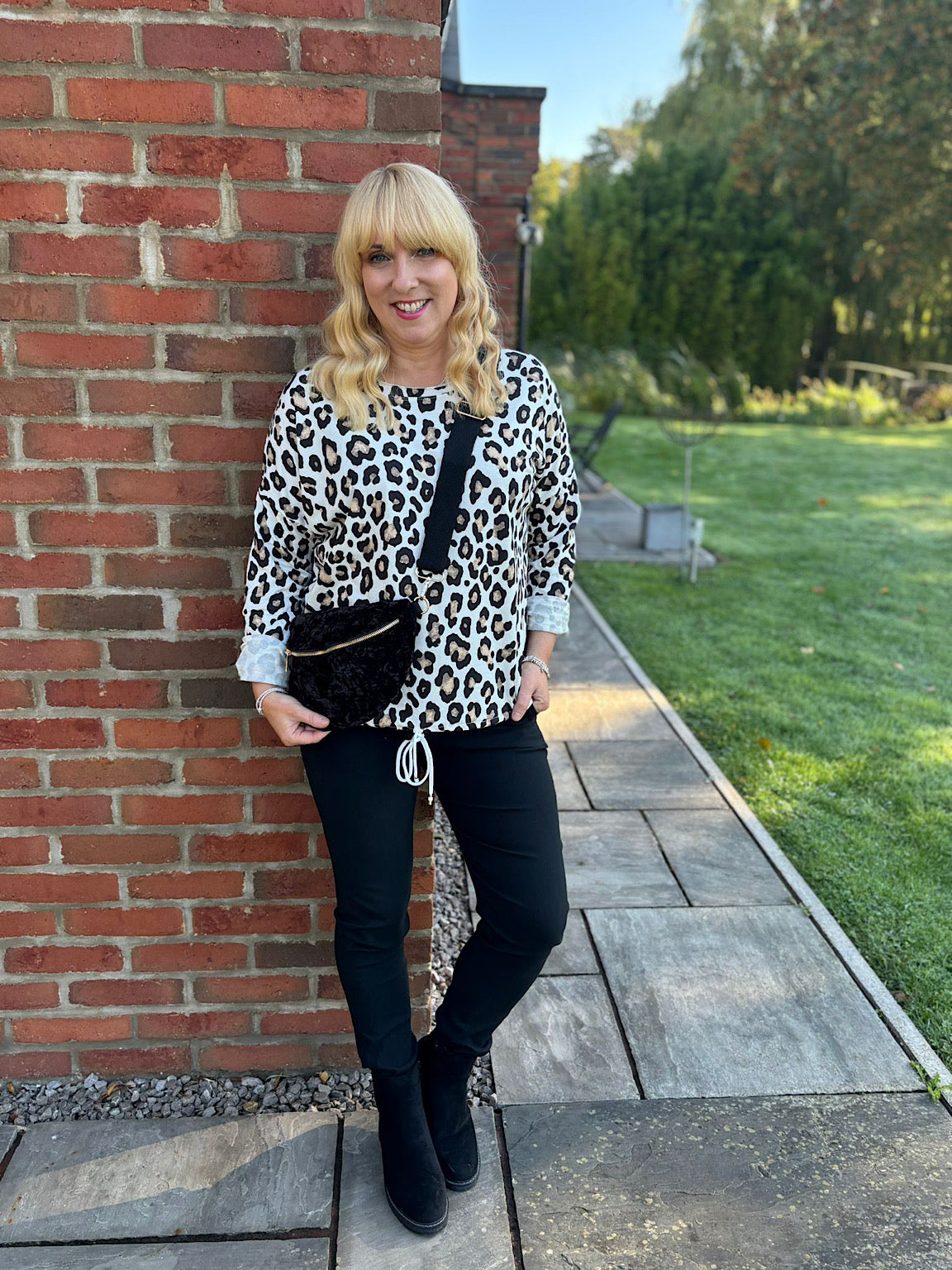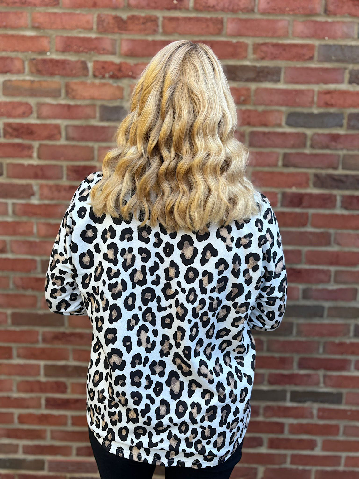 The Winter White Leopard Drawstring Top Jayne offers a refined blend of comfort and style. Its lightweight fabric ensures ease of wear, while the adjustable drawstring hem provides a customizable fit that enhances your silhouette. Featuring a timeless leopard print, this top brings a sophisticated edge to any ensemble.