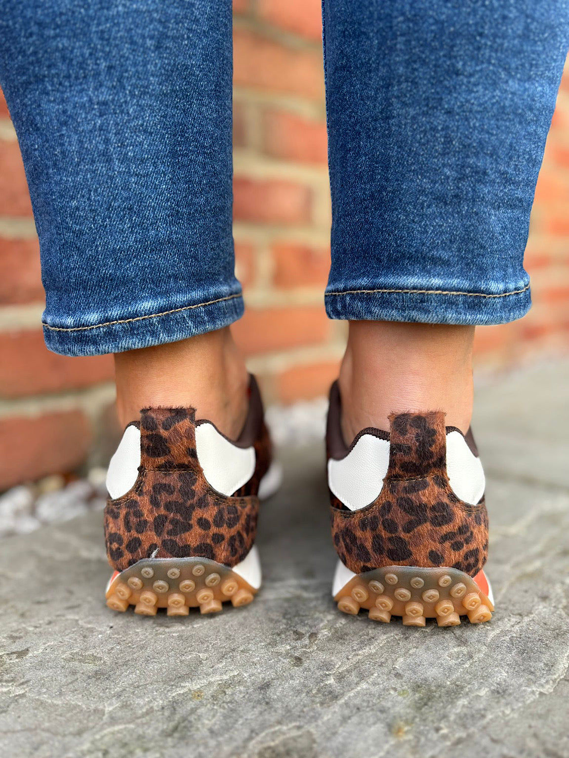 Step out in style with our Leopard Sadie Trainers. The trendy leopard design, complemented by a pop of orange on the trim and laces, will make a statement wherever you go. Stay stylish and comfortable all day long.