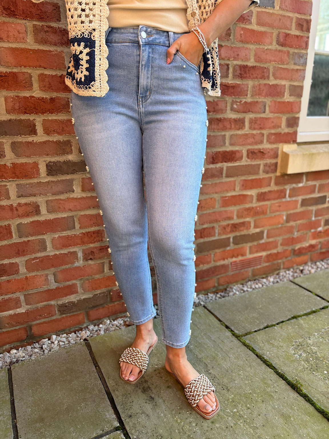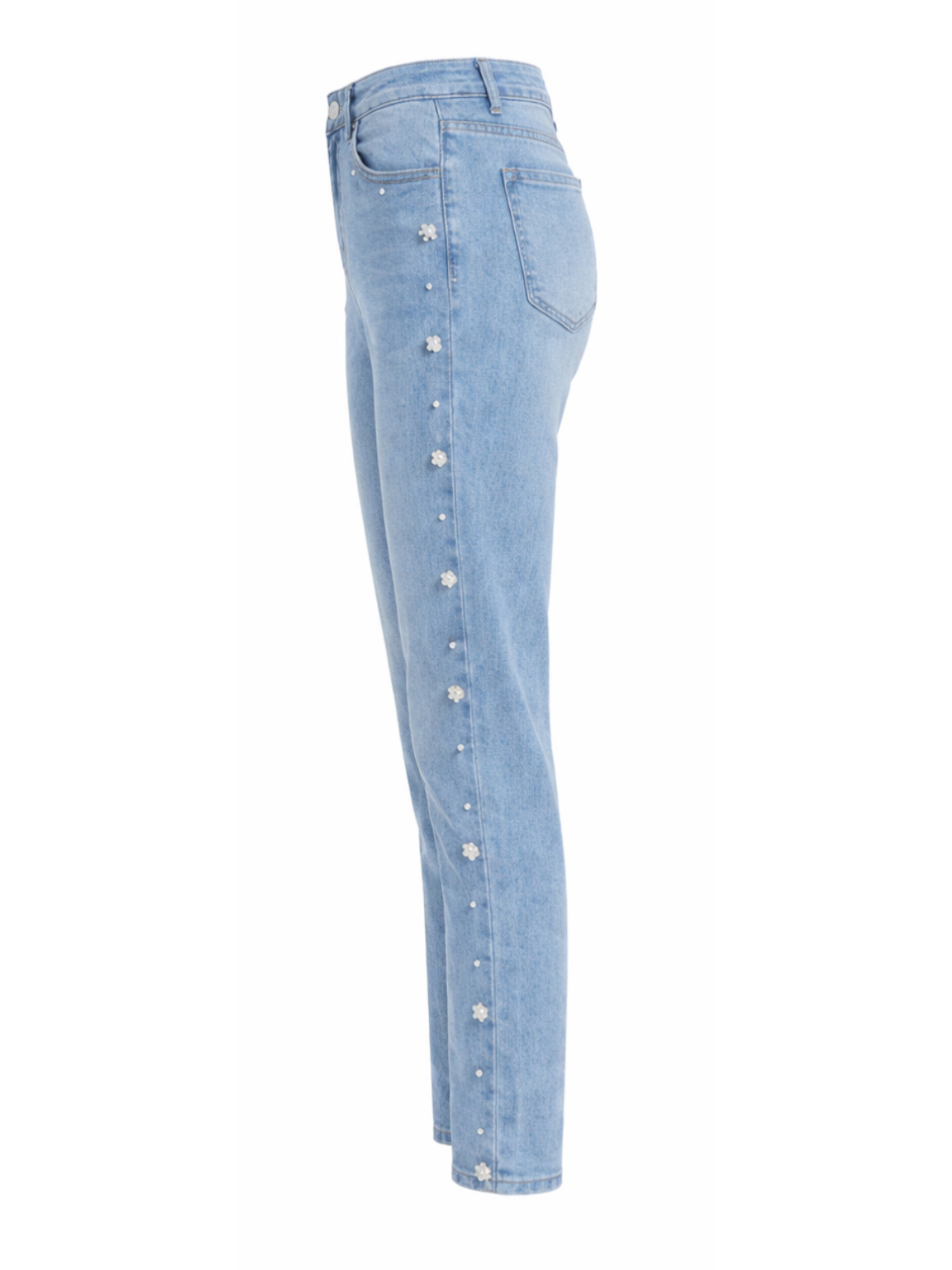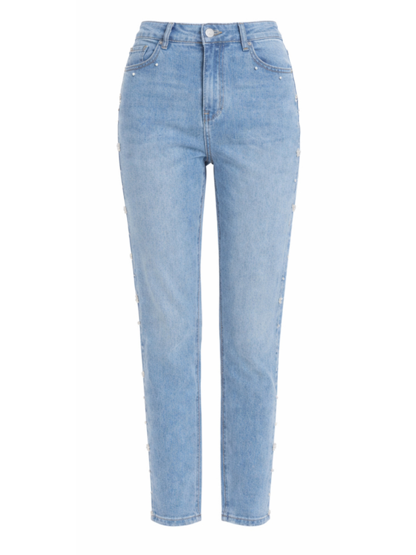 Light Denim Embellished Straight Leg Jeans