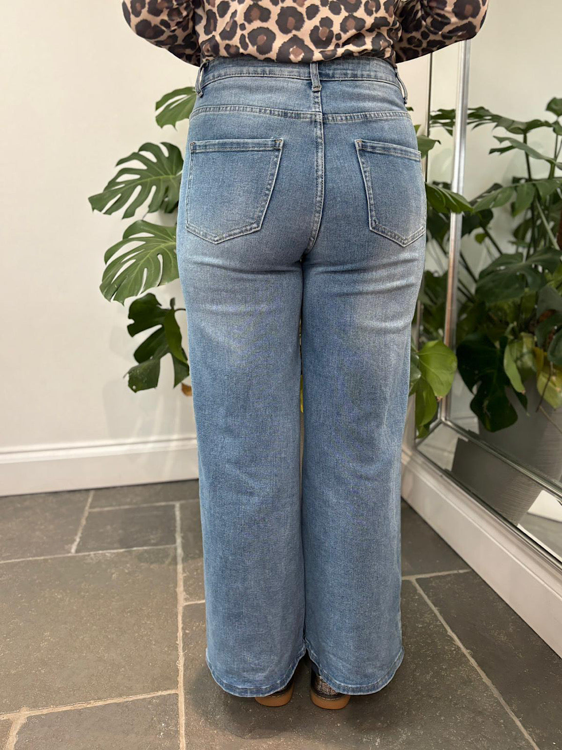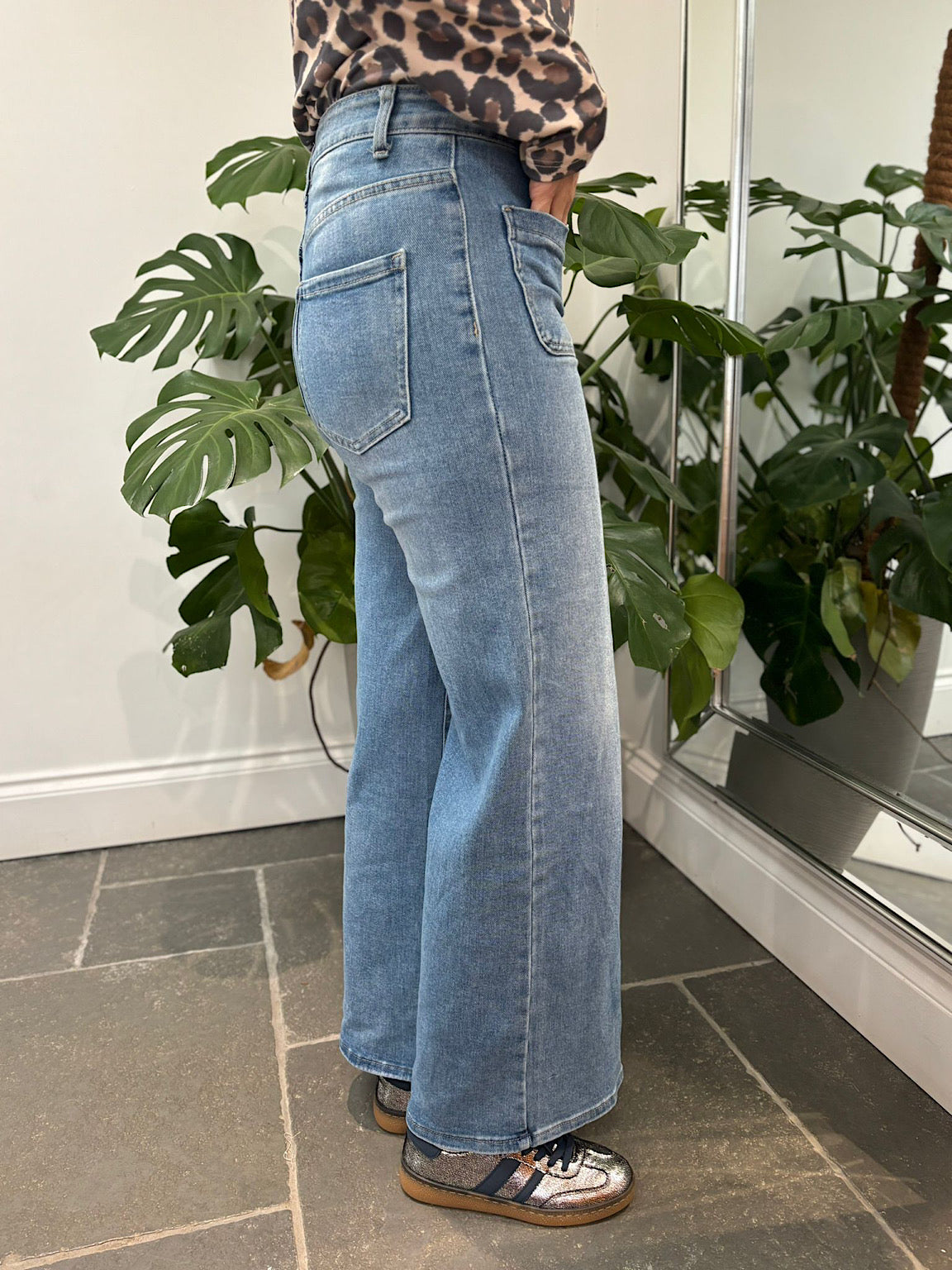 Light Denim Wide Leg Pocket Jeans
