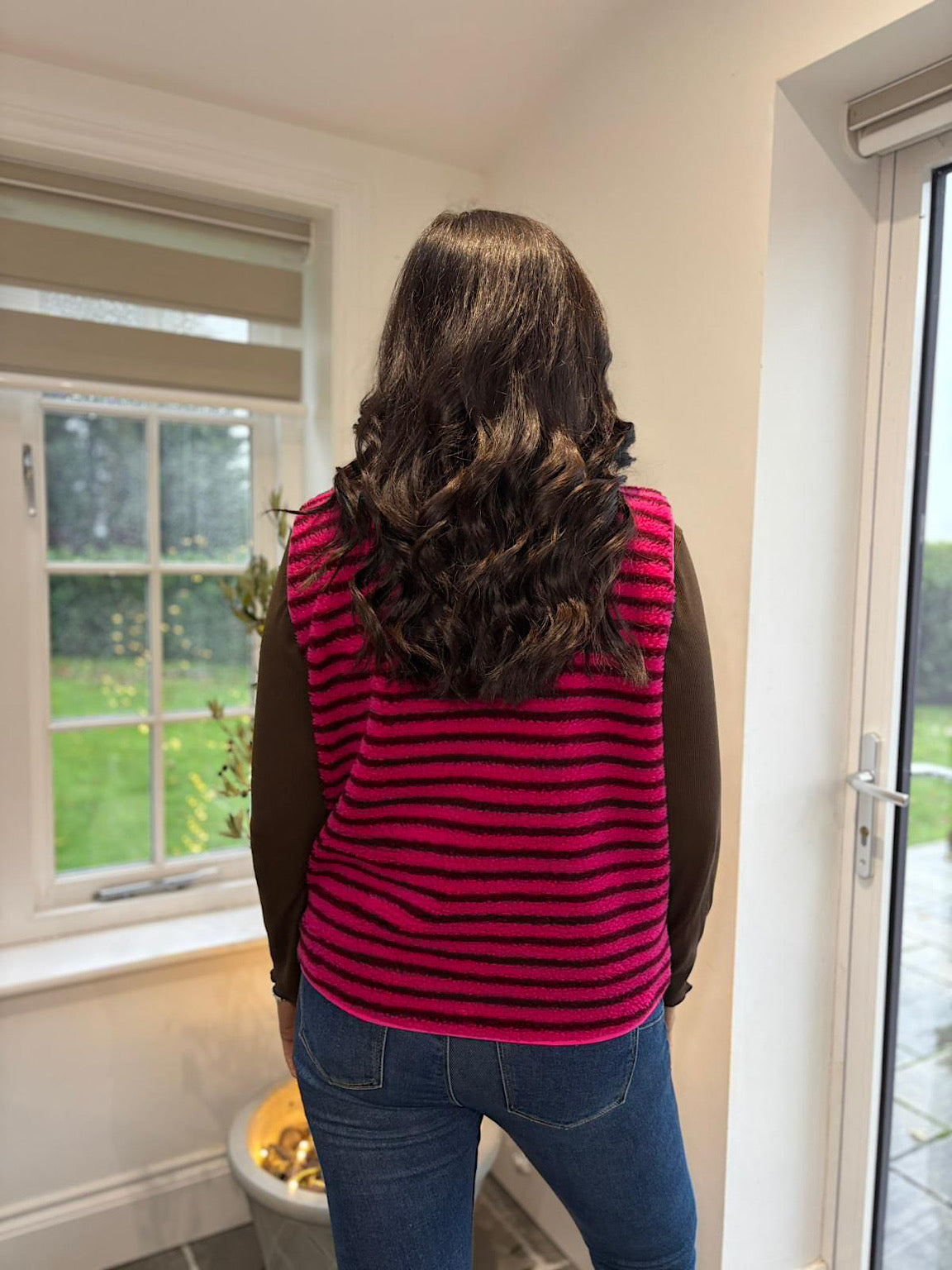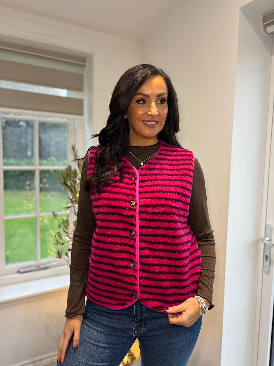 Lipstick & Chocolate Stripe Fleece Gilet