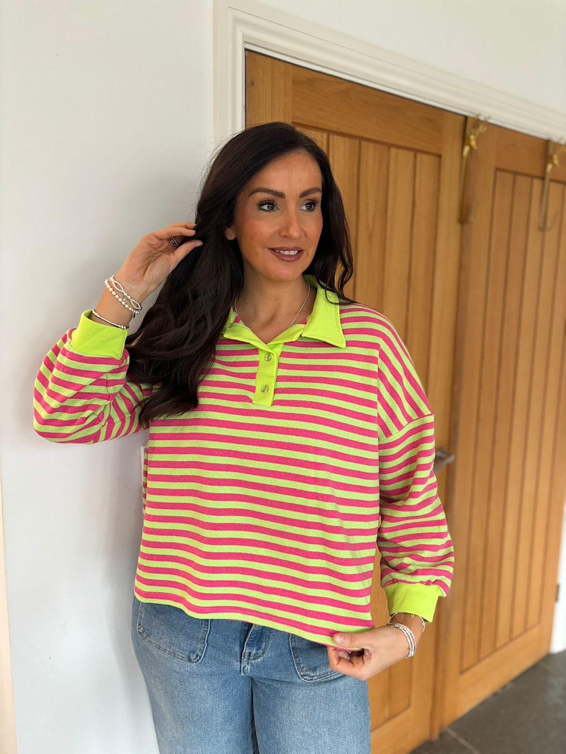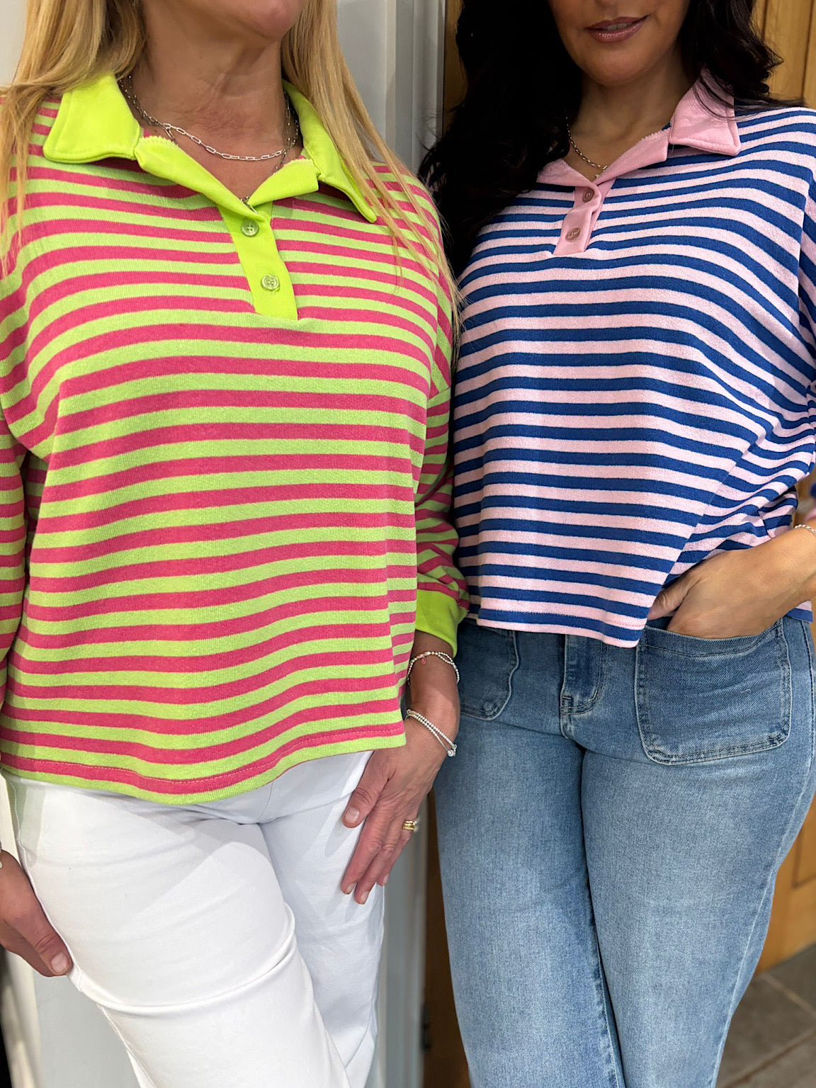 Elevate your everyday wardrobe with this timeless collared sweat top. Crafted from quality material with a subtle stretch, it offers comfort that moves with you throughout the day. The classic stripe design adds visual interest while the structured collar keeps your look polished and put-together. Perfect for layering or wearing solo, this versatile piece transitions seamlessly from casual outings to relaxed work settings.