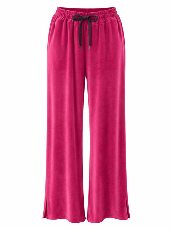 Lipstick Pull On Wide Leg Velour Trousers