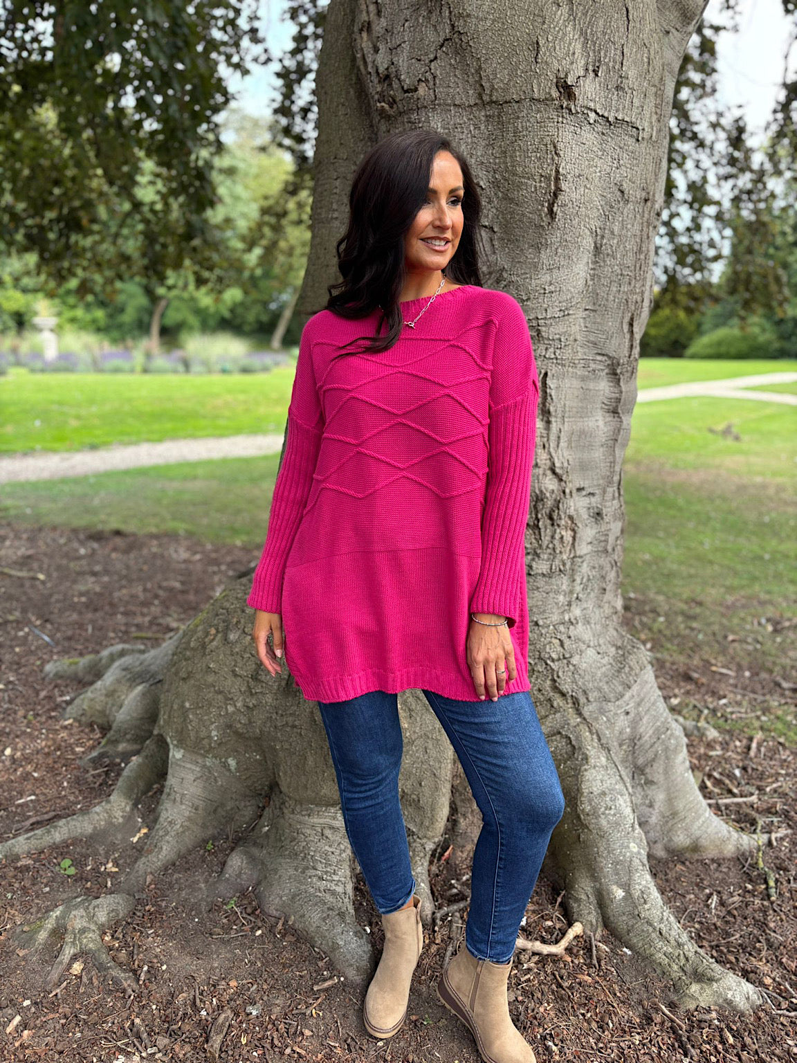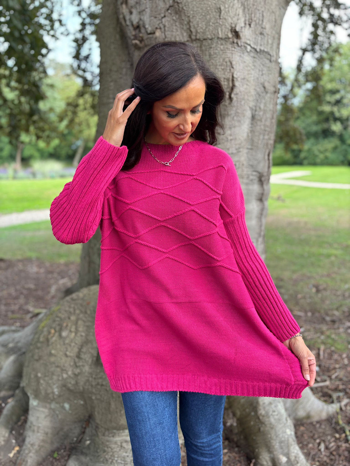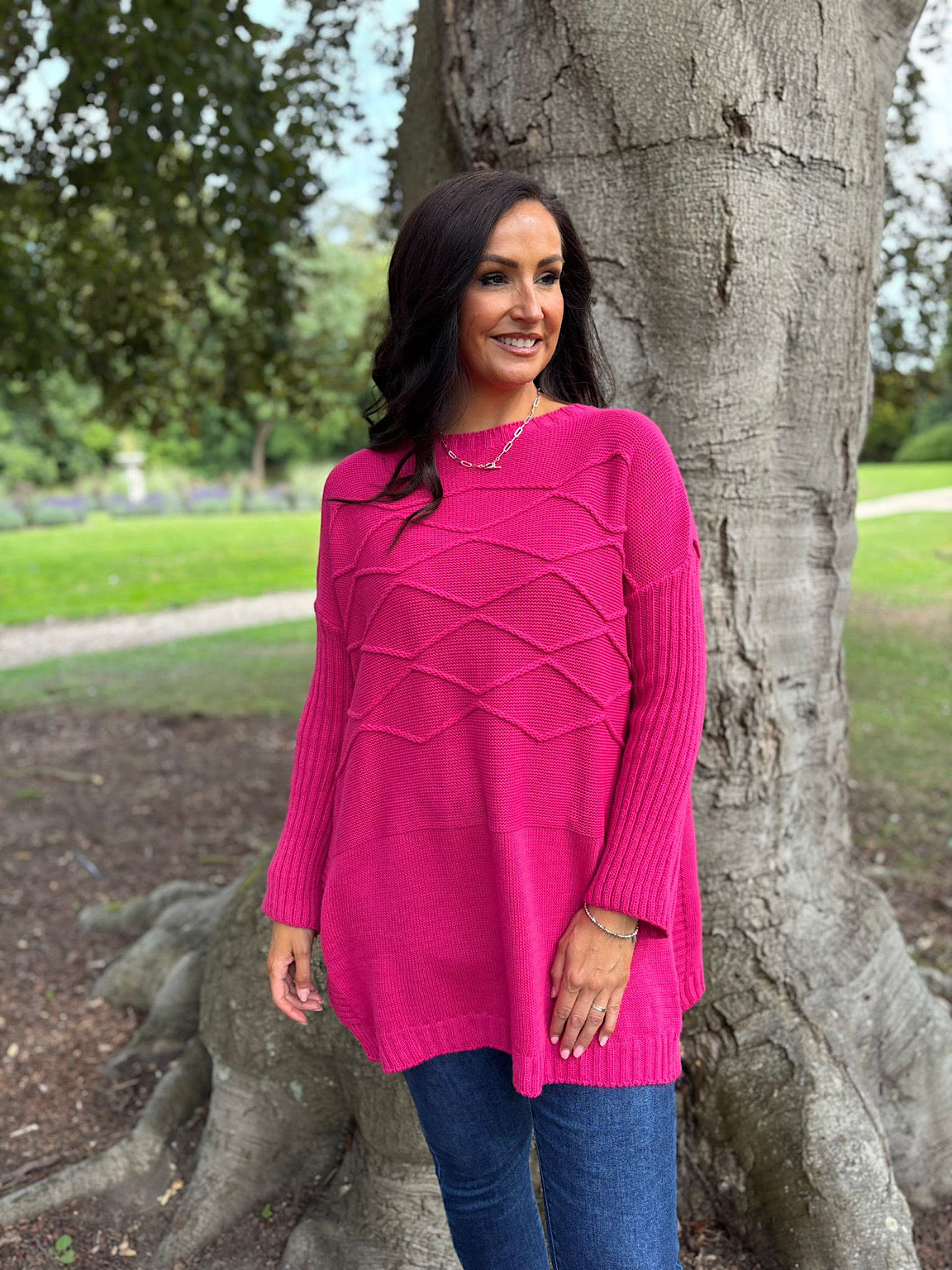 Experience warmth and comfort with the Wave Detail Knit Darcie. This cosy, longer-length knit features a diamond textured design that adds subtle style while providing extra coverage. Ideal for layering, it offers a snug fit that keeps you comfortable throughout the day. Perfect for cooler seasons, this versatile piece enhances your wardrobe with both practicality and elegant detail.