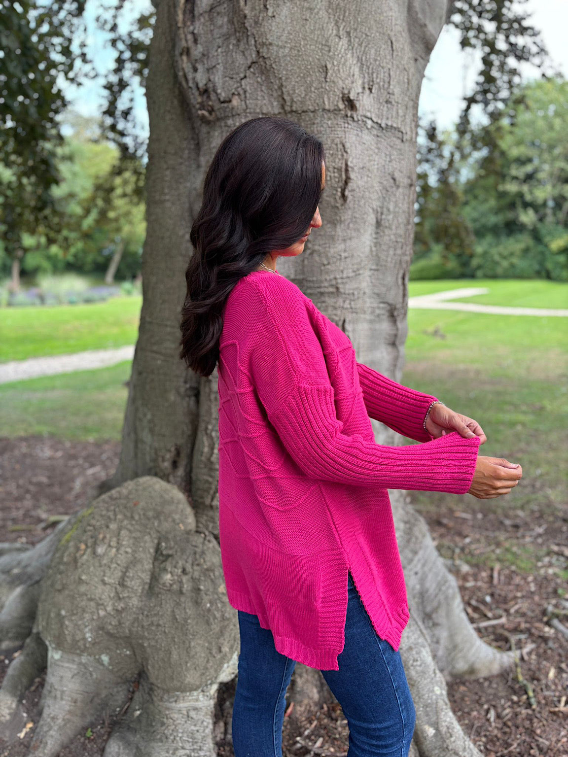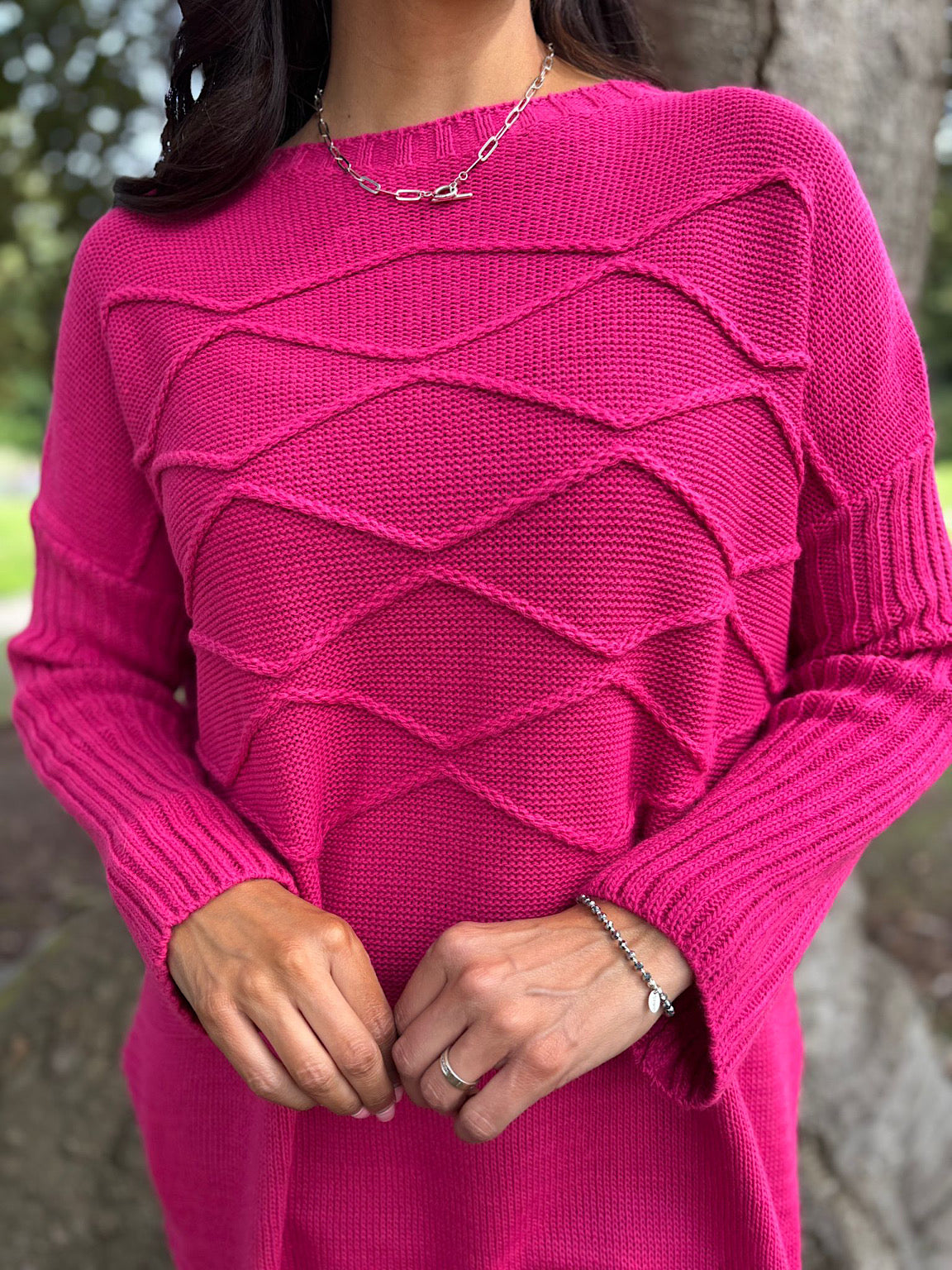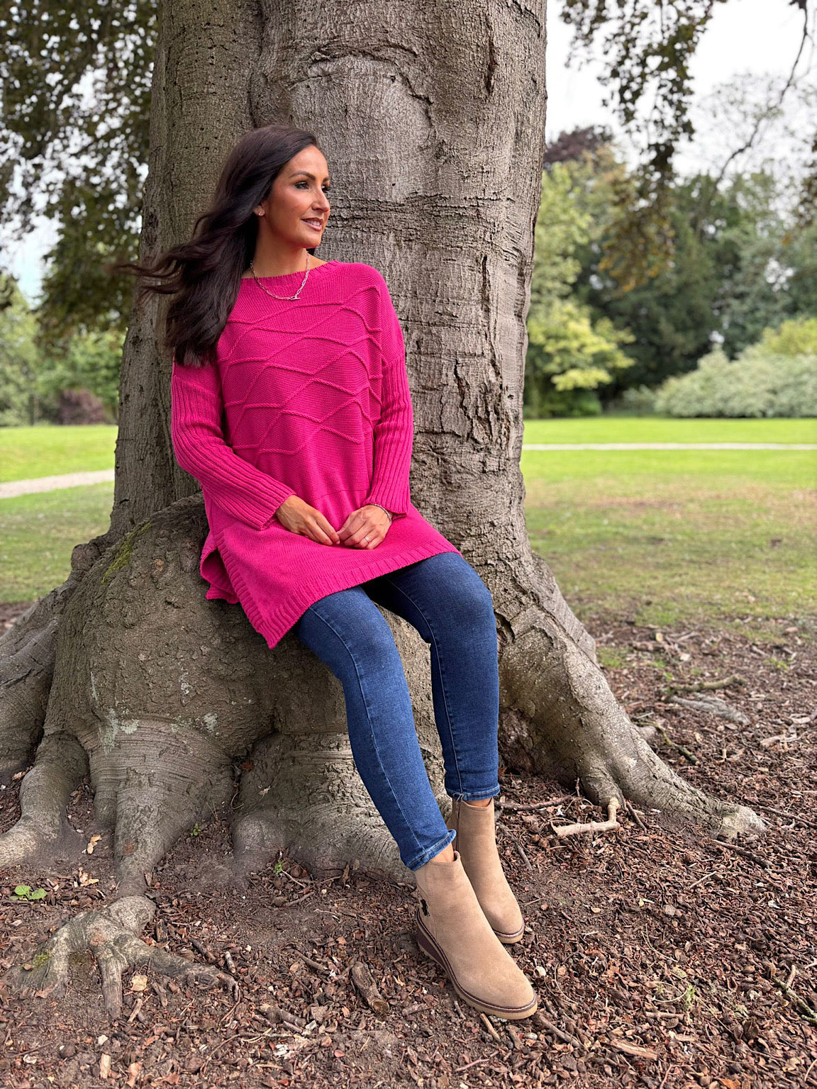 Experience warmth and comfort with the Wave Detail Knit Darcie. This cosy, longer-length knit features a diamond textured design that adds subtle style while providing extra coverage. Ideal for layering, it offers a snug fit that keeps you comfortable throughout the day. Perfect for cooler seasons, this versatile piece enhances your wardrobe with both practicality and elegant detail.