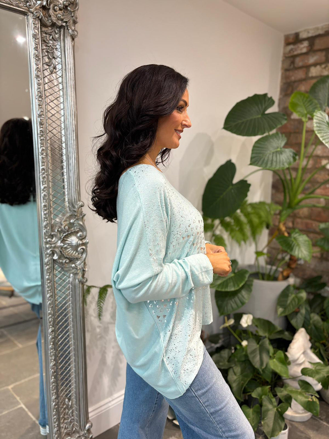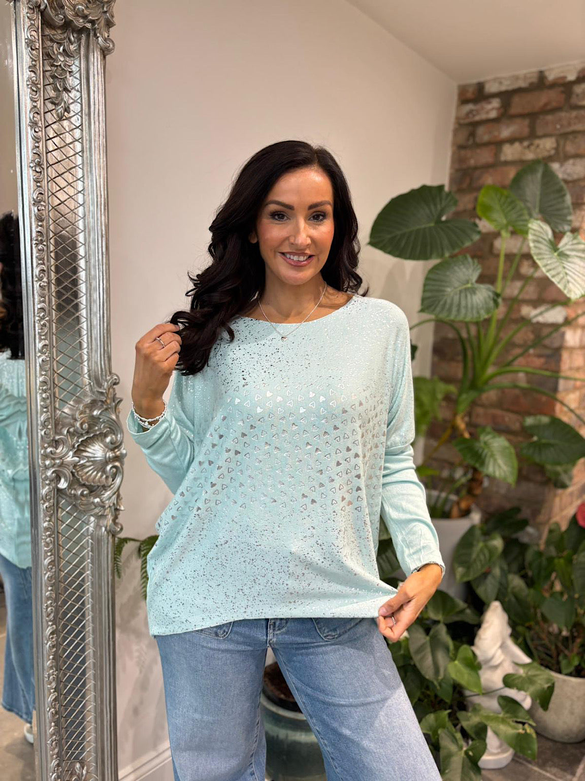 Embrace effortless comfort with this relaxed knit featuring delicate foil hearts and shimmering flecks throughout. The soft fabric feels wonderful against your skin, while plain sleeves keep the focus on the eye-catching detail. Perfect for adding a touch of sparkle to your everyday wardrobe without compromising on cosiness.