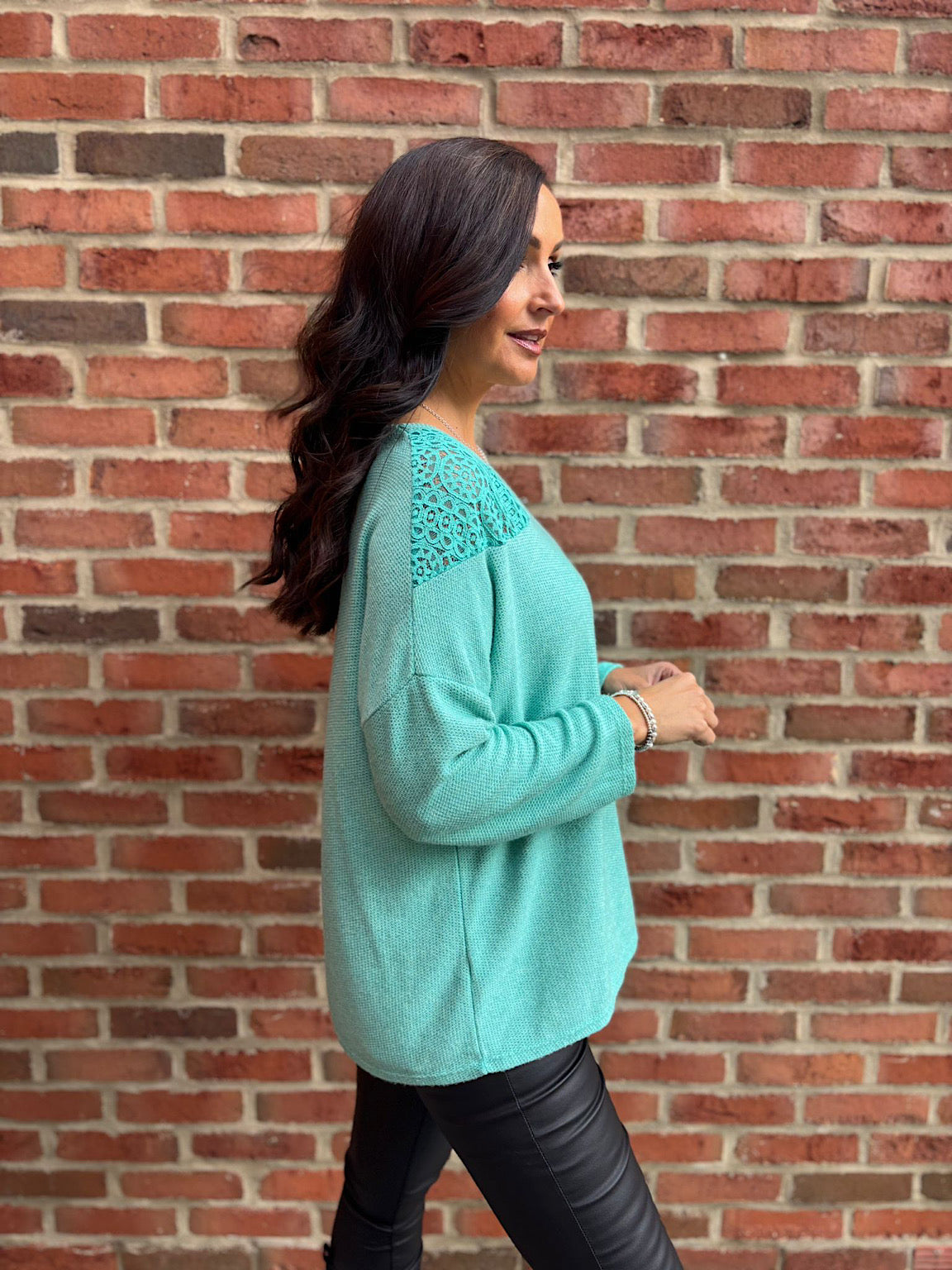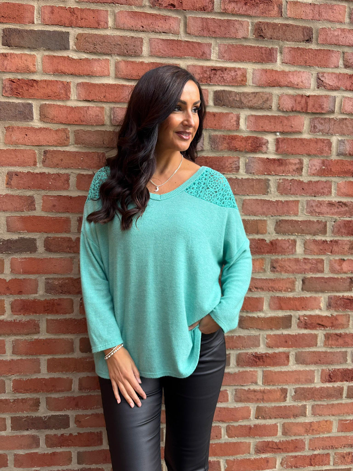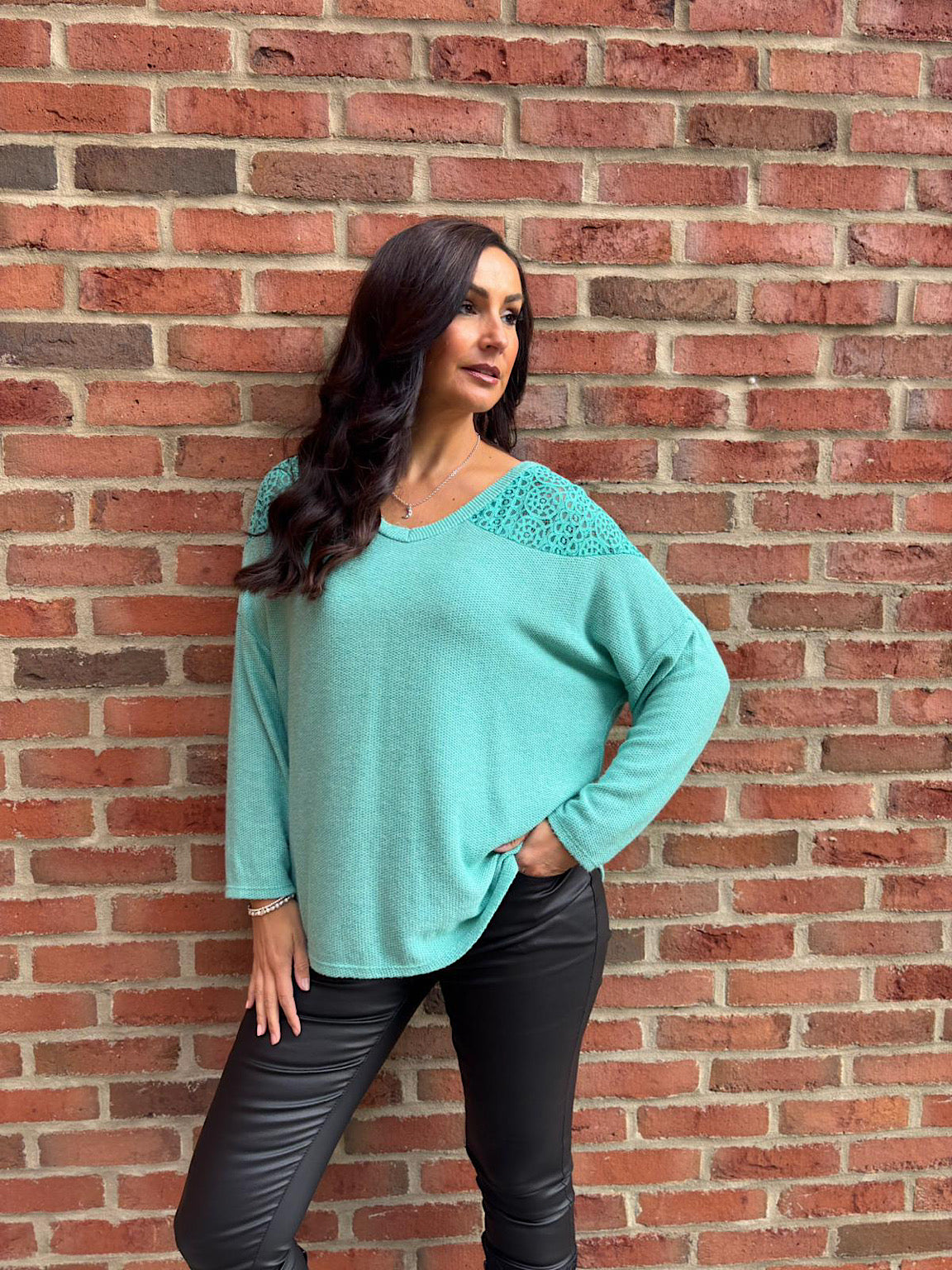 The Patterned Shoulder Knit Willow offers a soft, comforting feel with its lightweight fabric and delicate lace detail on the shoulders. Designed to provide gentle support, this knit layers easily while adding an elegant touch to your outfit. Ideal for those seeking style without compromise on comfort.