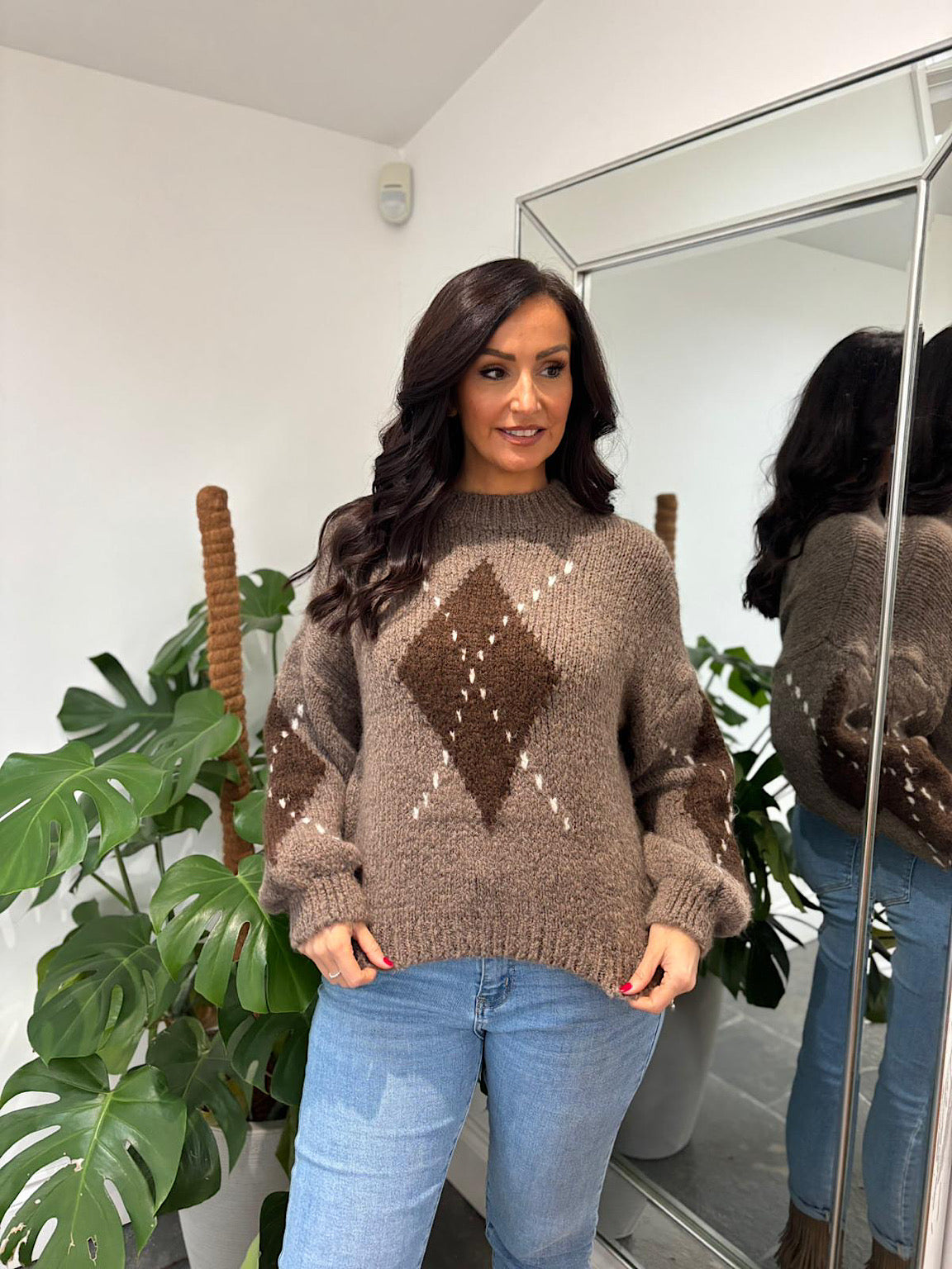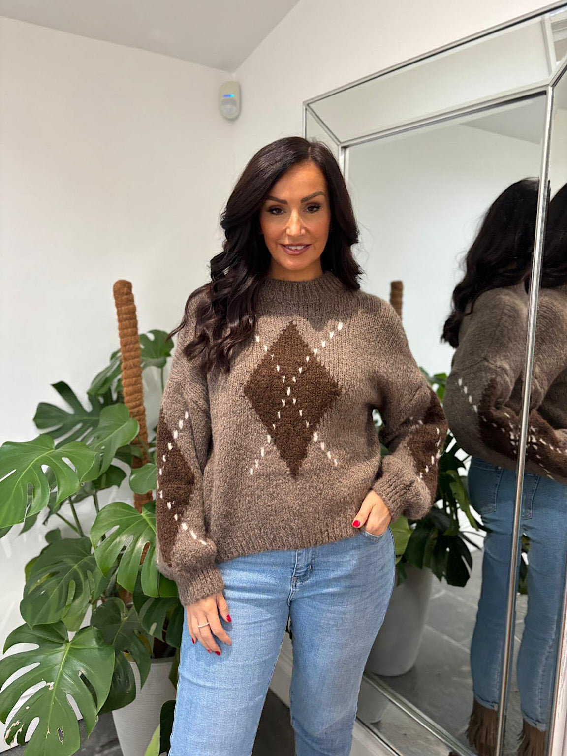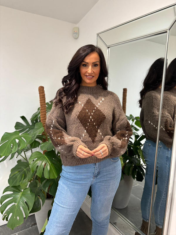 Mocha Argyle Knit Jumper Heidi