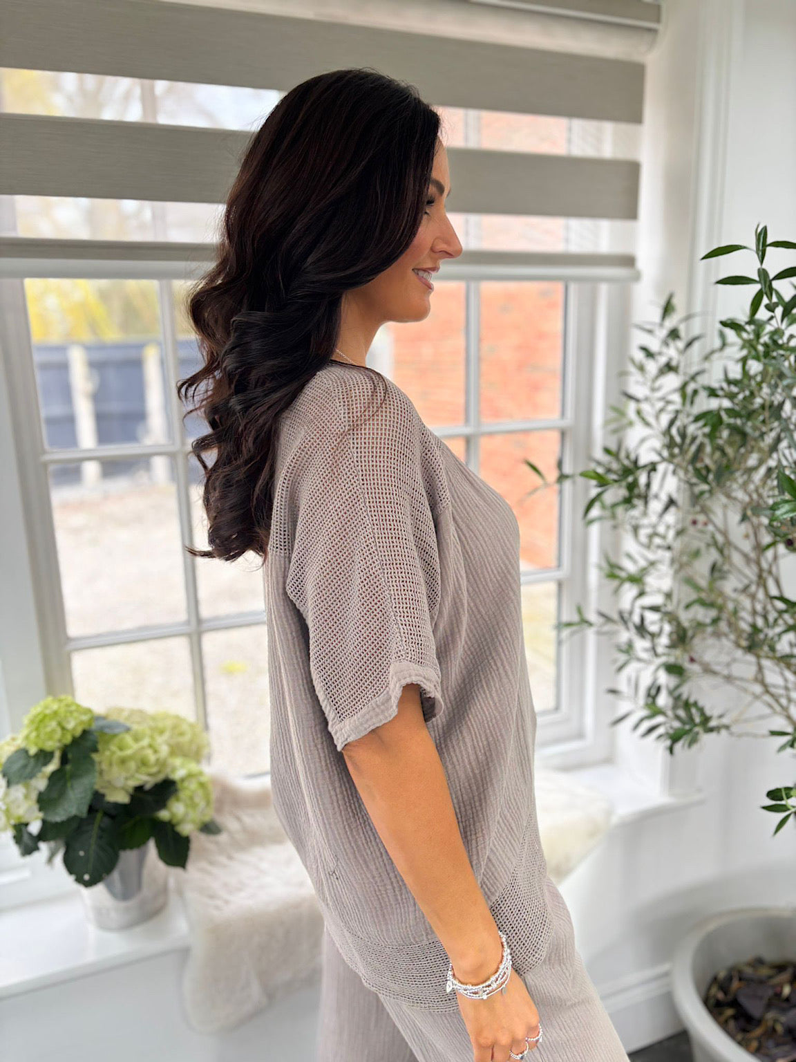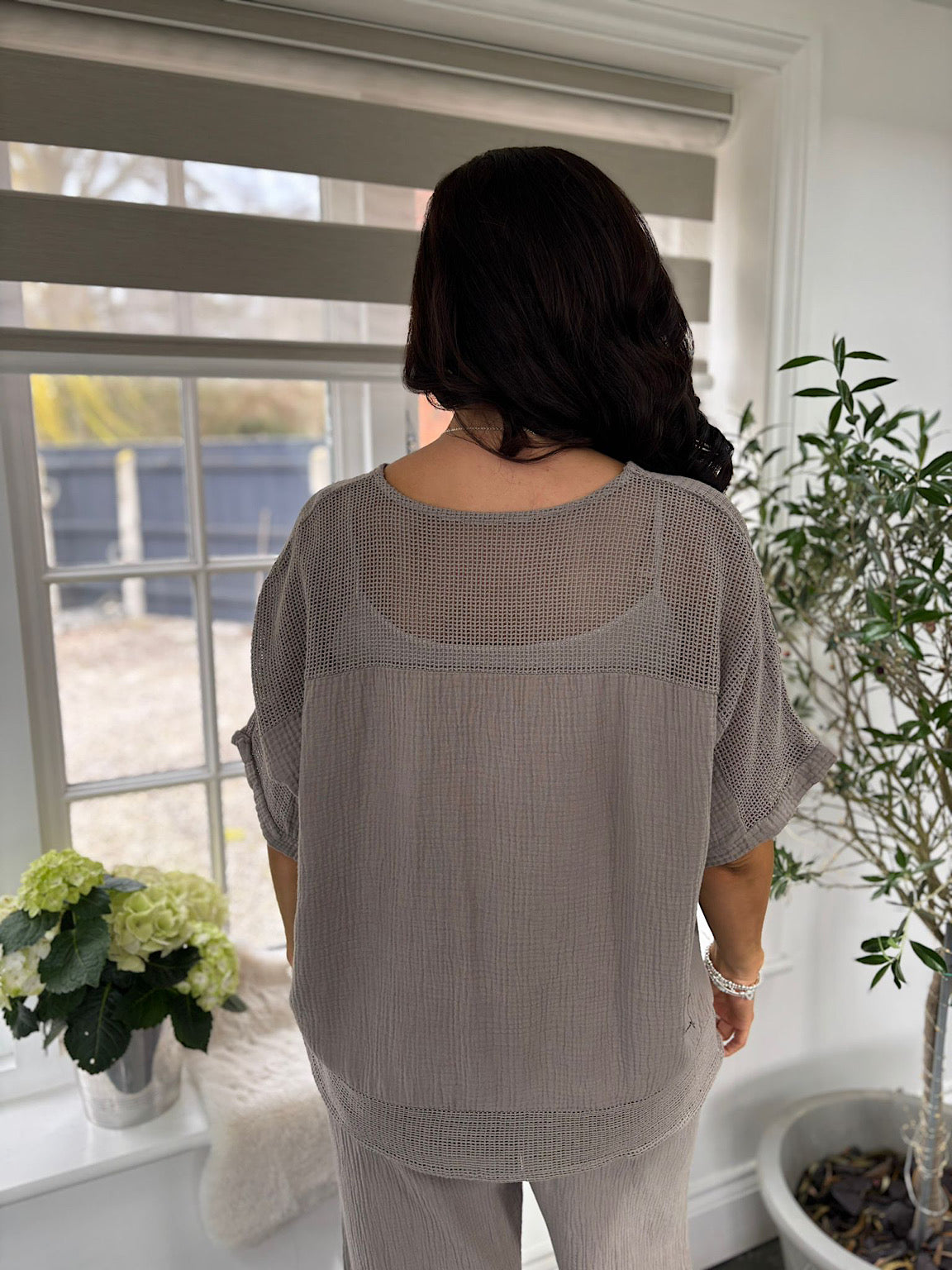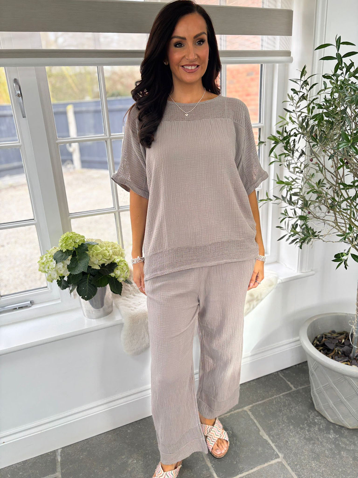 Mocha Bubble Cotton Trouser Set Hayley