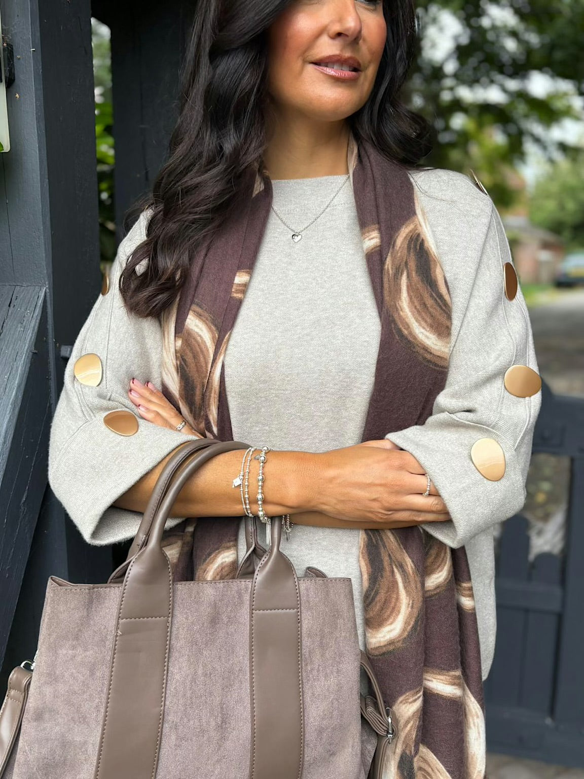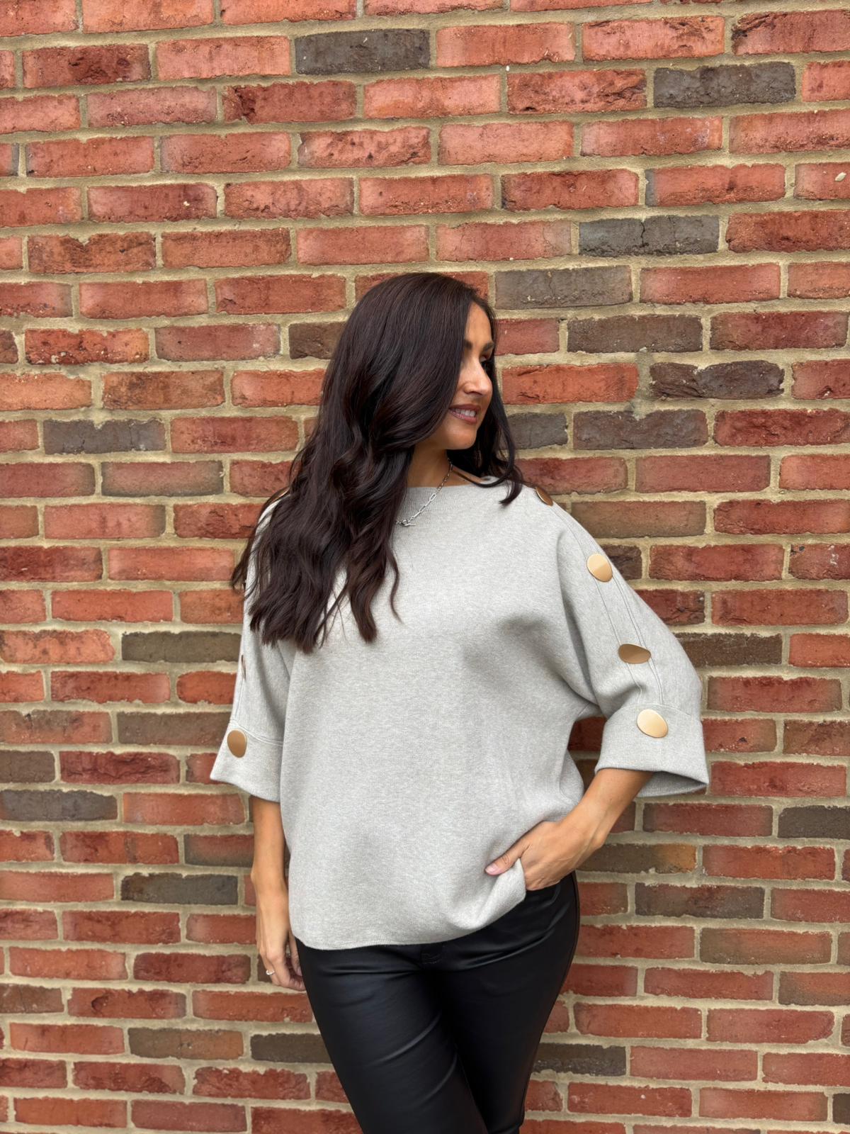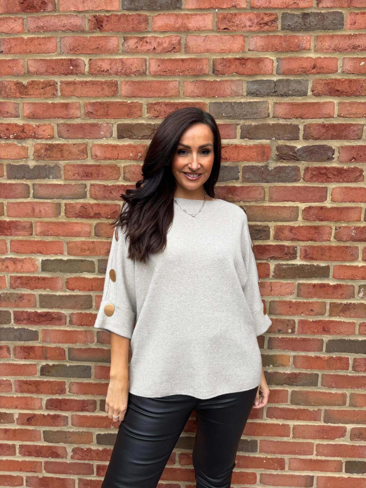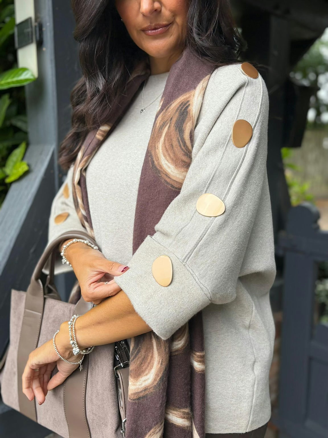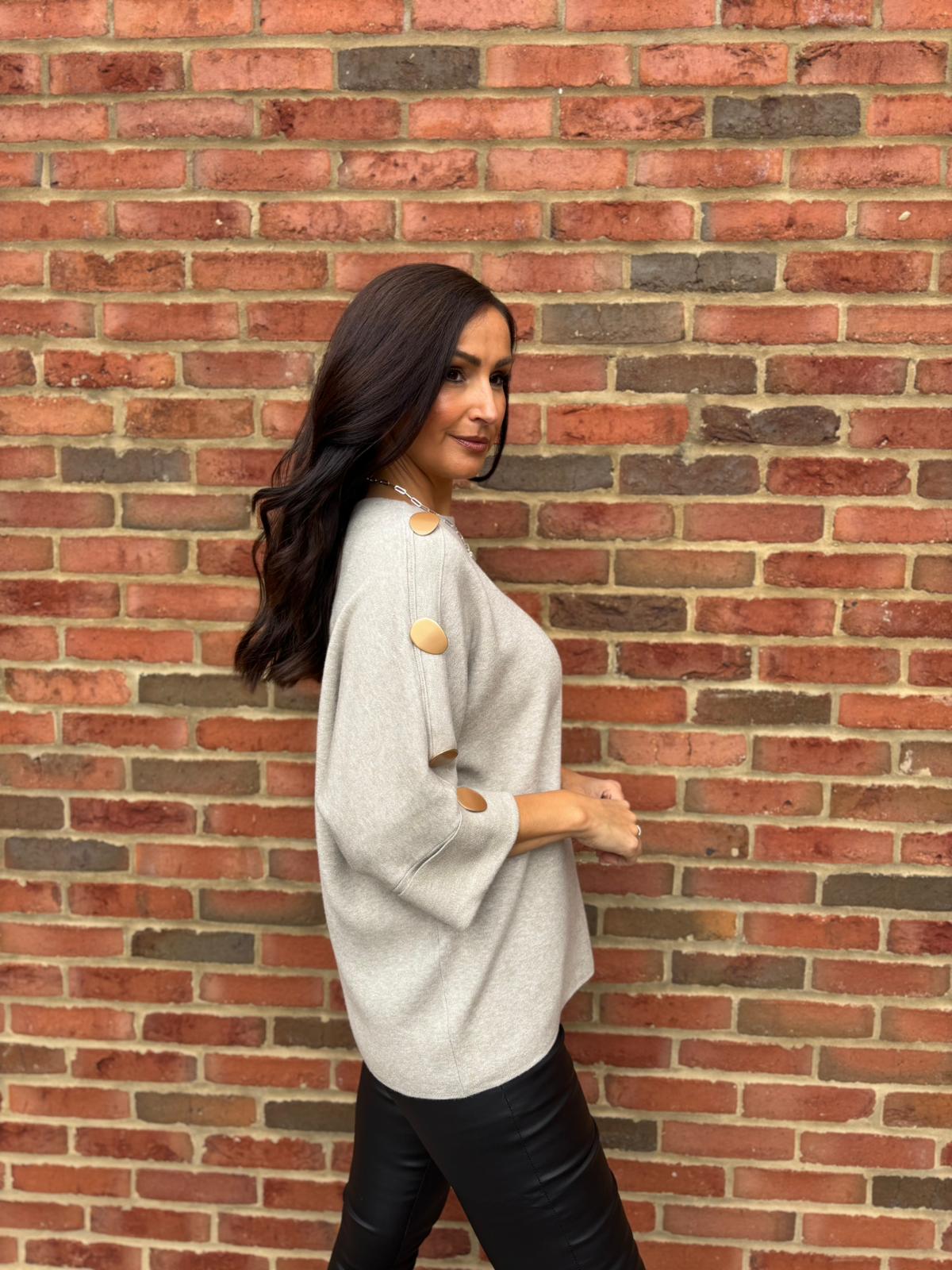 Crafted from high-quality thick knitted fabric, the Button Sleeve Knit Erin offers lasting comfort and warmth. Its distinctive gold button detailing runs elegantly down the arm, adding a refined touch to the design. The capped sleeves provide a flattering silhouette, perfect for layering or wearing on their own. This knit combines style and practicality to support your everyday wardrobe needs.