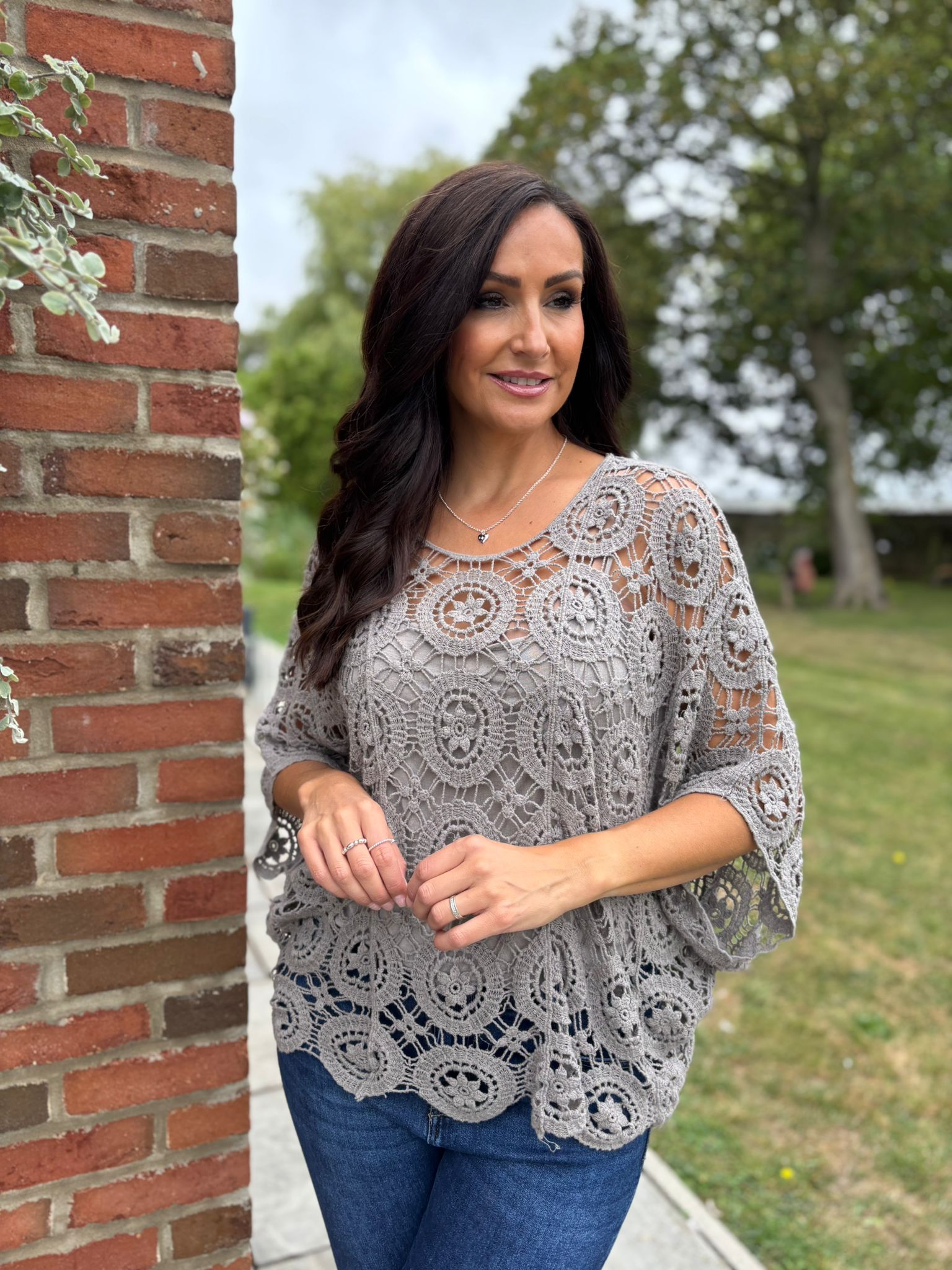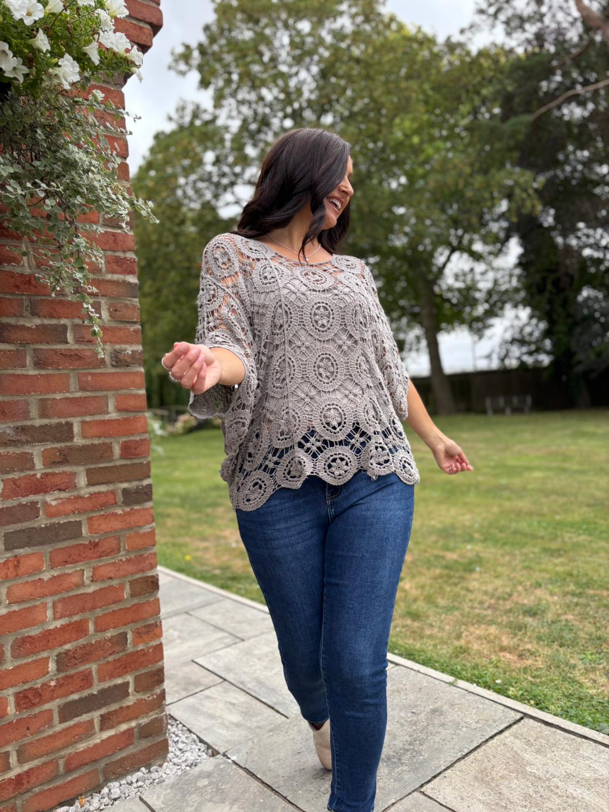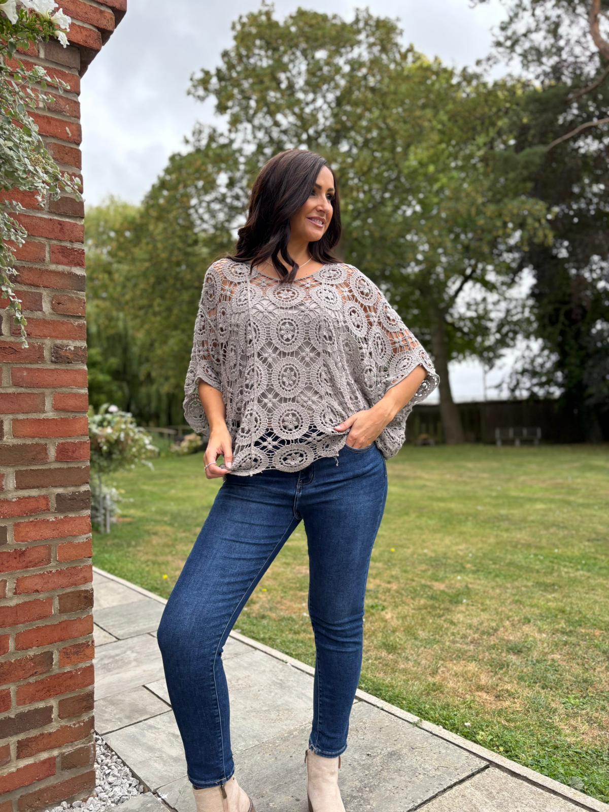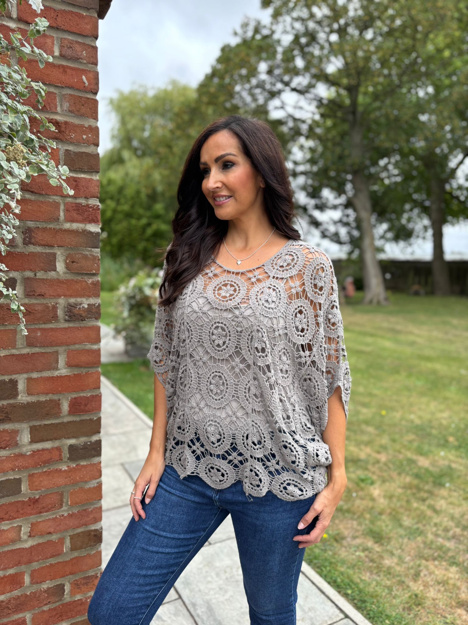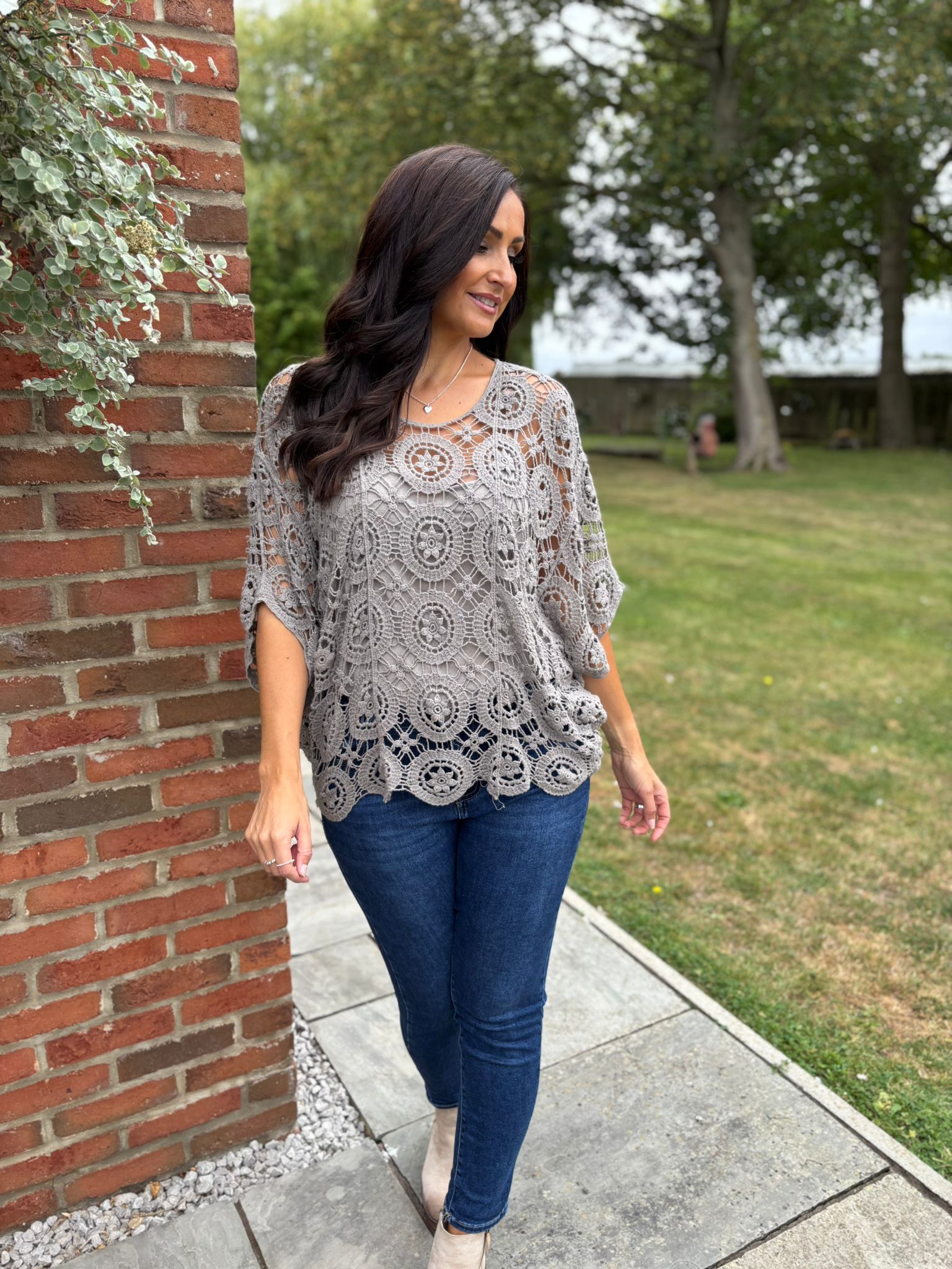 This Crochet Batwing Top Paula features delicate floral crochet details and comes with a coordinating vest top underneath for added comfort and coverage. Its relaxed batwing design offers ease of movement while maintaining a stylish, feminine look. Perfect for layering, this top combines unique texture with practical wearability to enhance your wardrobe effortlessly.