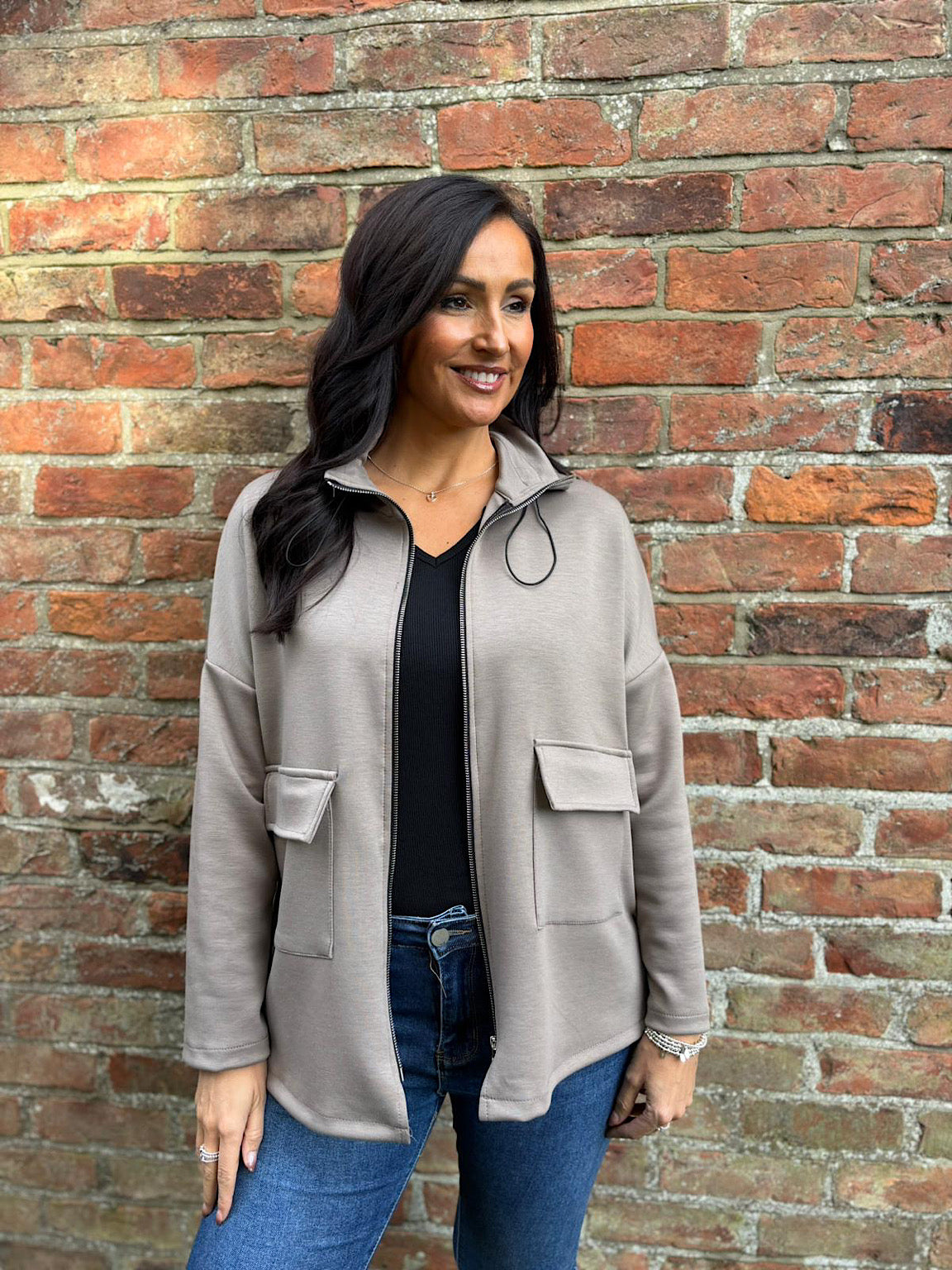 Elevate your everyday style with this versatile Drawstring High Neck Jacket Kinsey. Featuring a flattering high neck and adjustable drawstring waist, this piece offers a customizable fit that works for your body. The smooth zip fastening makes layering effortless, while two functioning pockets provide practical storage for your essentials. Perfect for transitional seasons, this jacket combines comfort with contemporary design for a polished look you'll reach for again and again.