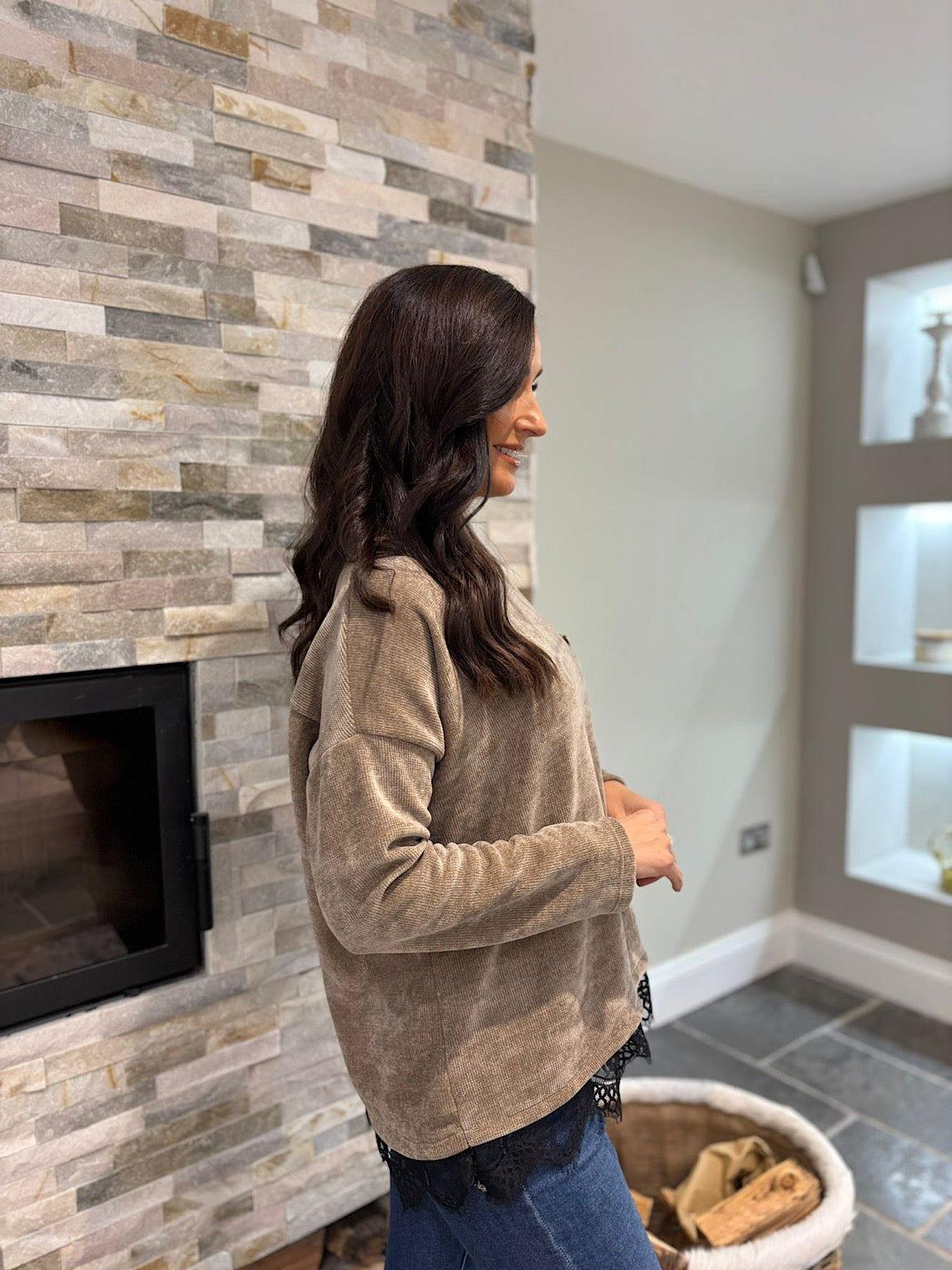 Experience cosy comfort with the Lace Trim Sweatshirt Chelsea, crafted from soft chenille fabric that feels gentle against your skin. The delicate lace detailing on the hem adds a touch of elegance, perfect for dressing up casual looks. A detachable brooch offers versatile styling options, letting you personalize your outfit with ease. This sweatshirt combines warmth and feminine charm, making it a thoughtful addition to your wardrobe.