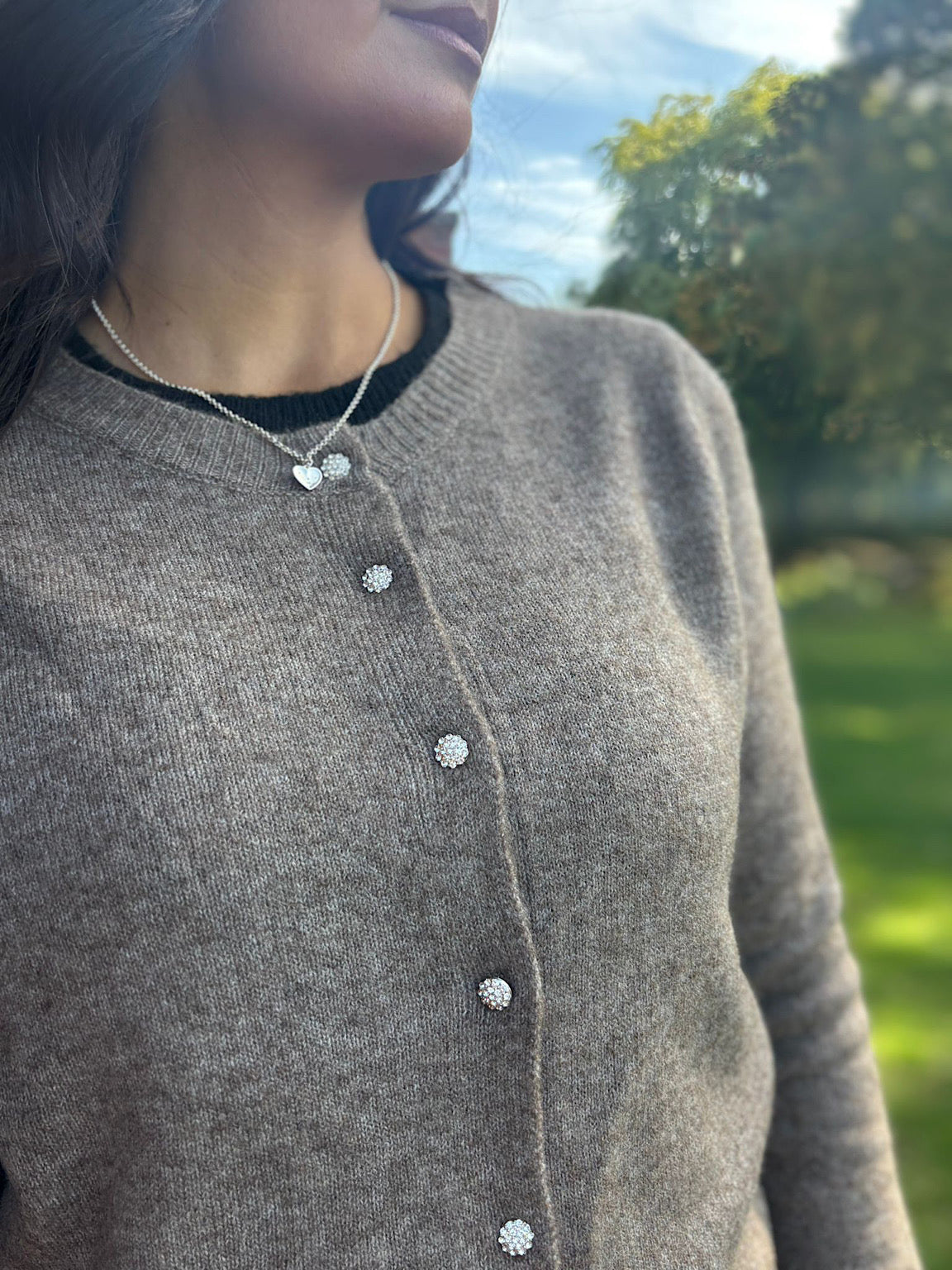 Experience comfort and style with the Layered Knitted Cardigan Evelyn. Crafted from super soft material, it features an attached layered top underneath for effortless, put-together looks. The convenient diamante button fastening ensures easy wear, making this cardigan a cosy and versatile addition to your wardrobe.