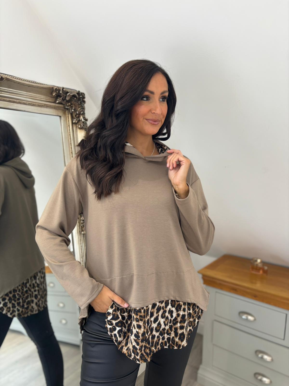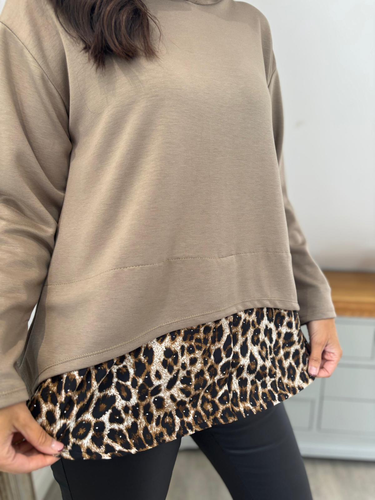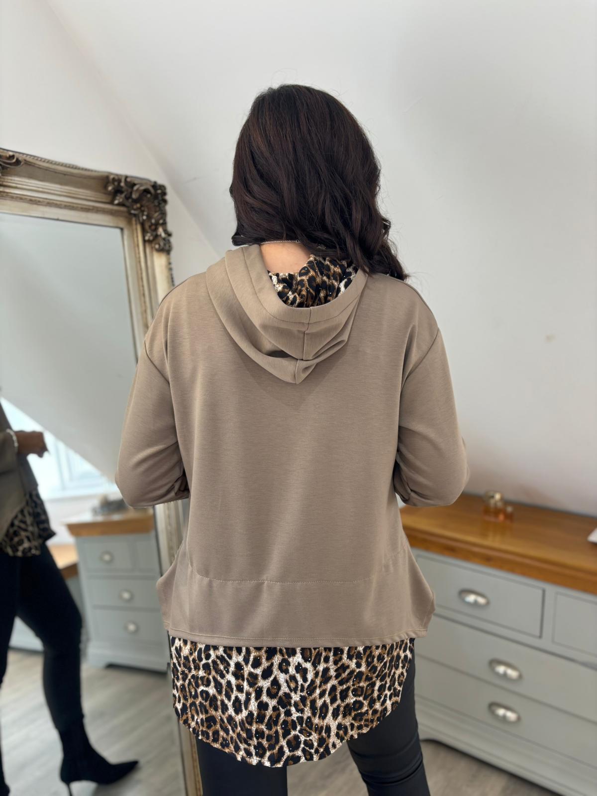 Elevate your casual wardrobe with the Leopard Sweat Top Lola, featuring a soft long sleeve design for ultimate comfort. The sophisticated diamante leopard trim adds a subtle touch of sparkle, while the matching detail inside the hood offers a refined finish. Perfect for relaxed yet stylish days, this sweat top combines effortless elegance with everyday wearability.