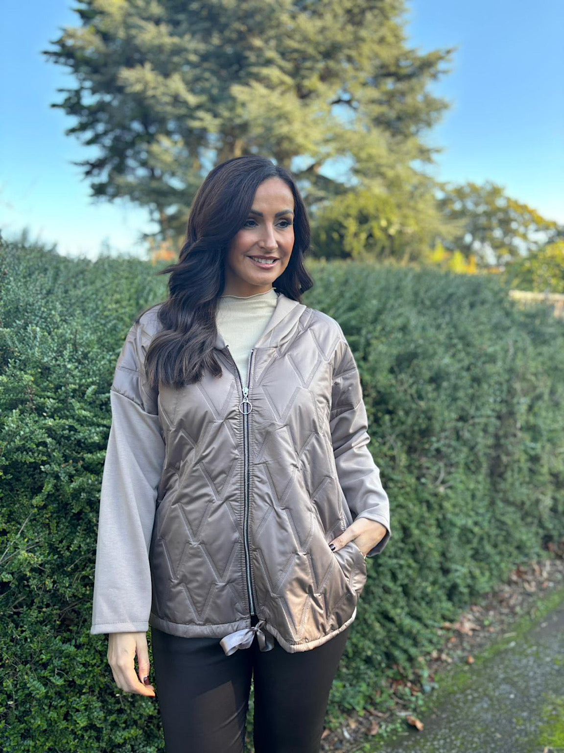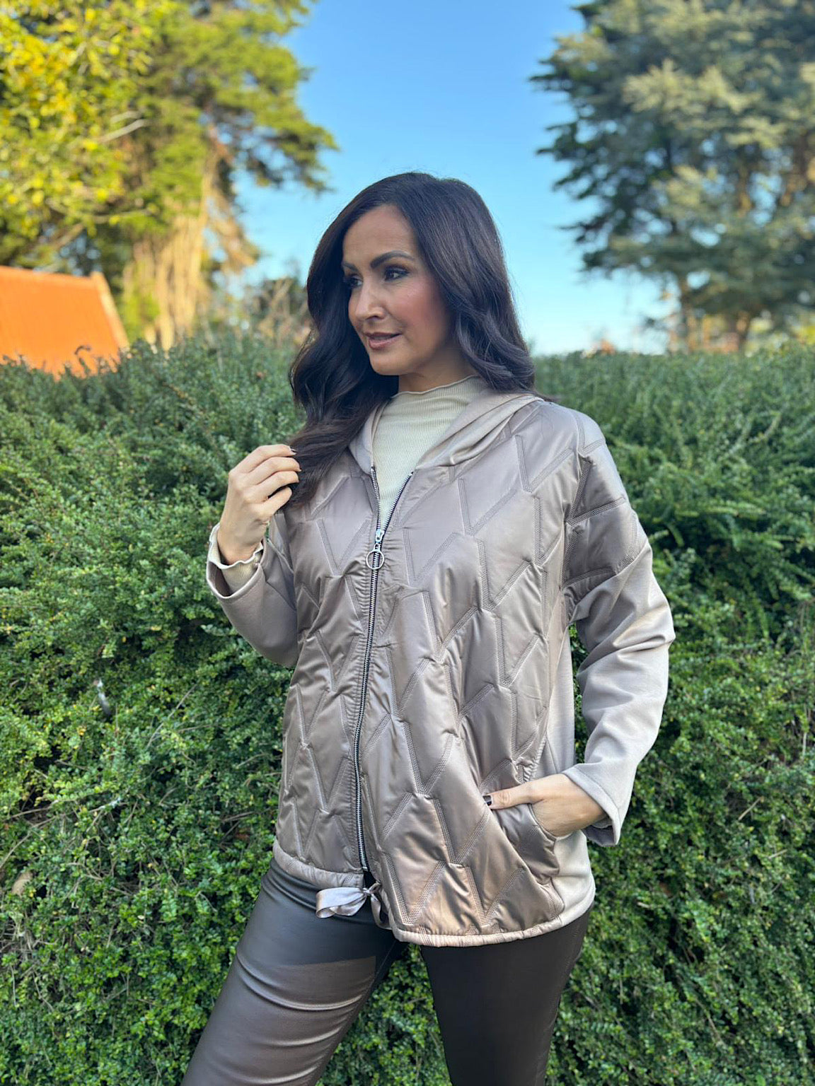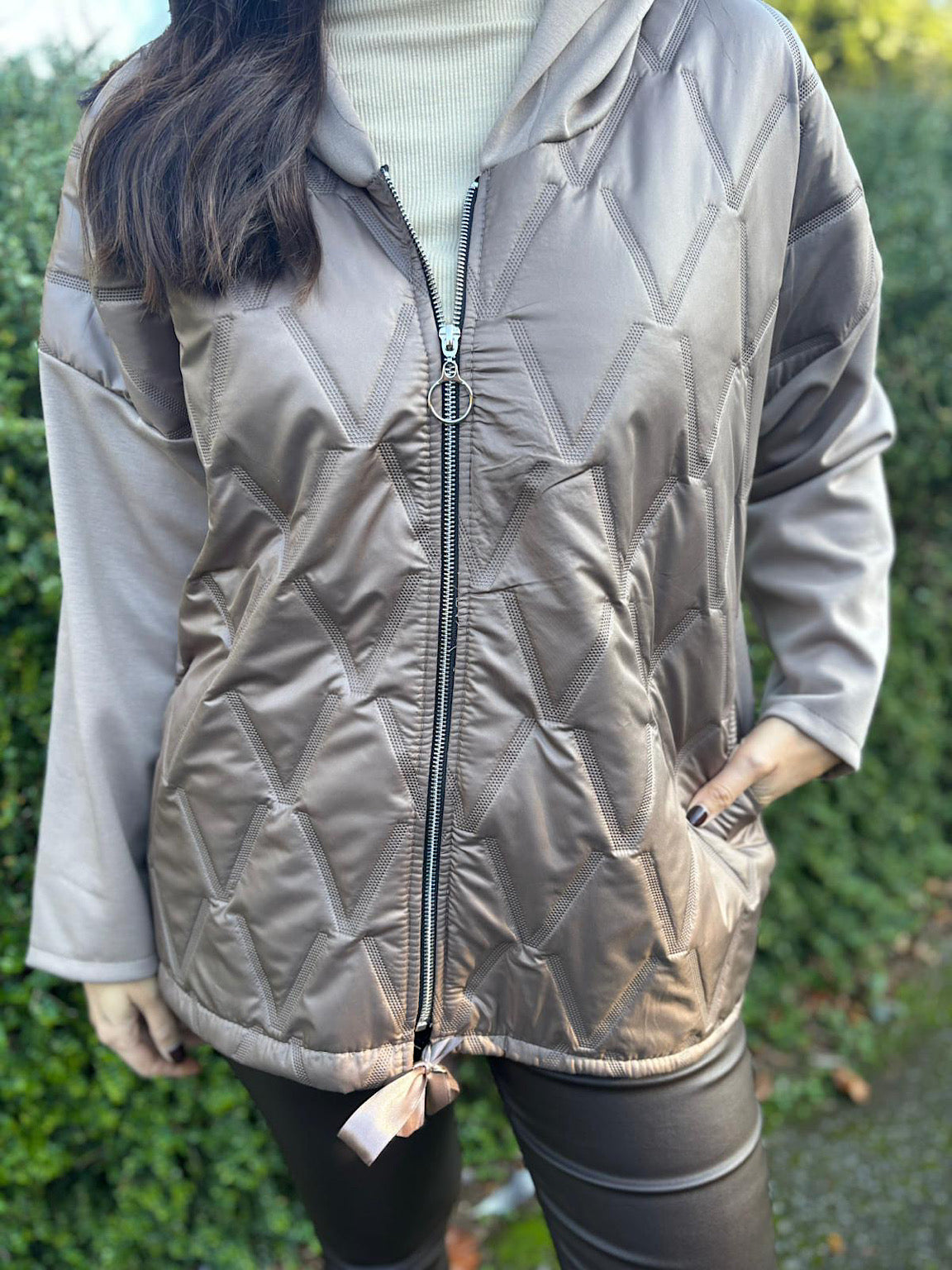 The Quilted Jacket Lucia combines comfort and style with its quilted front and sweatshirt-inspired design. Featuring plenty of stretch for ease of movement, a secure zip fastening, and practical pockets, it’s perfect for everyday wear. The added ribbon detail at the bottom adds a subtle, stylish touch to keep you feeling confident and supported throughout your day.