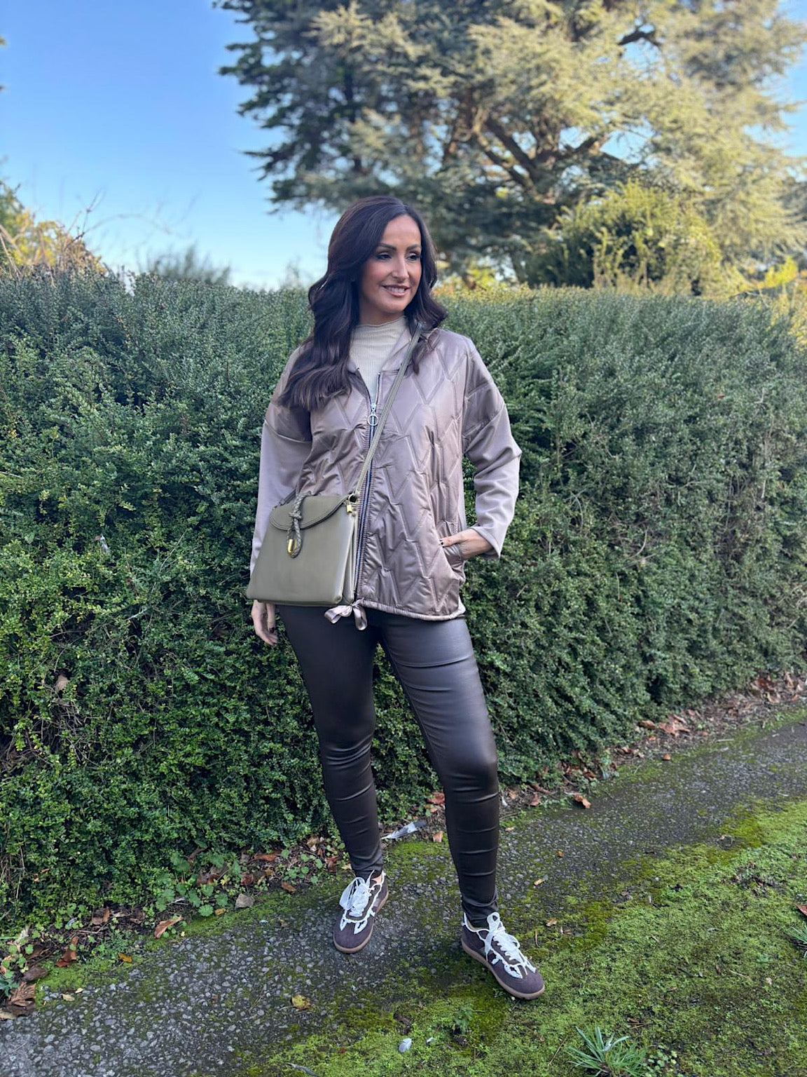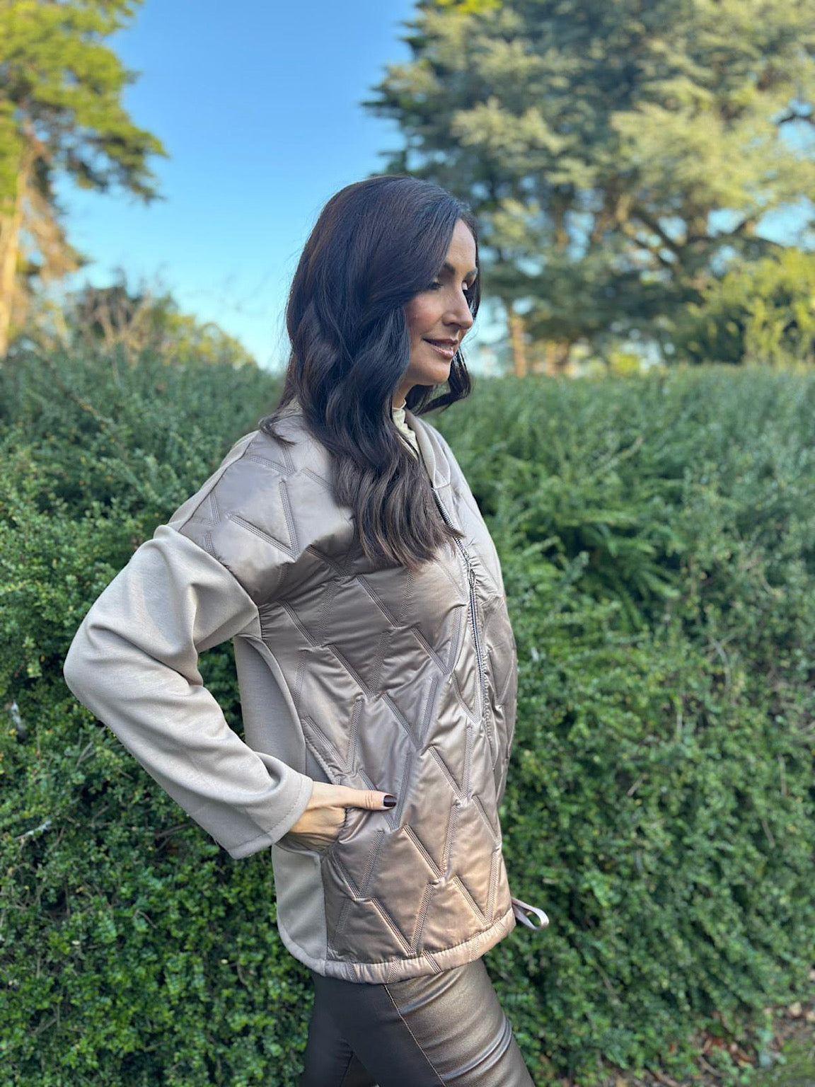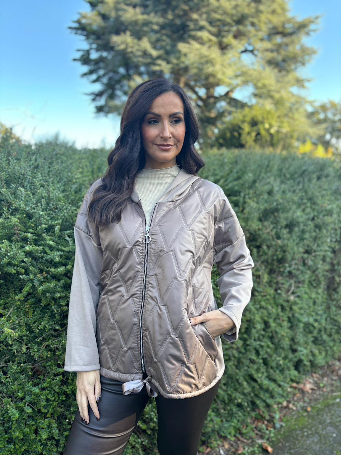 The Quilted Jacket Lucia combines comfort and style with its quilted front and sweatshirt-inspired design. Featuring plenty of stretch for ease of movement, a secure zip fastening, and practical pockets, it’s perfect for everyday wear. The added ribbon detail at the bottom adds a subtle, stylish touch to keep you feeling confident and supported throughout your day.