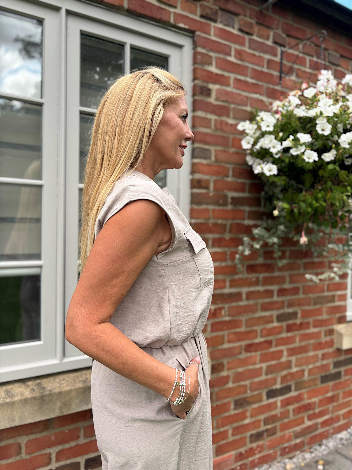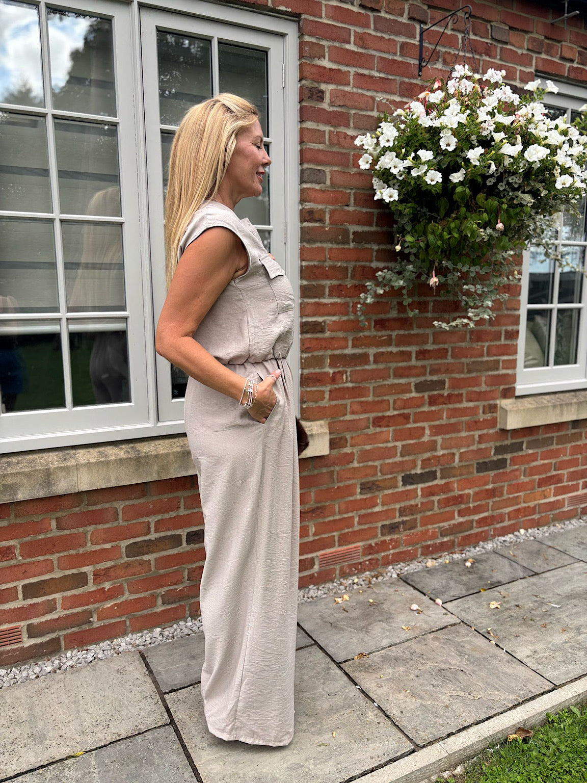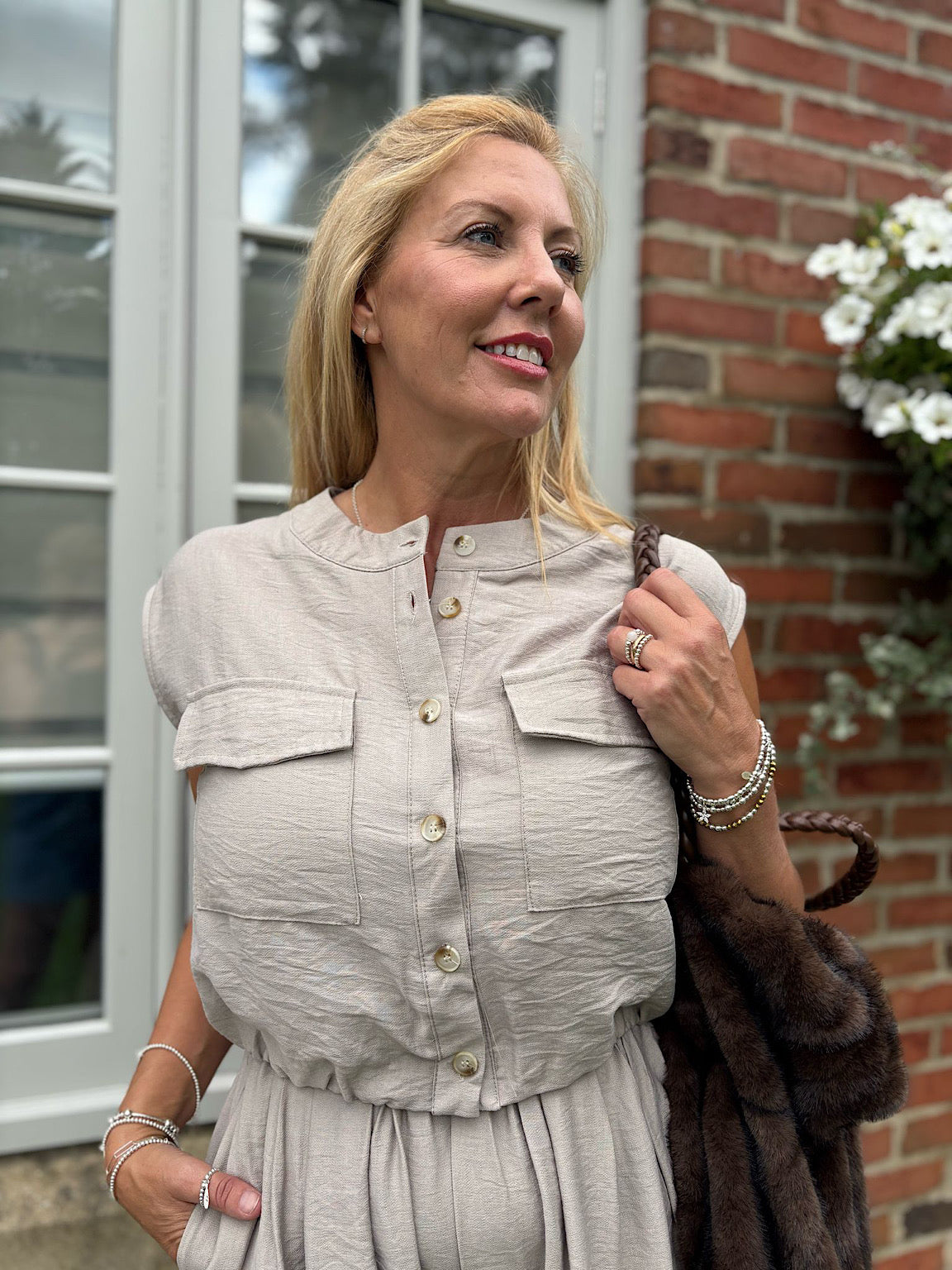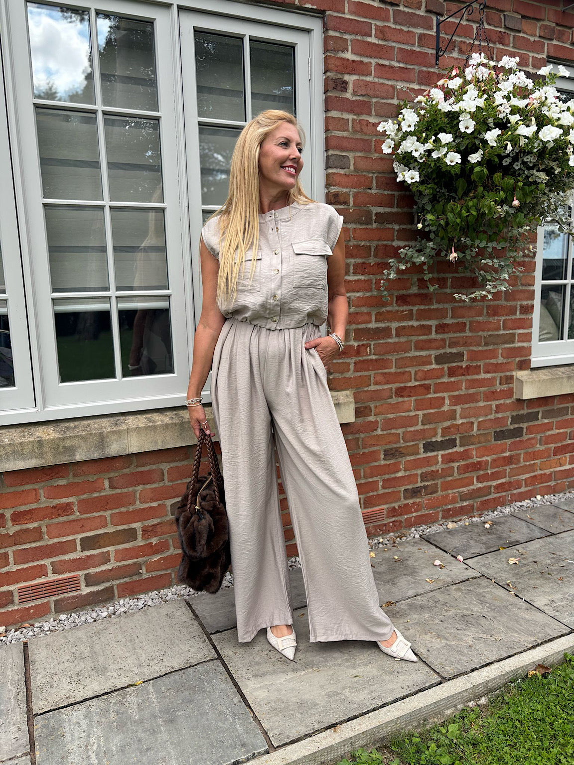 Stone Sleeveless Button Top and Trouser Co-Ord Piper