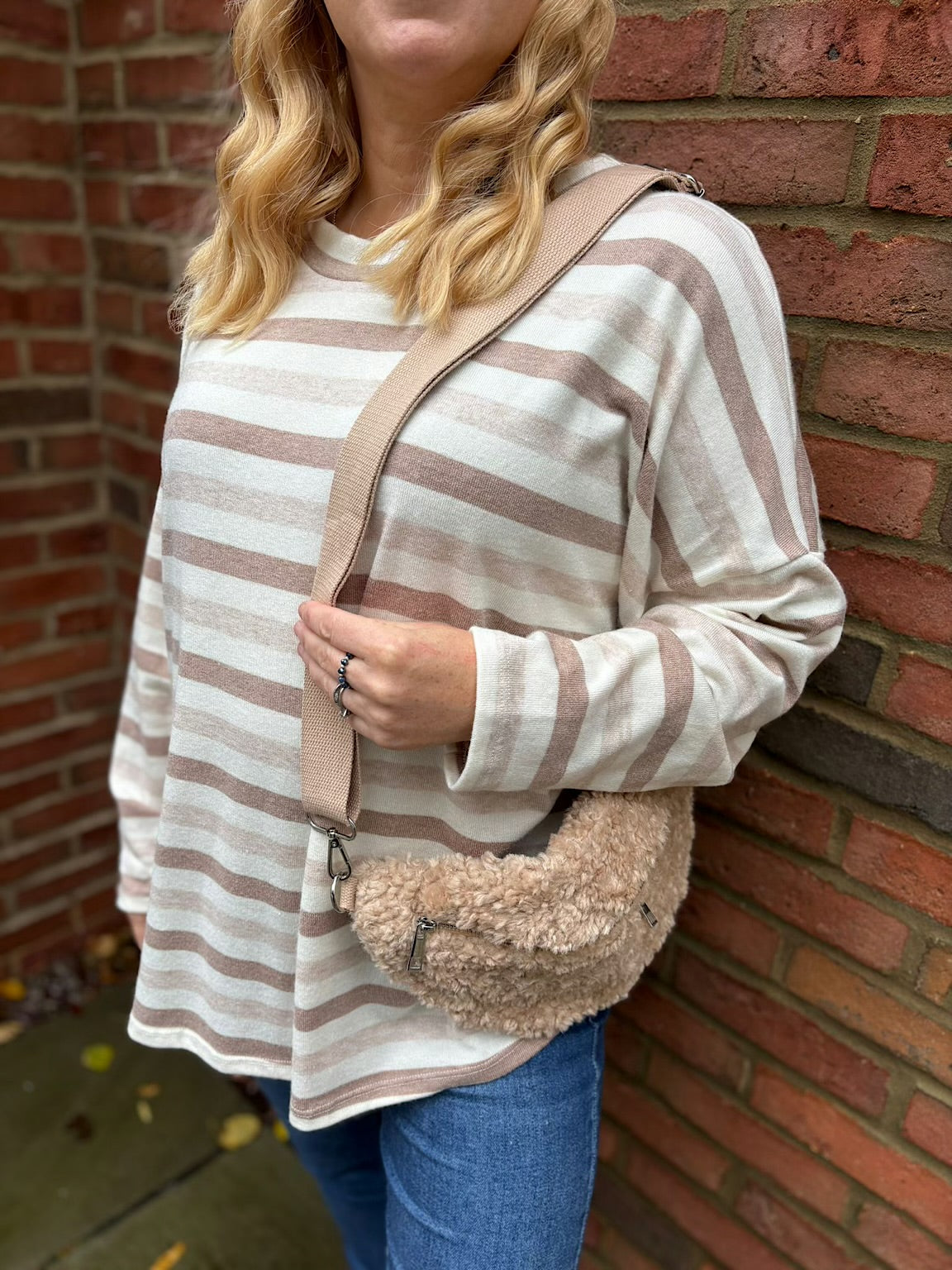 Styled with....>Stone Teddy Fleece Crossbody Bag/ Stone Ebony Trainer