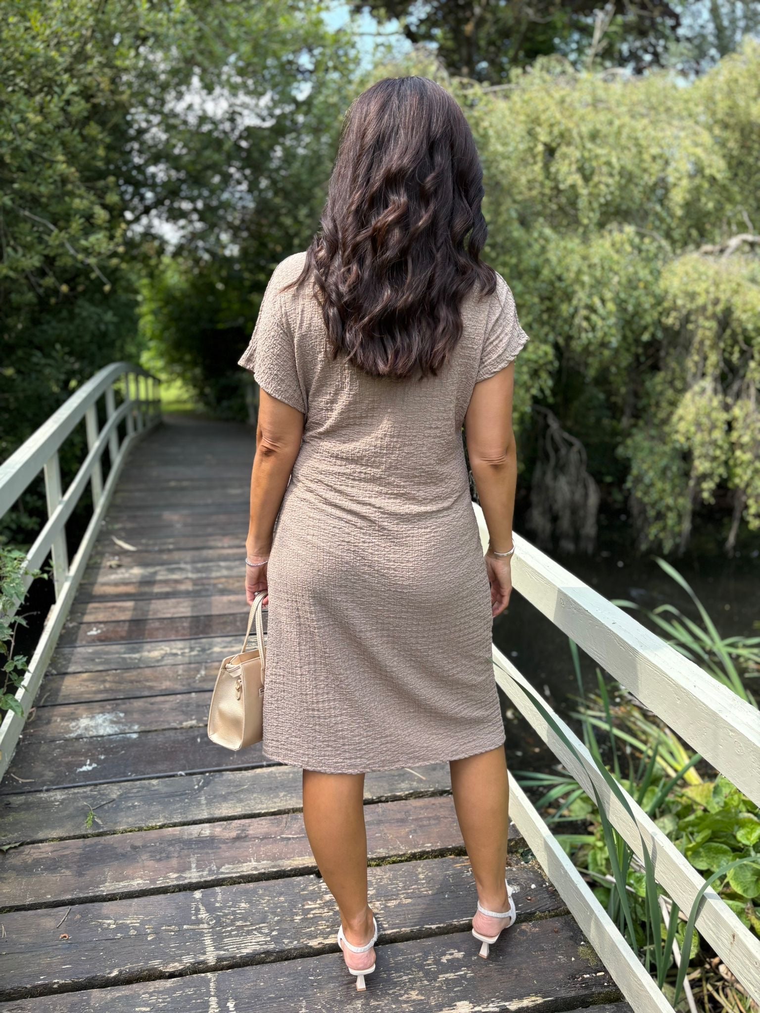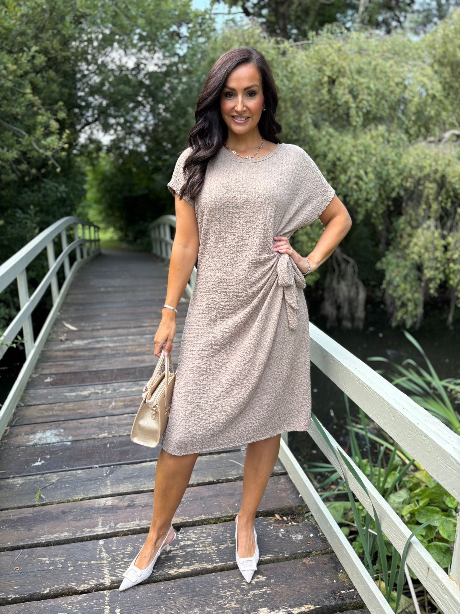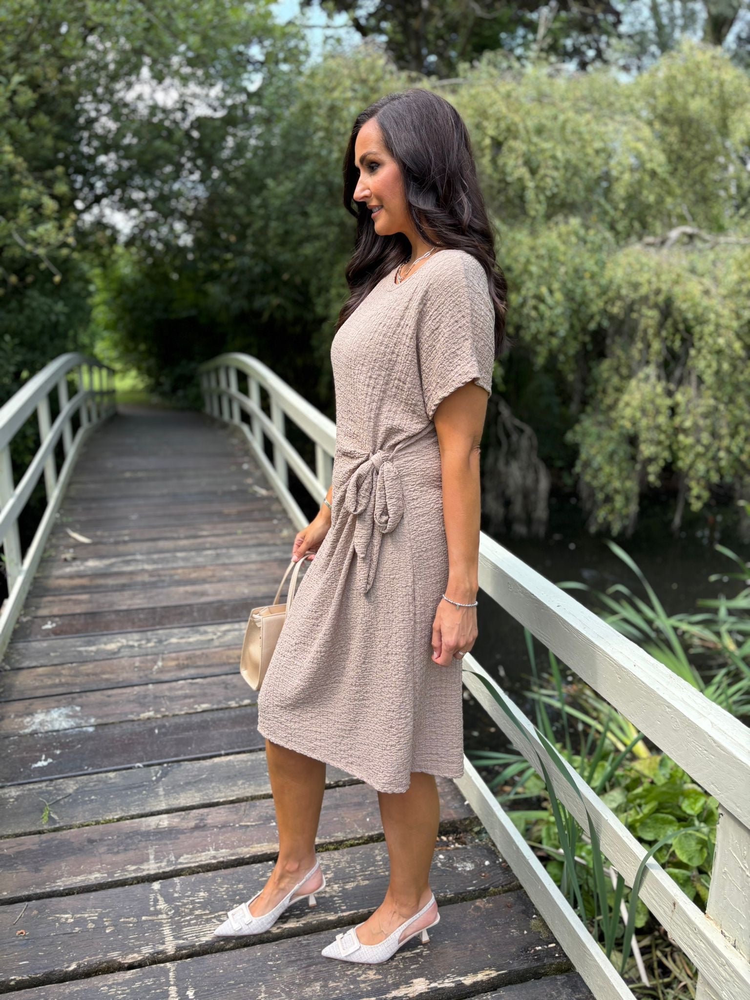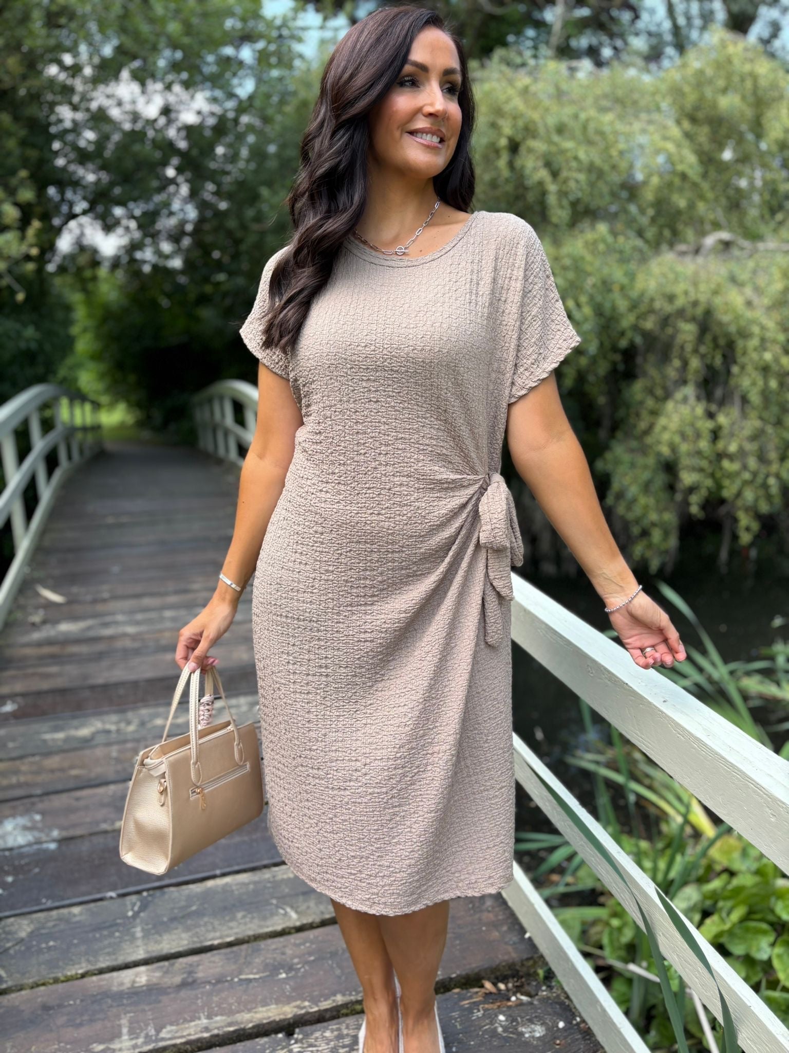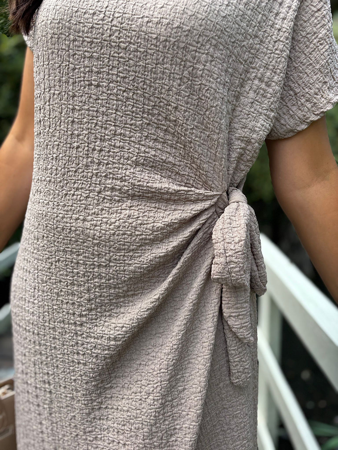 This Textured Tie Dress Corrina offers a soft, comfortable feel with a unique textured fabric. The side tie allows you to adjust the fit to your preference, ensuring both style and comfort throughout the day. Perfect for those seeking a flattering and adaptable dress.