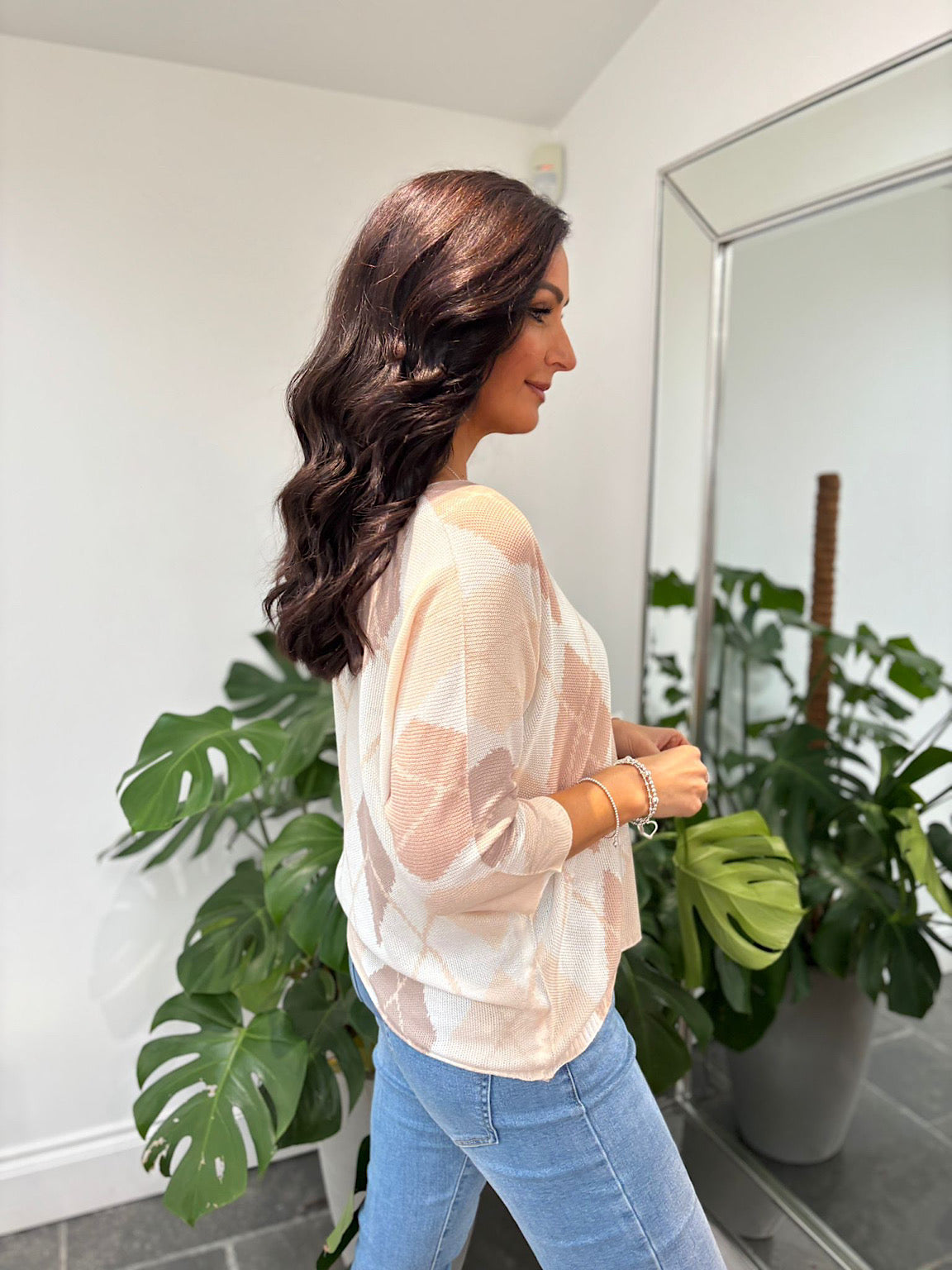 Mocha V Neck Argyle Print Top Izzy