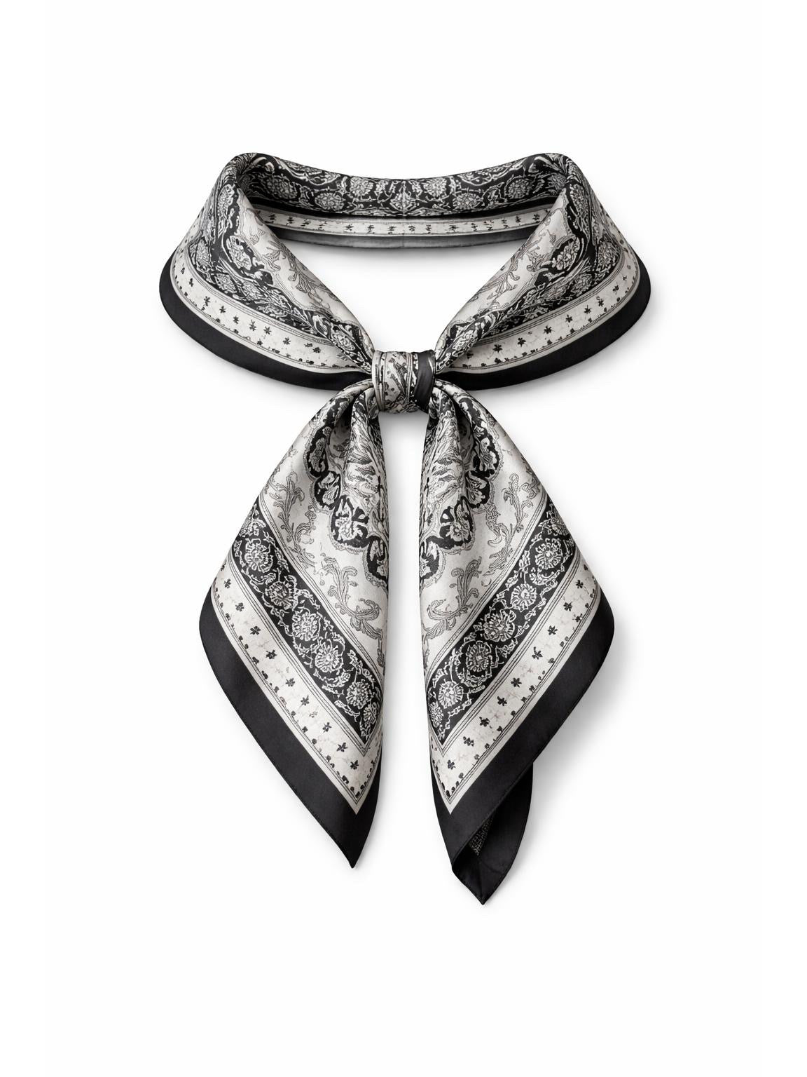 Elevate your everyday style with this stunning Monochrome Bohemian Retro Scarf. Crafted from luxurious silk, it features an intricate patterned design that brings timeless elegance to any outfit. The sophisticated monochrome palette works beautifully with both casual and formal wear, while the bohemian-inspired motifs add a touch of artistic flair. Perfect for draping around your shoulders, tying at your neck, or styling as a headwrap, this versatile accessory is your go-to piece for effortless sophistication. Embrace vintage charm with modern sensibility.