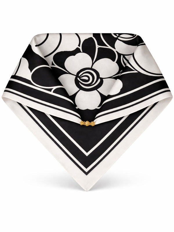 Elevate your everyday style with this striking monochrome floral scarf, featuring an artistic botanical design that works beautifully with any outfit. The convenient magnetic gold fastening keeps your scarf securely in place throughout the day, eliminating the need for pins or constant adjusting. Crafted for those who appreciate both practicality and understated elegance, this versatile piece transitions effortlessly from casual to polished looks. Perfect for adding a touch of sophistication to your wardrobe.