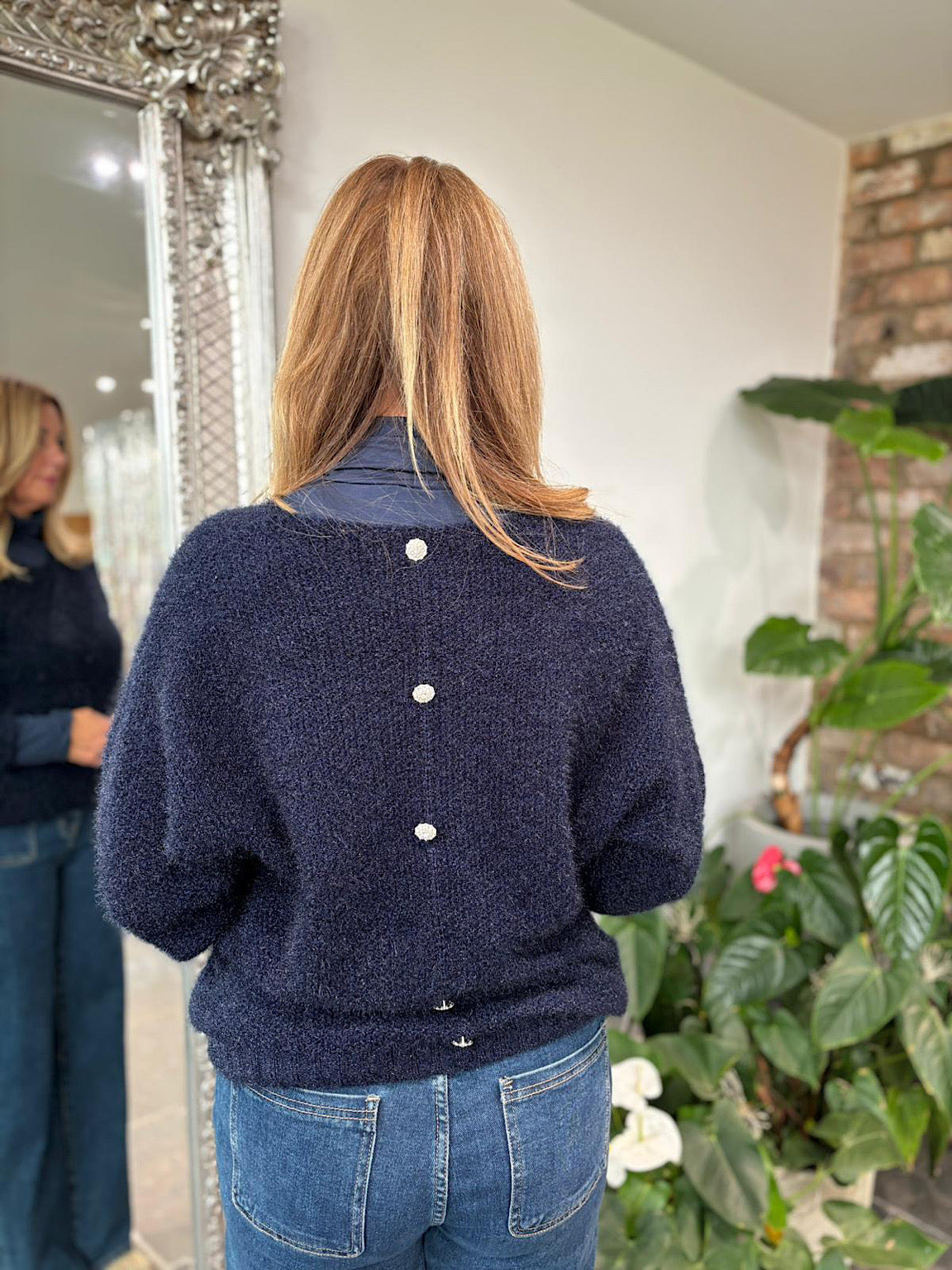 The Back Detail Knit Top Billie features elegant batwing sleeves and delicate button detailing along the back, adding a sophisticated touch to your outfit. Crafted from subtly shimmering fabric, this top brings a soft glow to your look, perfect for both day and evening wear. Comfortable and stylish, it supports your confident, graceful style effortlessly.