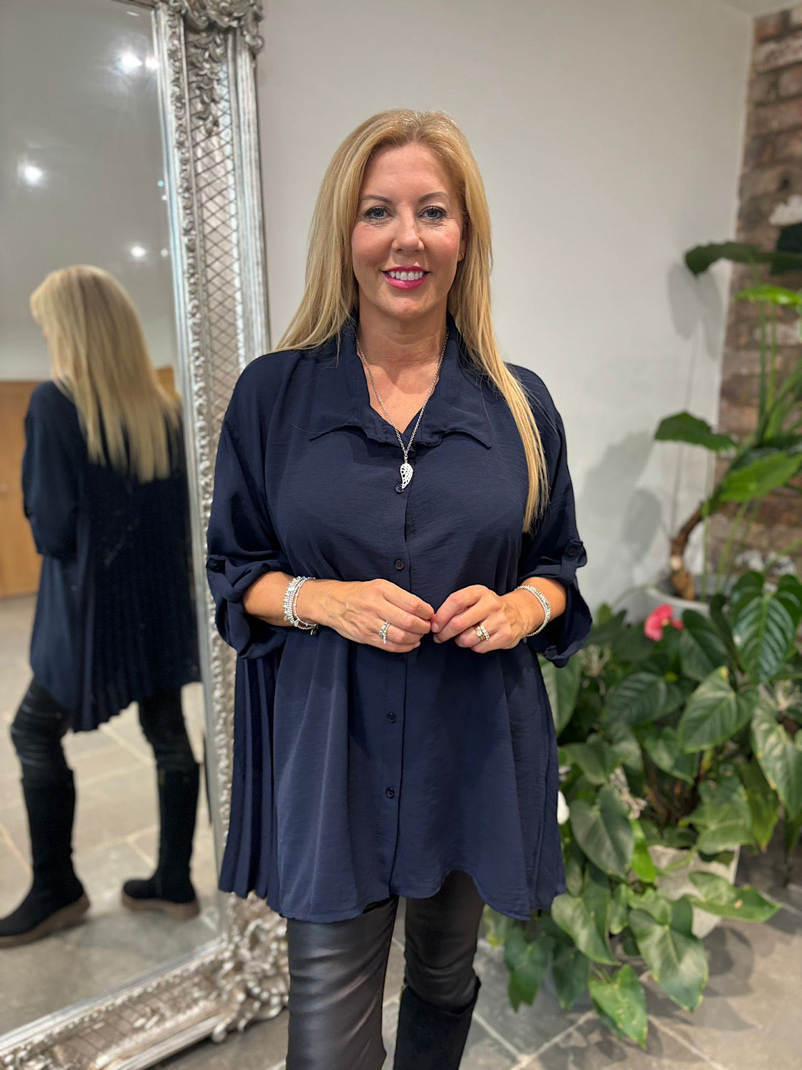 This Back Pleat Blouse Jackie combines comfort and style with its soft crepe fabric and elegant pleated detail at the back. Designed with buttoned sleeves, it offers a tailored look while ensuring ease of wear. Perfect for adding a refined touch to your everyday wardrobe, it supports versatile styling for both work and casual occasions.