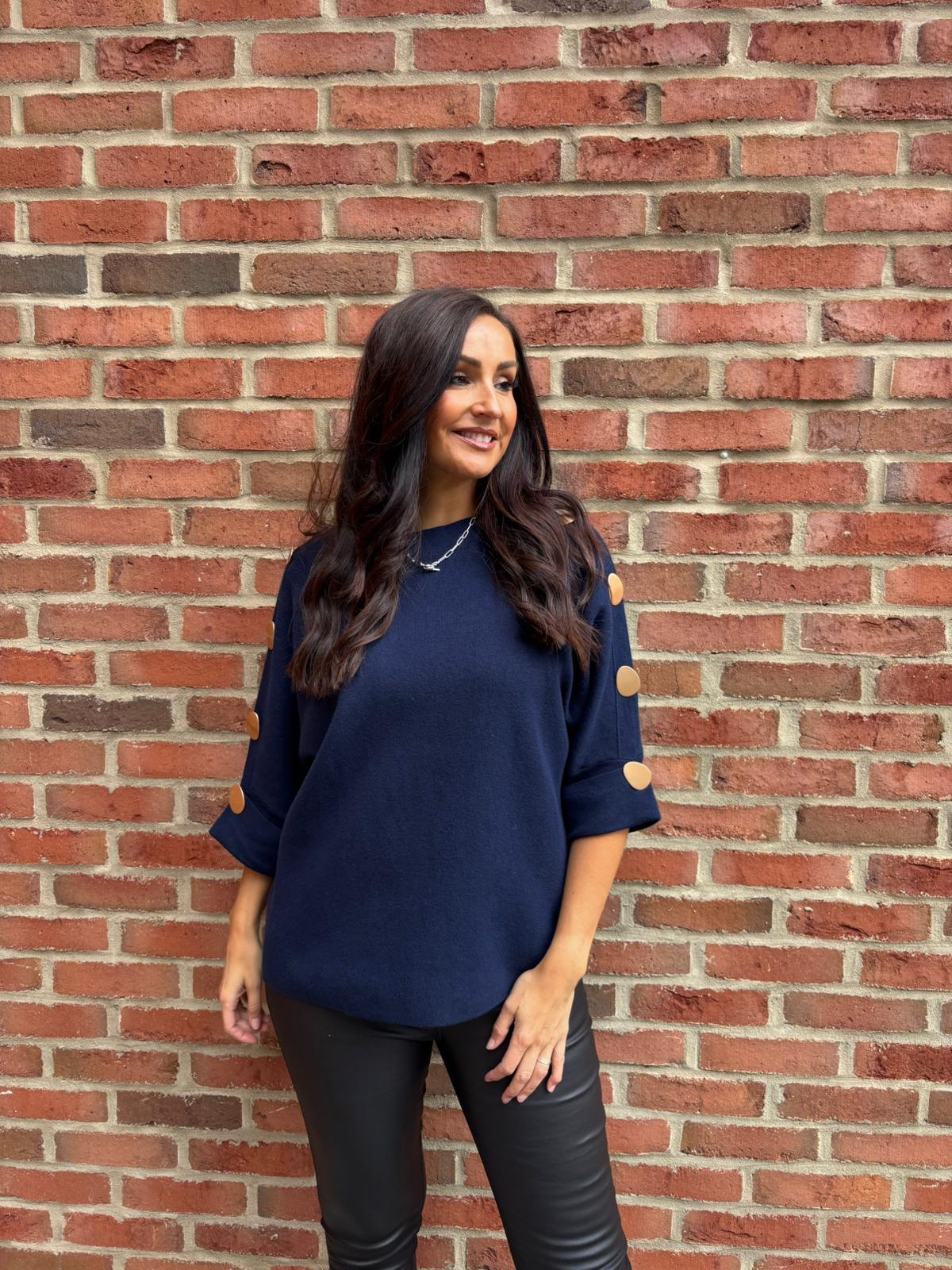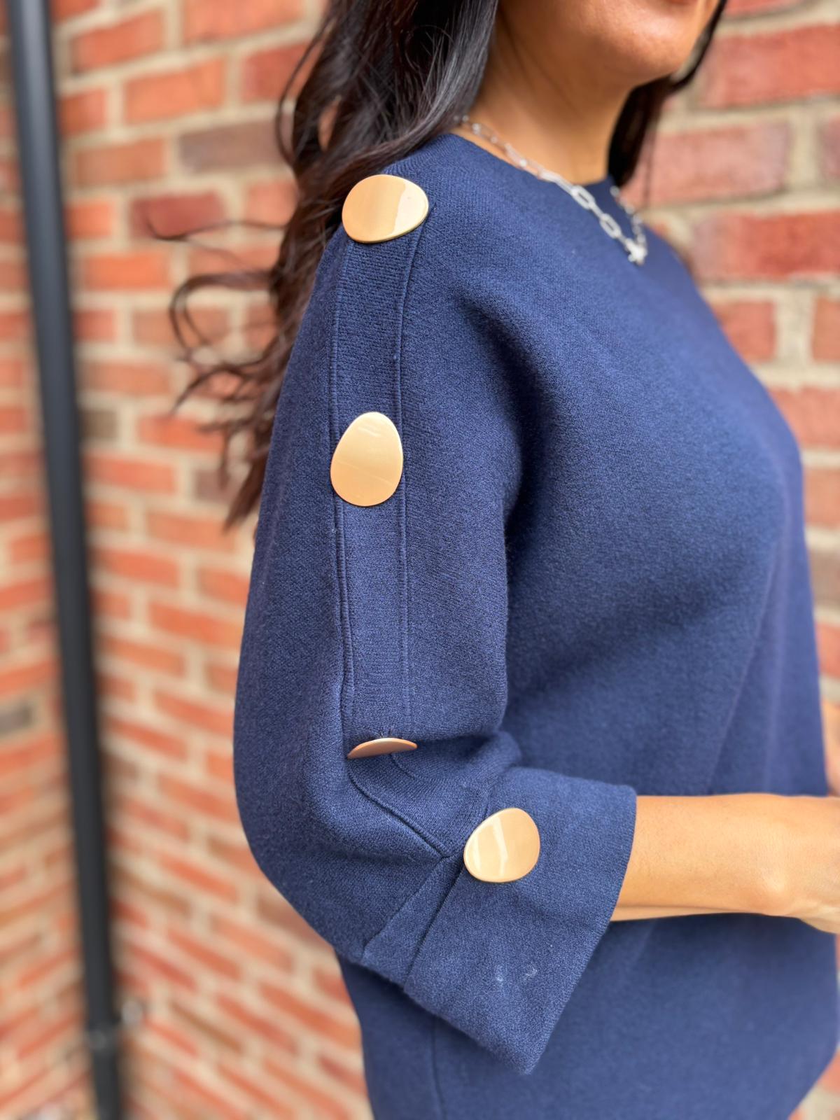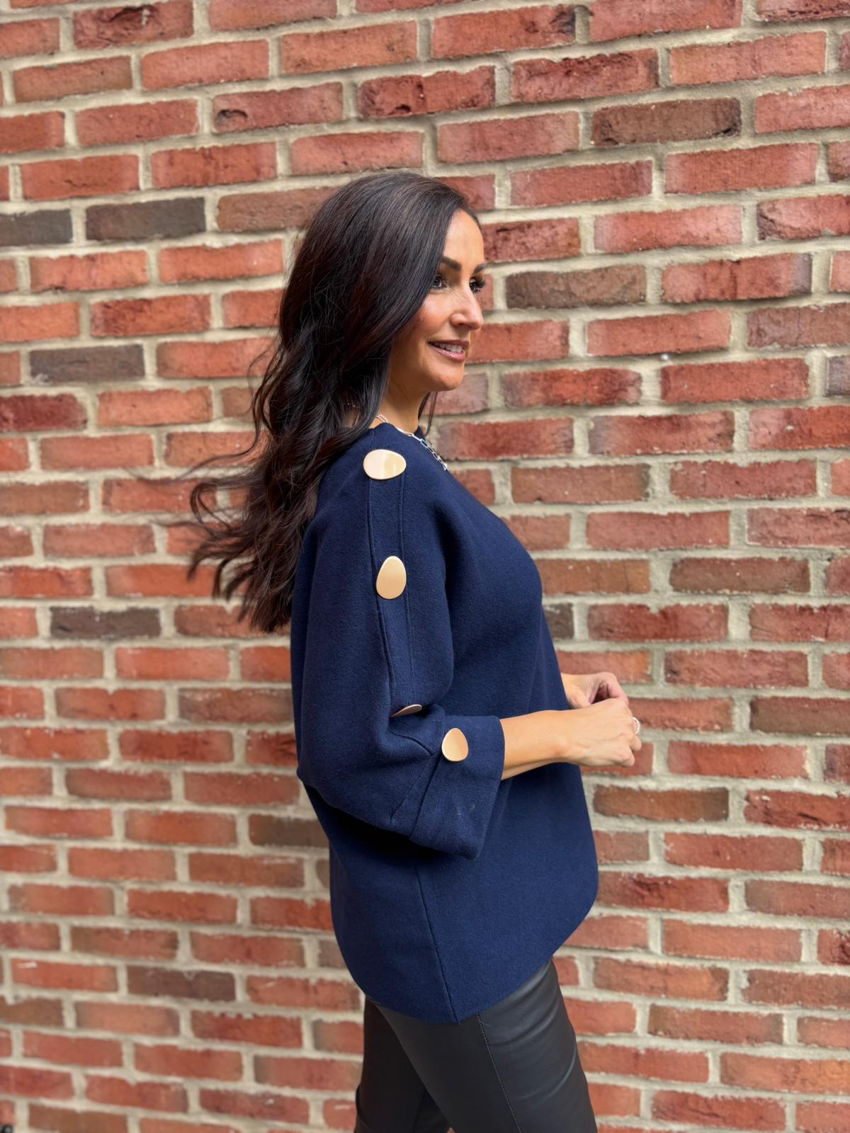 Navy Button Sleeve Knit Erin