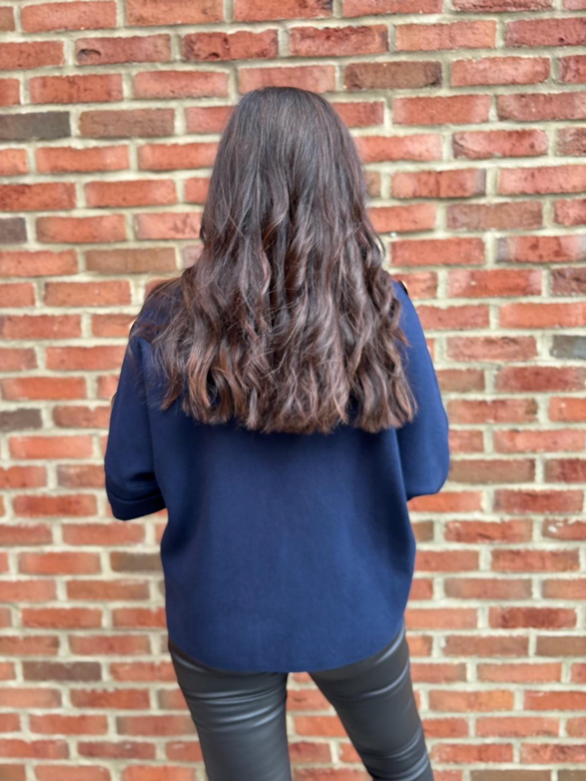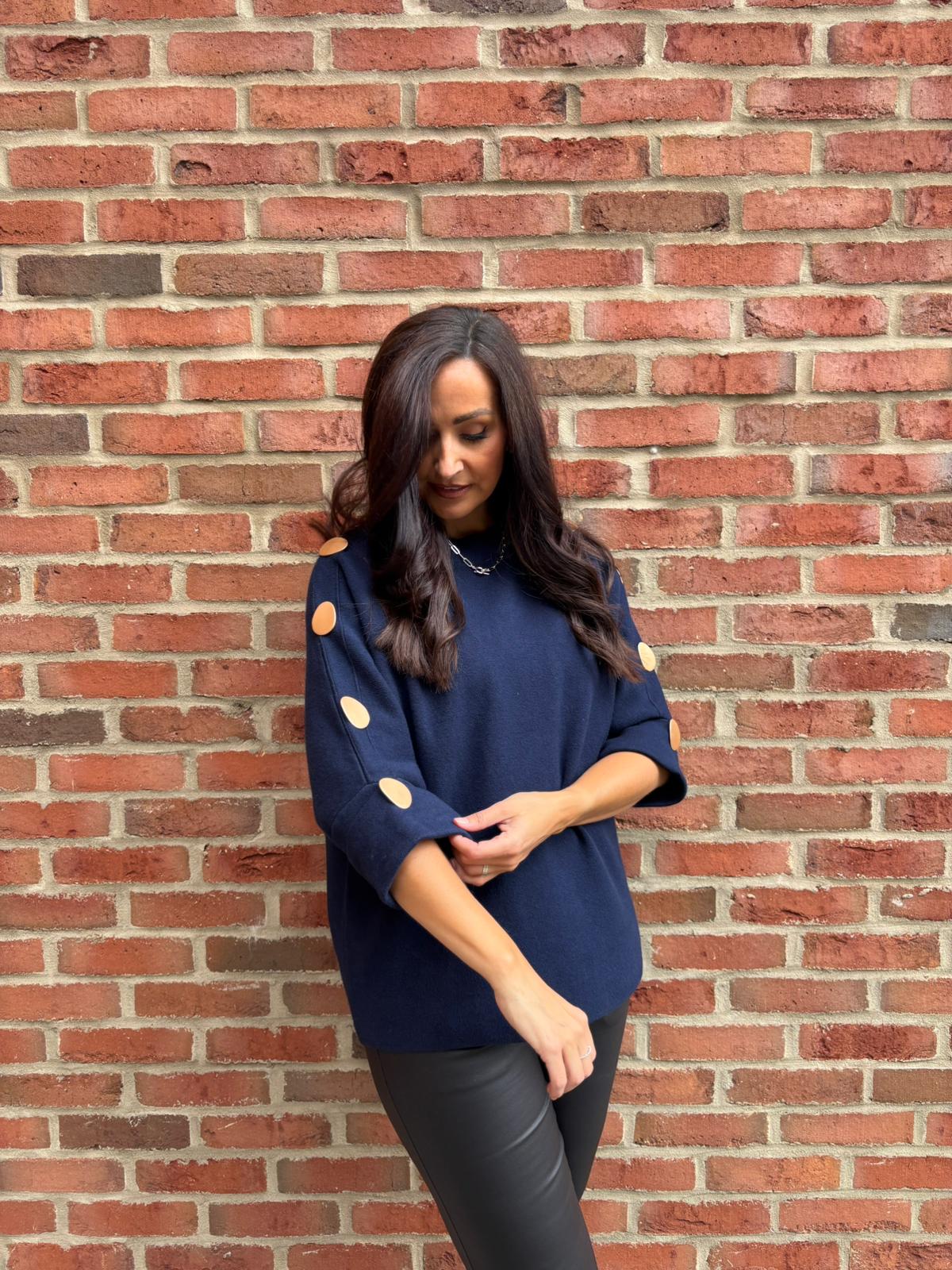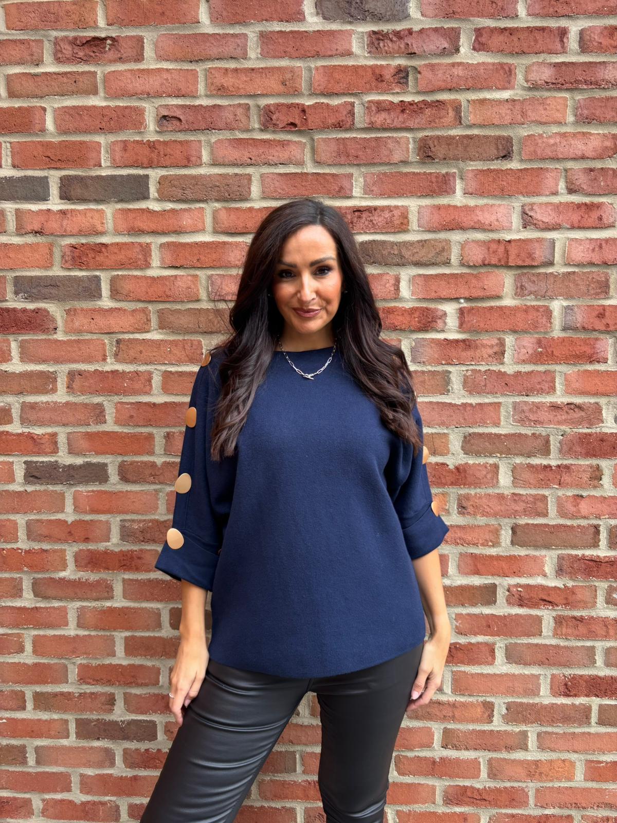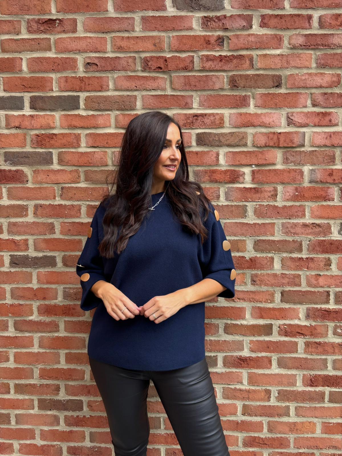 Navy Button Sleeve Knit Erin