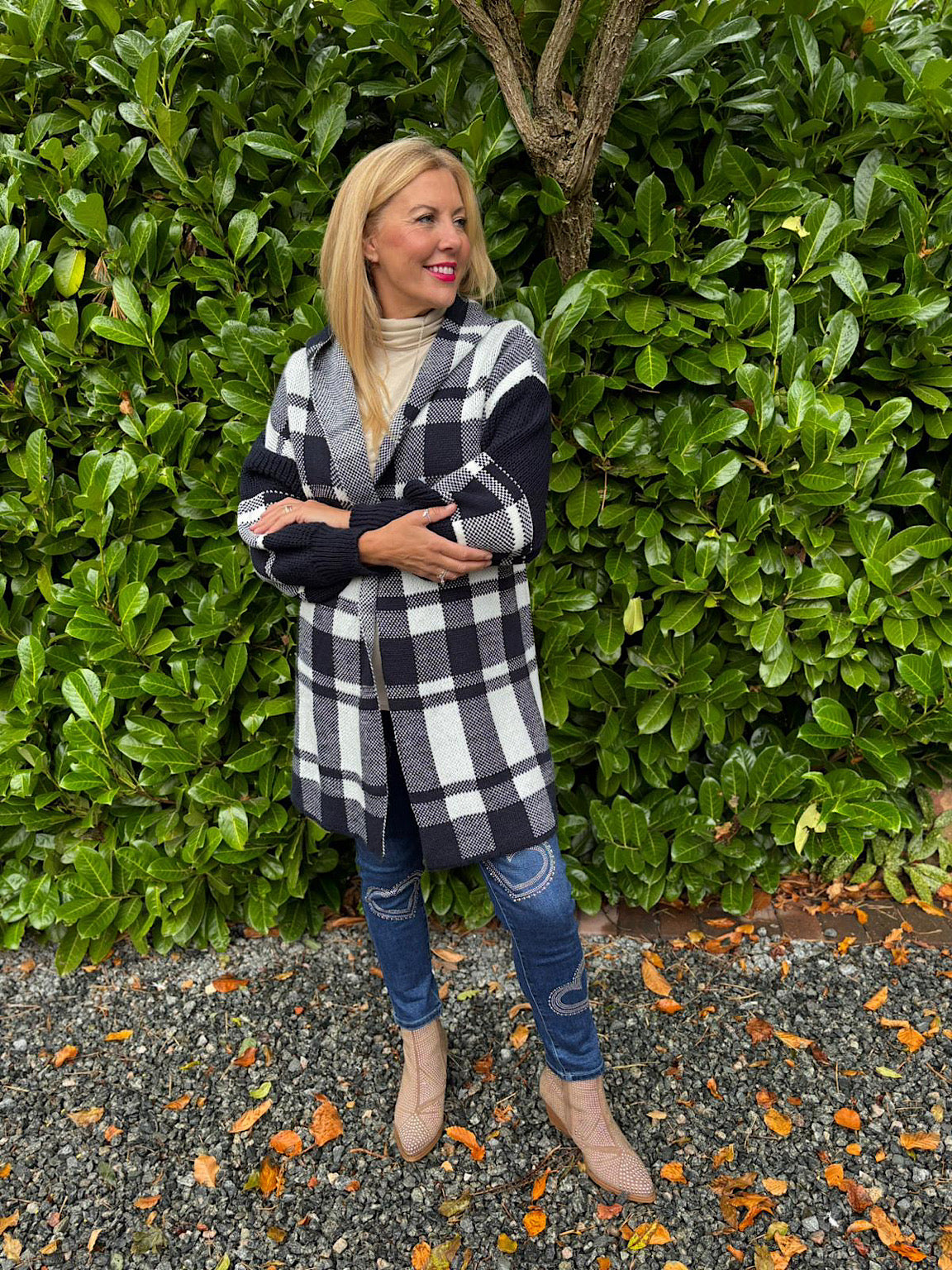 Elevate your layering game with this timeless check hooded cardigan. The longline silhouette provides extra coverage and warmth, while the classic checked pattern adds versatile style to any outfit. Perfect for those cooler days when you need a cosy, dependable piece that works with everything in your wardrobe. Layer it over your favourite tops for effortless sophistication.