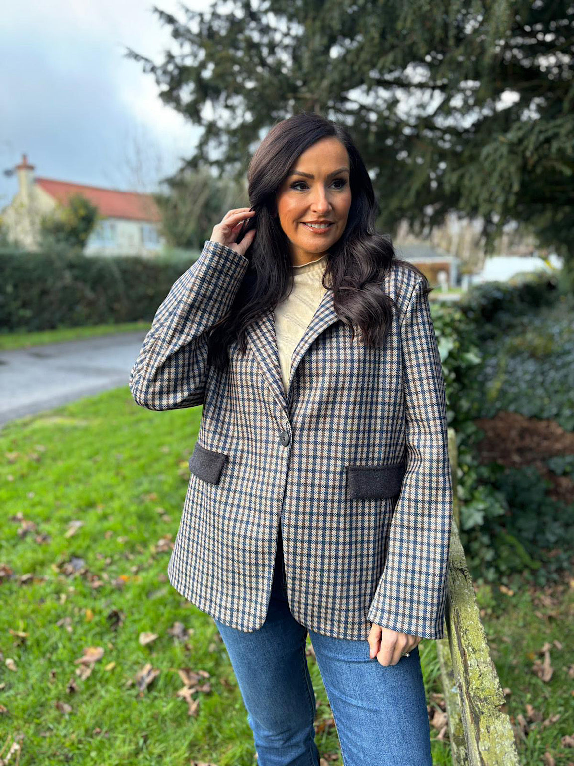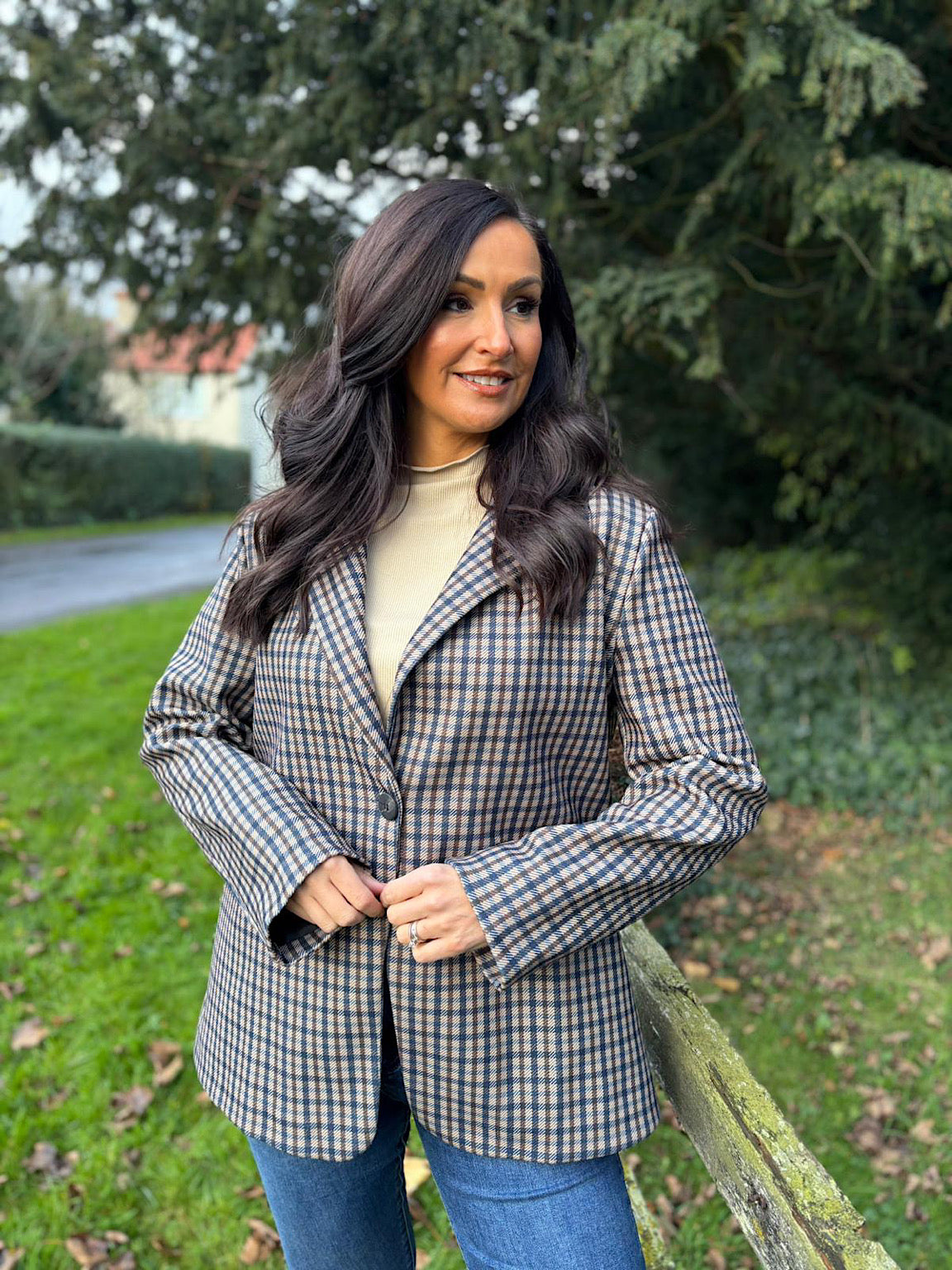 Navy Checked Blazer Sara