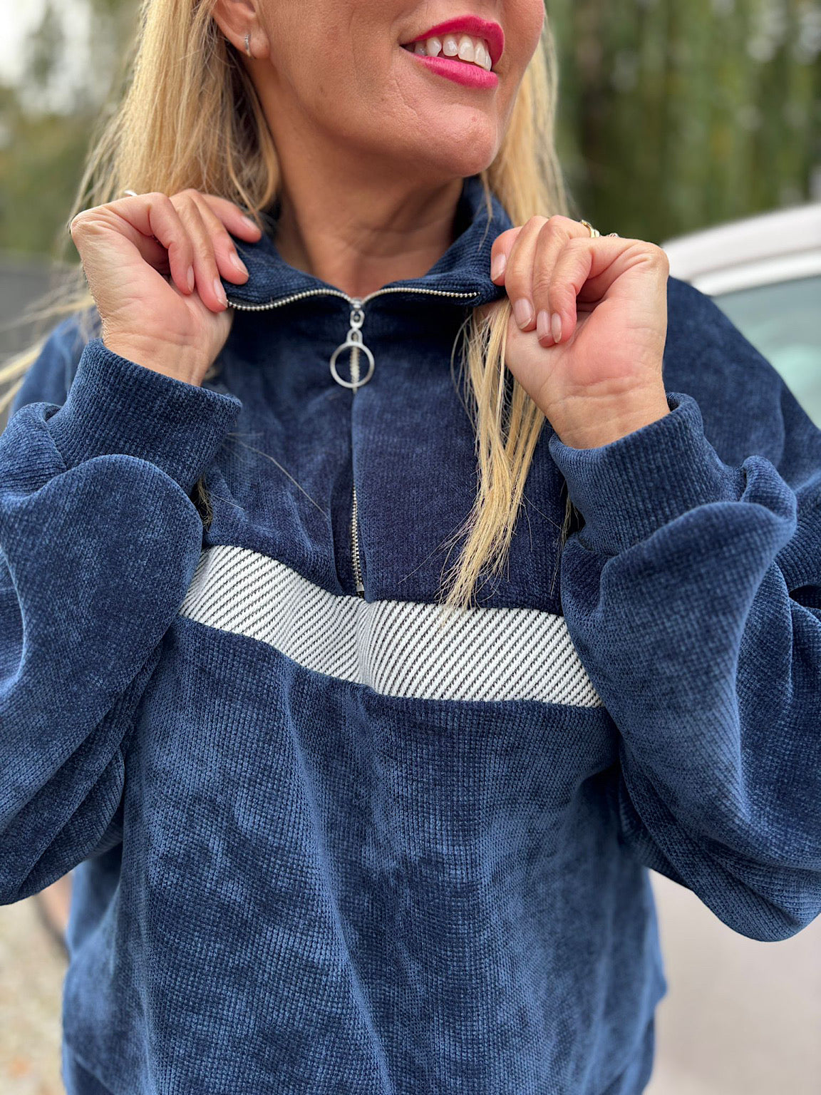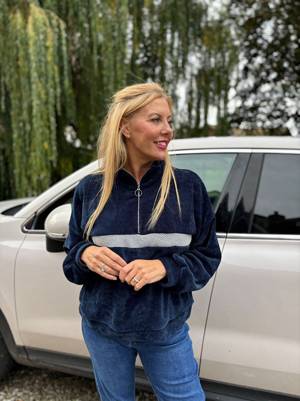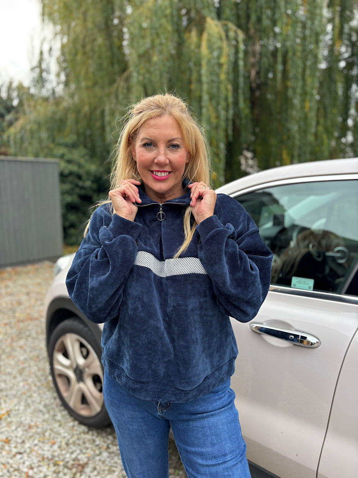 Embrace cosy comfort with this Chenille Half Zip Jumper Hazel. Crafted from luxuriously soft chenille fabric, it features a practical half zip design for easy layering and temperature control. The eye-catching patterned stripe running through the centre adds a touch of visual interest to your everyday wardrobe. Perfect for relaxed days at home or casual outings, this jumper combines tactile softness with effortless style.