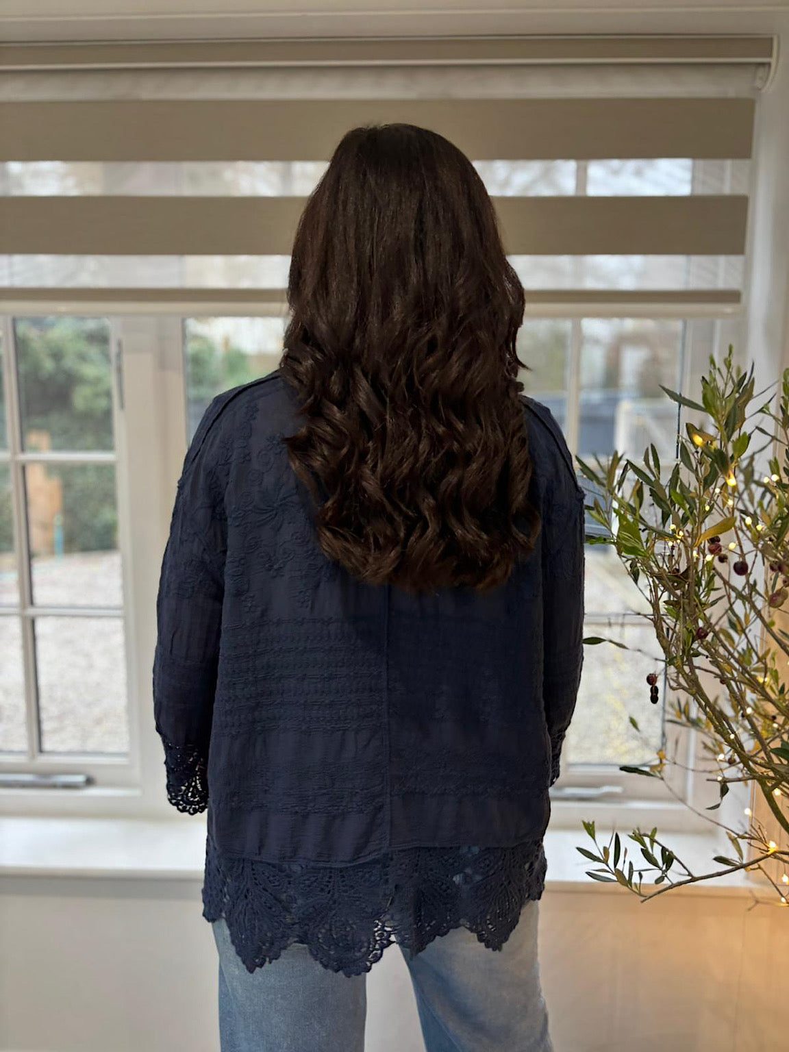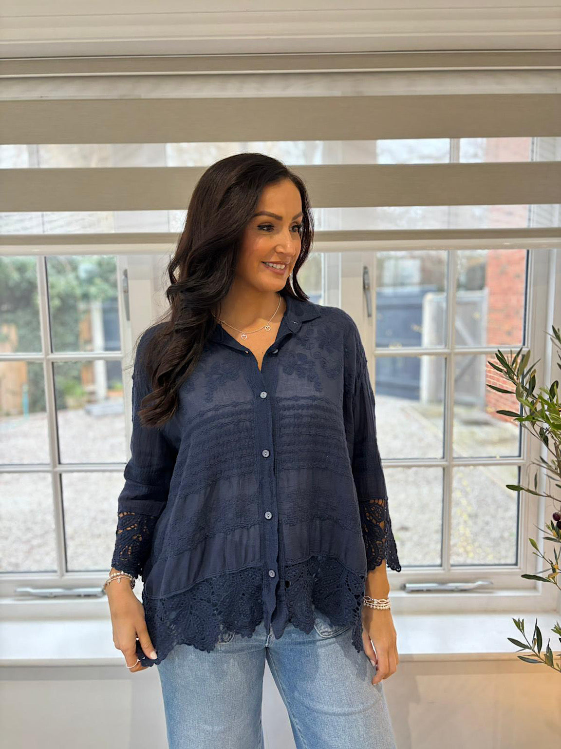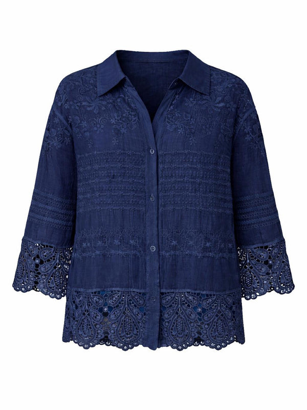 Navy Crochet Detail Shirt Jacket Jenny