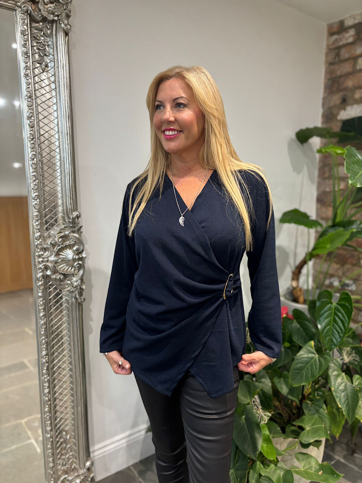 This crossover top combines comfort and style with its soft knitted fabric, ensuring a cos fit throughout the day. The elegant brooch-style detail adds a unique touch without compromising the top’s smooth silhouette. Perfect for adding a subtle yet distinctive accent to your wardrobe, this piece offers both practicality and refined design.