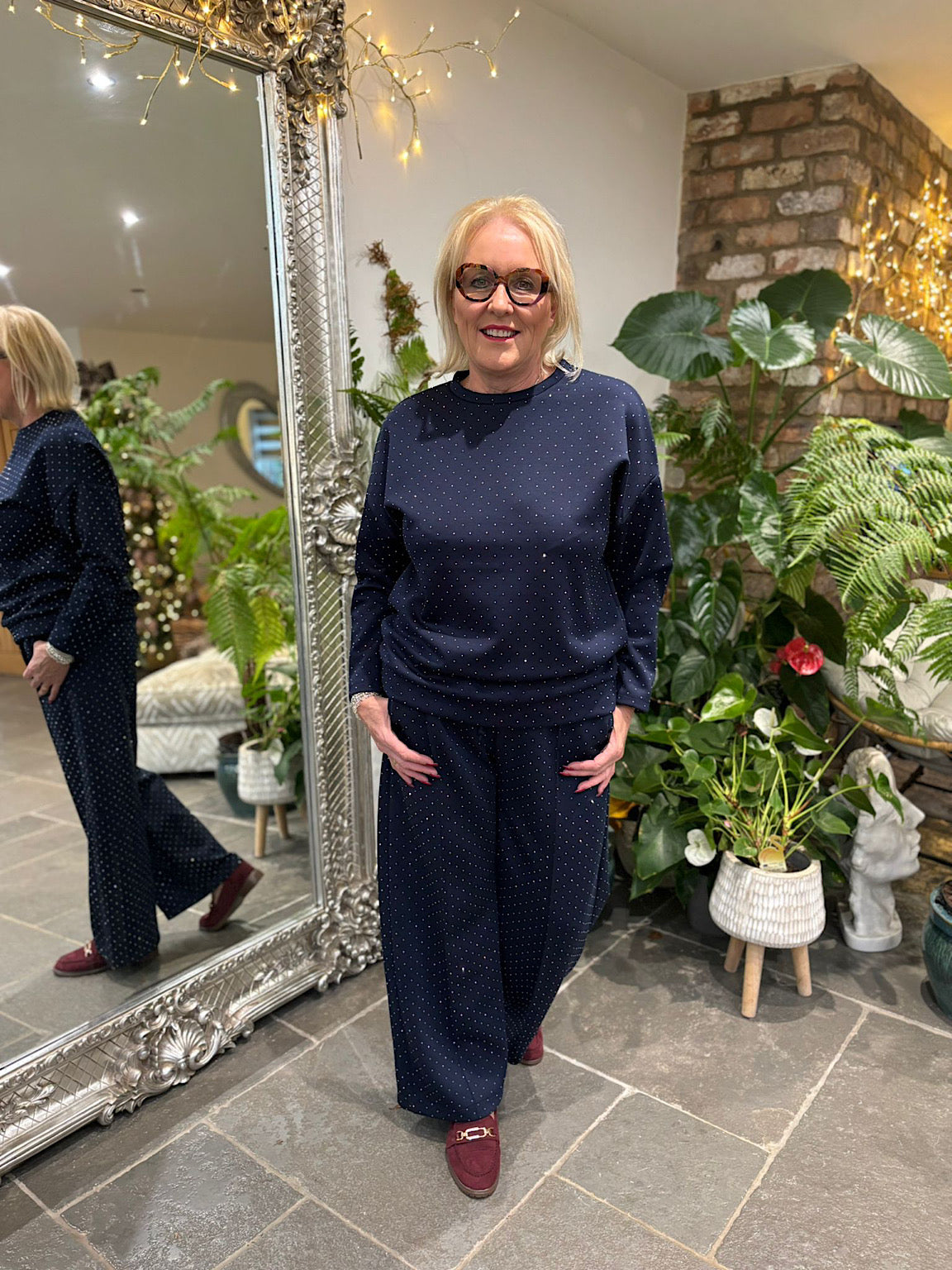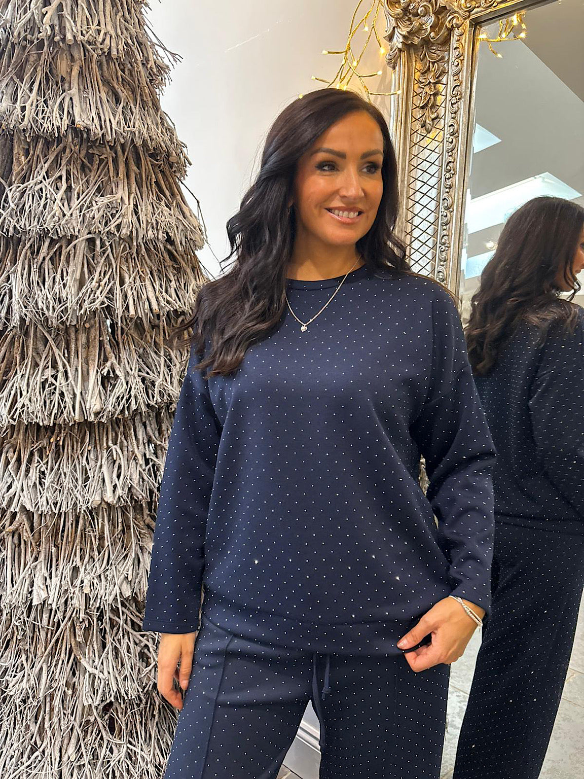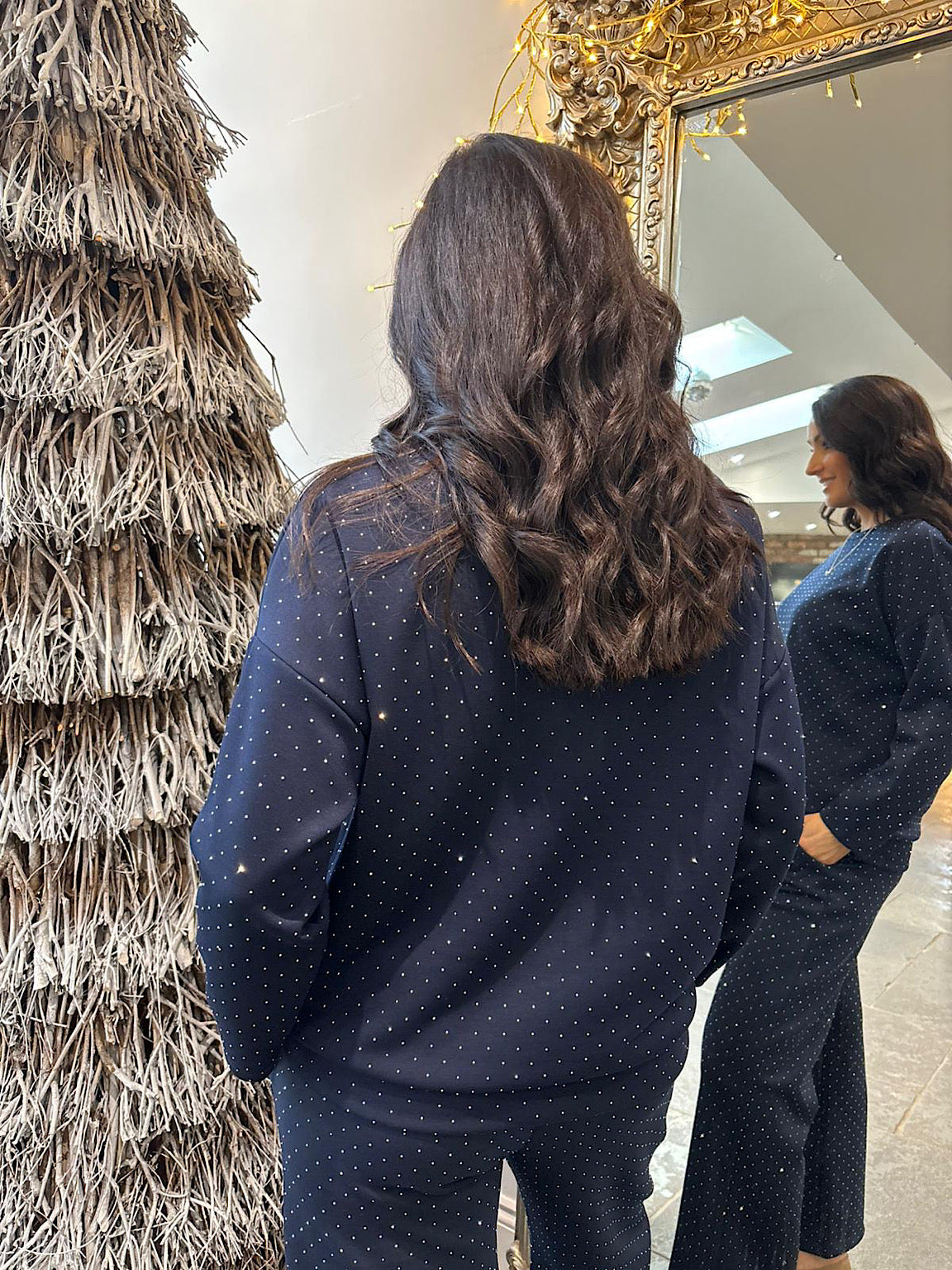 Discover effortless elegance with this Diamante Sweat Top Nina. Featuring delicate diamante embellishments scattered across the fabric, this piece brings a touch of sparkle to your casual wardrobe. With its cosy, relaxed fit inspired by our cherished Esme collection, it's the perfect choice for those moments when you want comfort without compromising on style. Layer it, dress it down, or wear it solo—this versatile top adapts to your mood and your day.