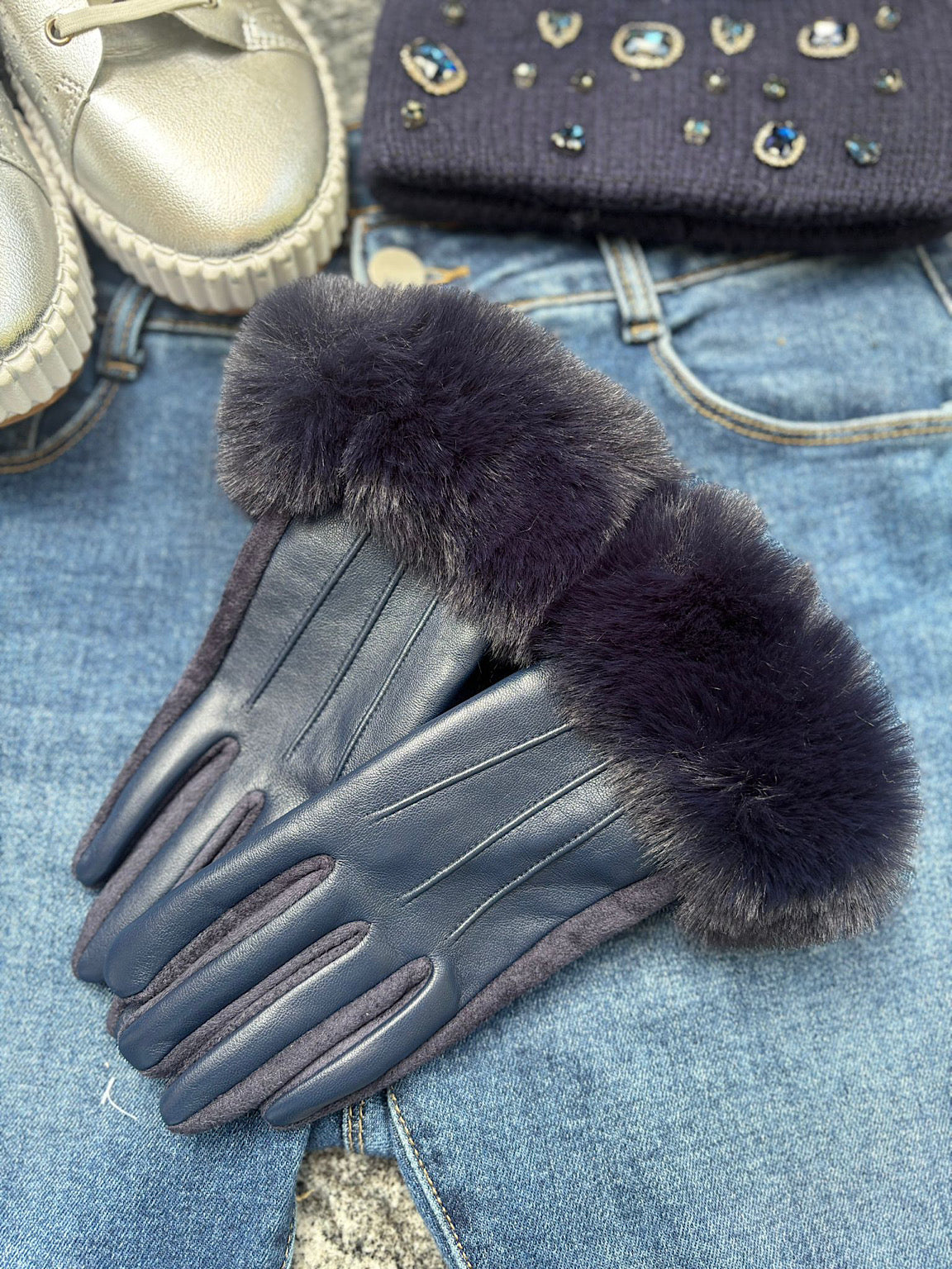 These Faux Fur Trim Gloves combine elegant faux leather with a cosy faux fur trim for warmth and style. The soft velour underside ensures comfortable wear throughout the day, making them perfect for chilly weather while keeping your hands feeling soft and protected.