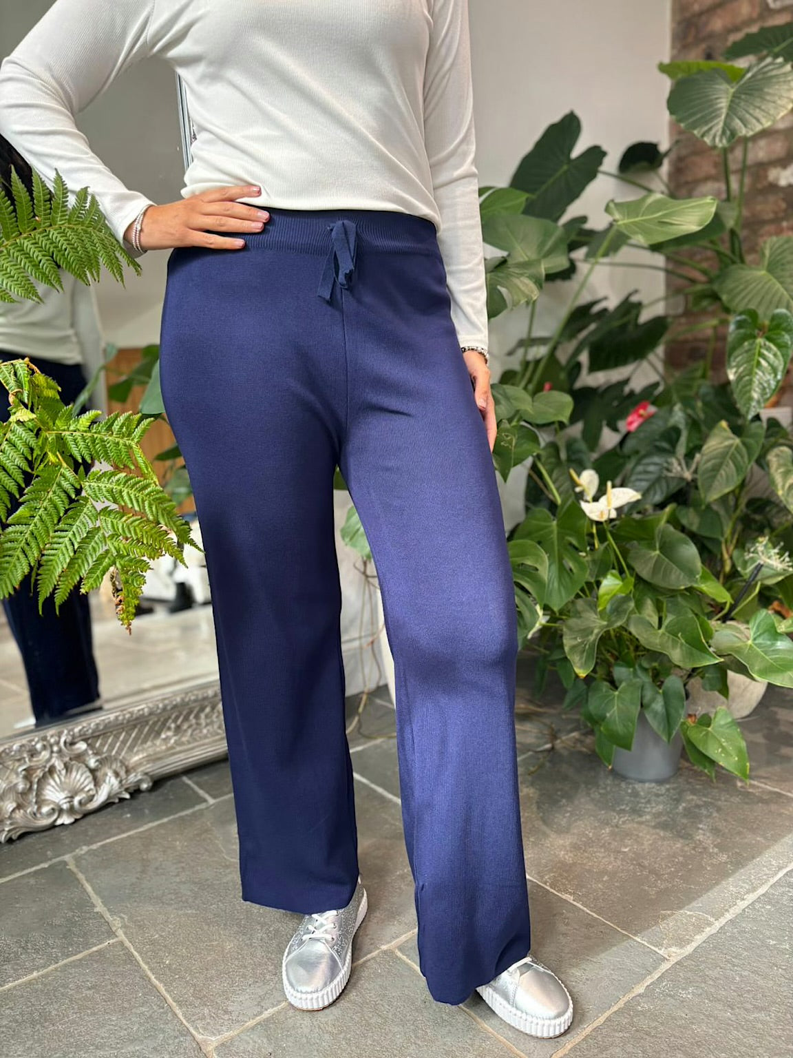 Elevate your wardrobe with the Knitted Trousers Chloe, designed for effortless sophistication. These wide-leg trousers feature a soft knitted fabric, an elasticated waist for comfortable wear, and a decorative tie front that adds a refined finish.