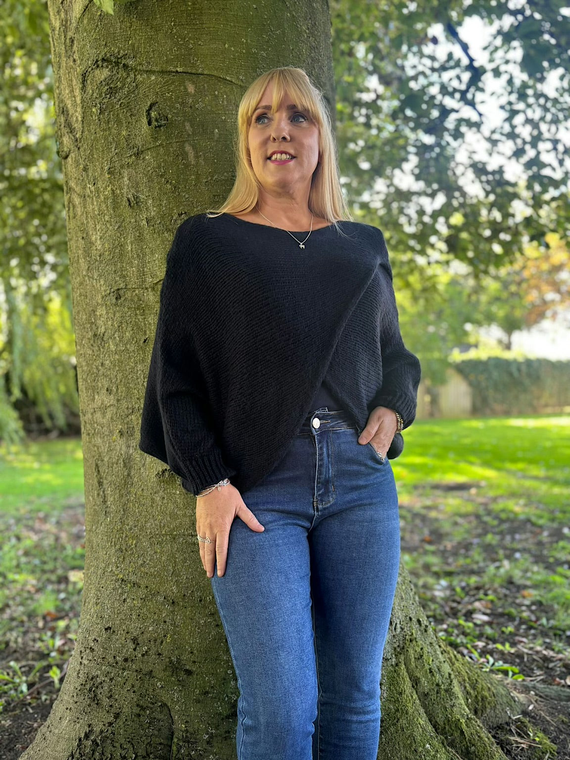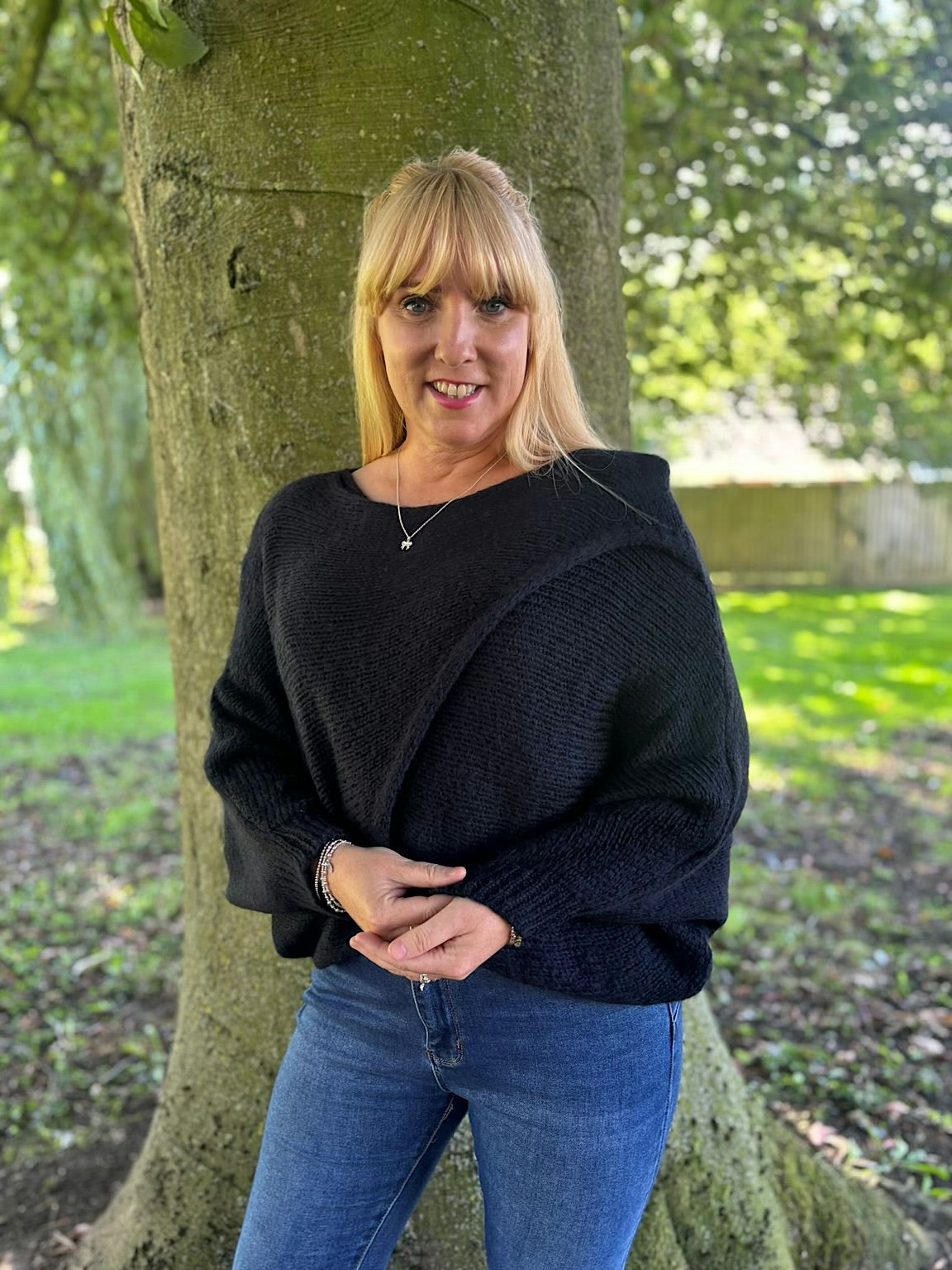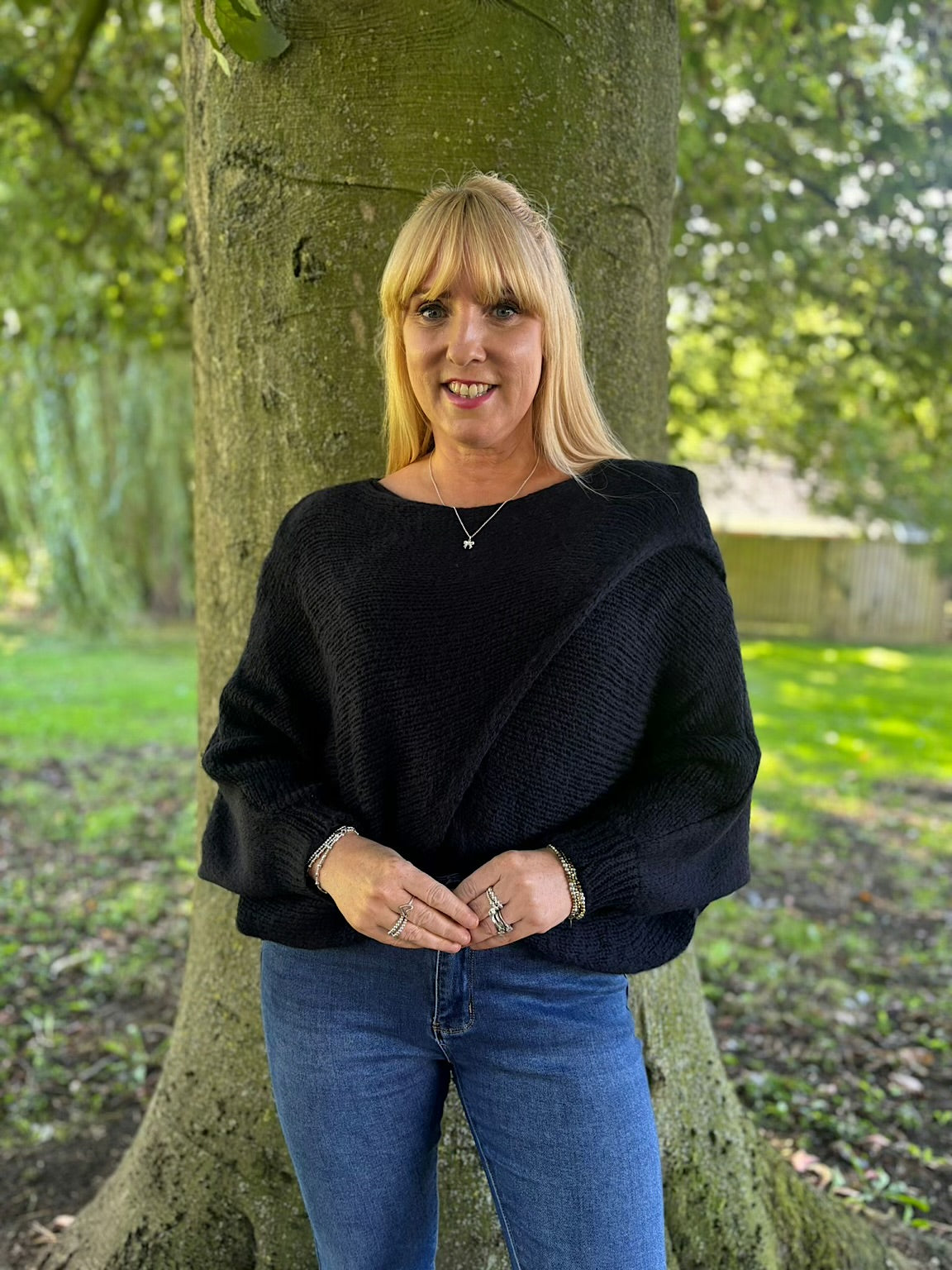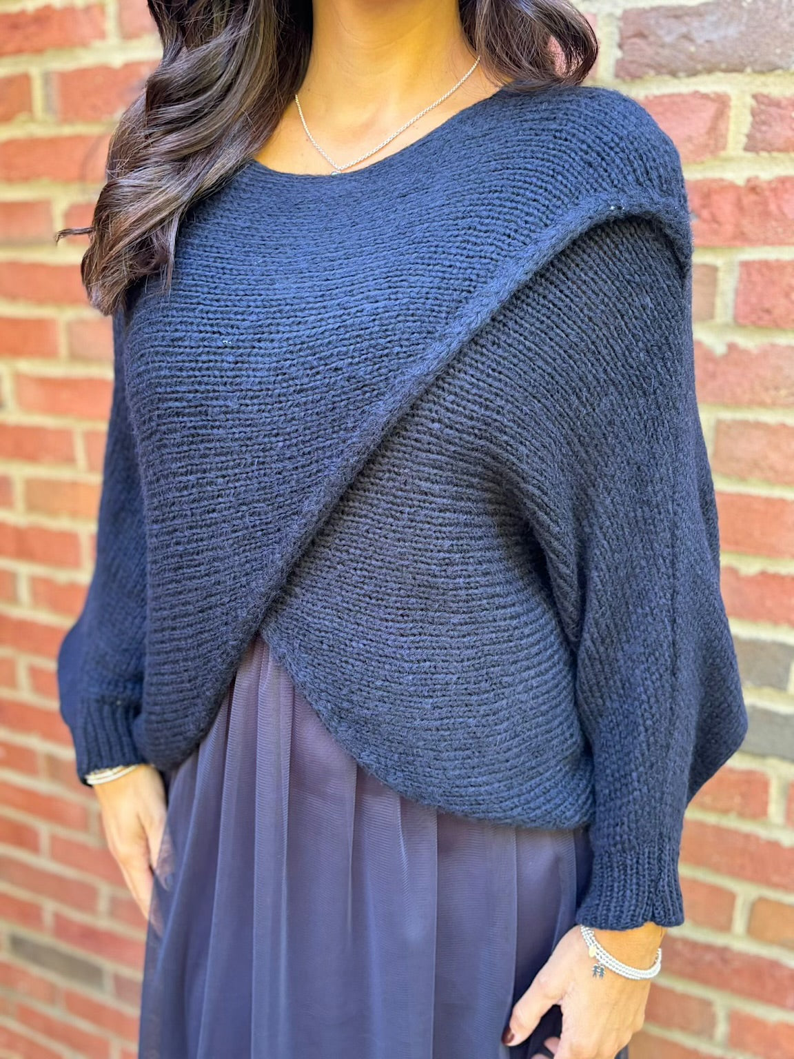 This knitted wrap jumper offers a refined style with its soft, comfortable fabric, making it an ideal choice for layering. Its elegant design enhances any outfit while providing warmth and versatility throughout the seasons.