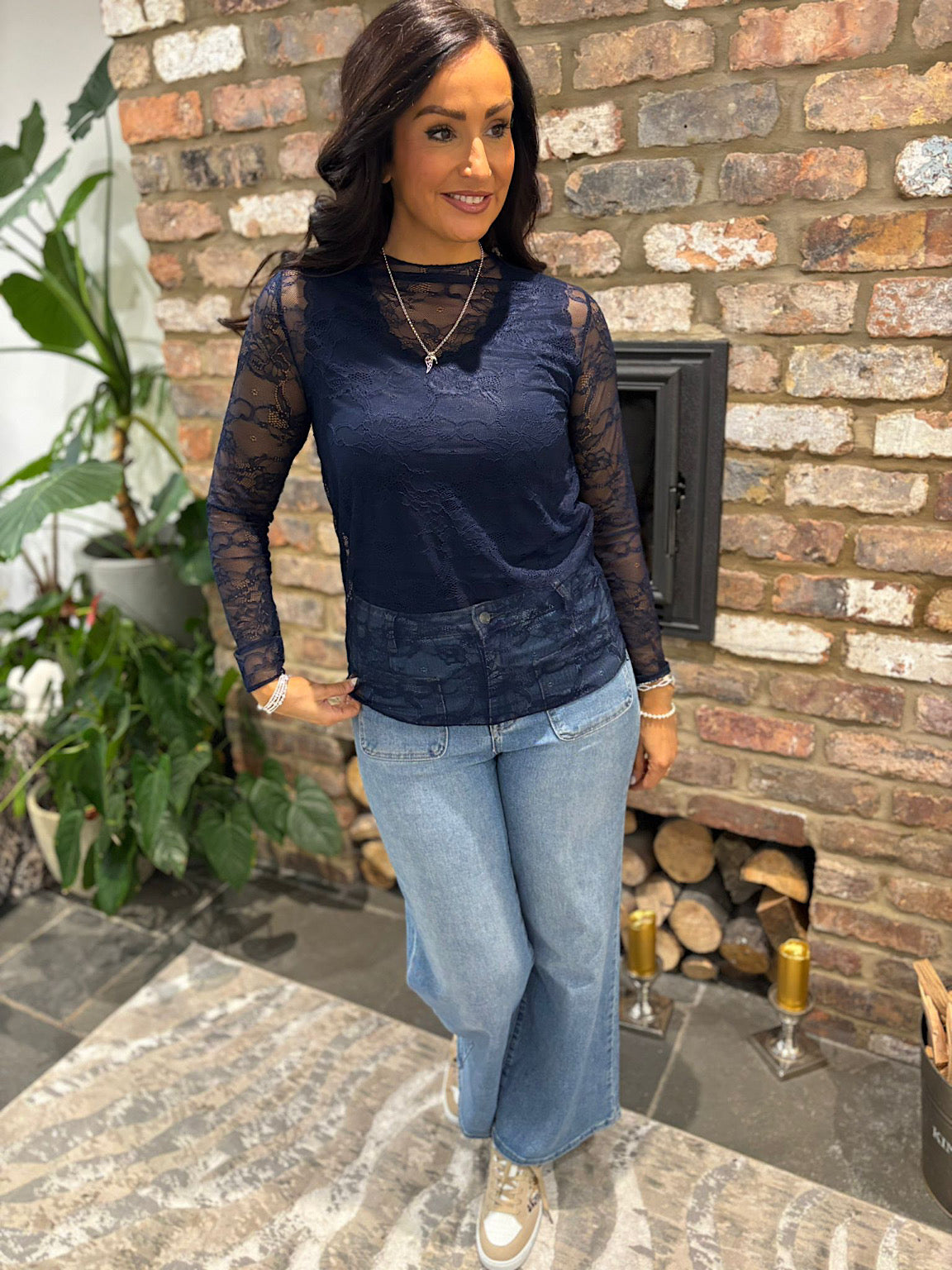 Introducing the Lace Mesh Top Tiffany – a beautifully crafted piece that brings effortless elegance to your wardrobe. Featuring delicate lace detailing over a mesh base, this top showcases a refined design that feels both sophisticated and wearable. Layer it over a coordinating vest top for a chic, modern look that works beautifully for any occasion. The intricate lace adds a touch of femininity and grace, making this a versatile addition to your everyday styling.