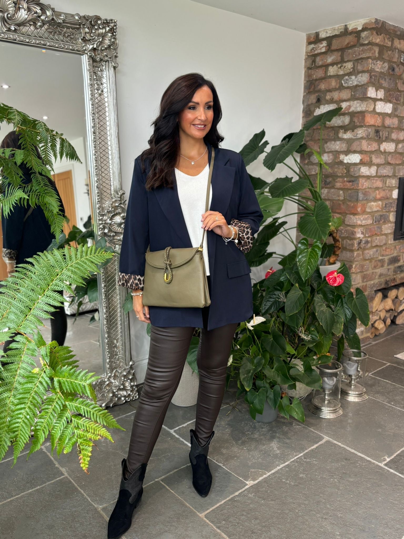 Elevate your wardrobe with the Leopard Lined Blazer Ashley, offering a smart, classy look perfect for any occasion. Its tailored exterior provides a refined silhouette, while the leopard print lining adds a bold and stylish surprise. This blazer combines elegance with personality, giving you confidence and flair every time you wear it.
