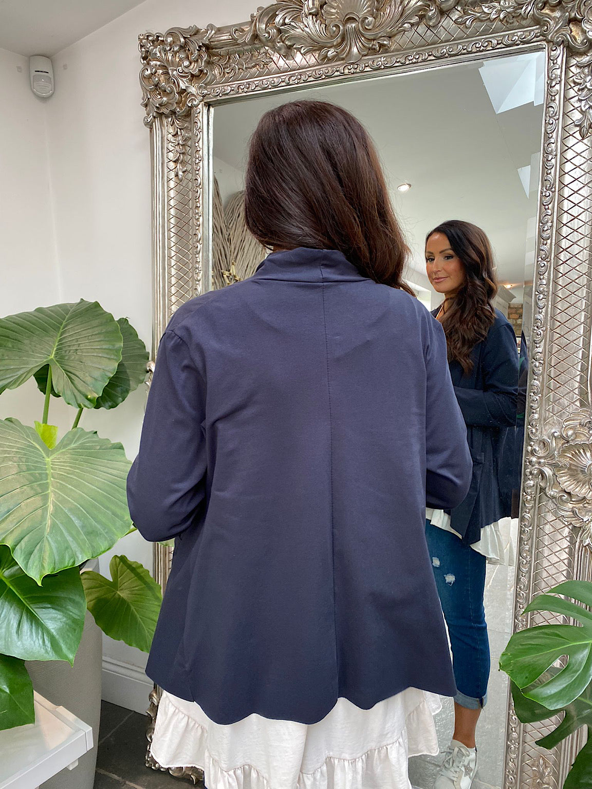 How lovely is this Navy Lightweight Waterfall Cardigan Ella? Featuring a soft touch material that is perfect for this time of year. Add our Lightweight Multi Holes Top Finn underneath with a pair of our Denim Jeans to get Laura's Look.