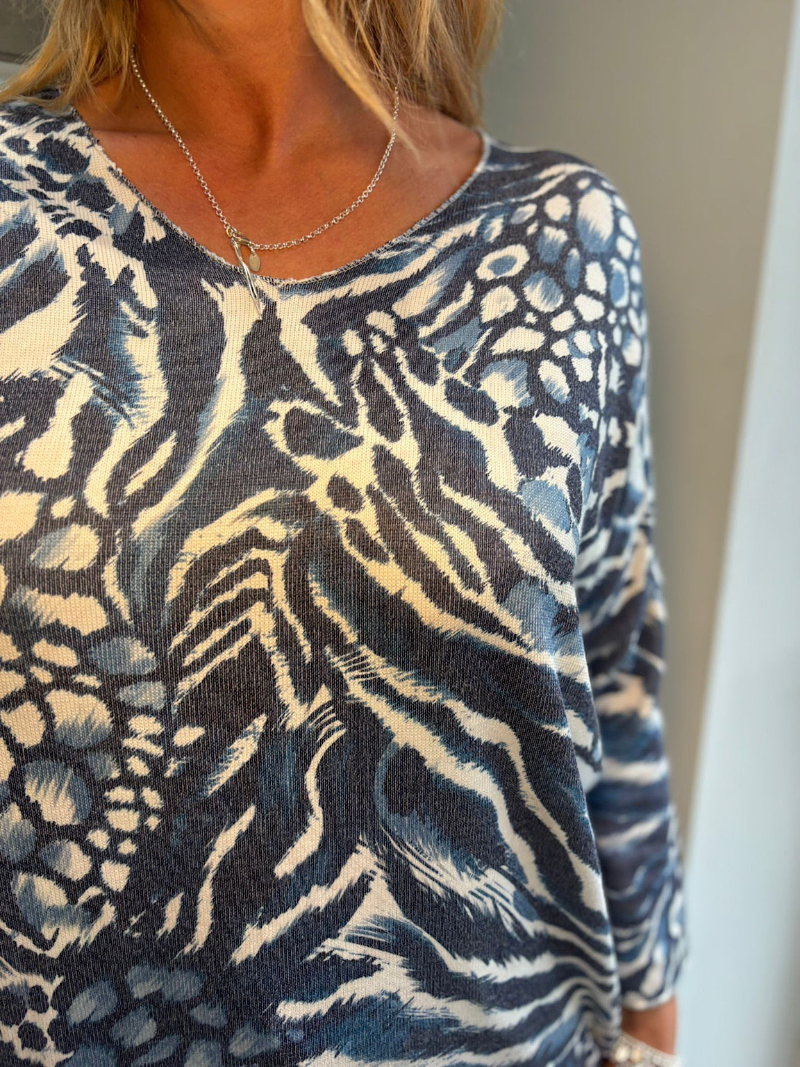 Navy Multi Animal V Neck Top Amy